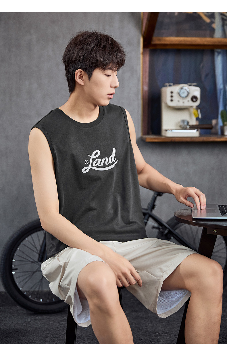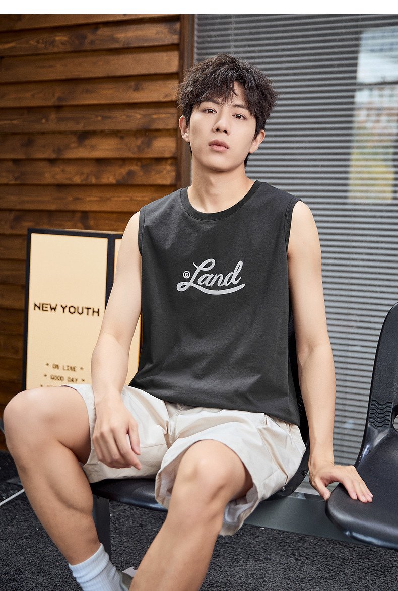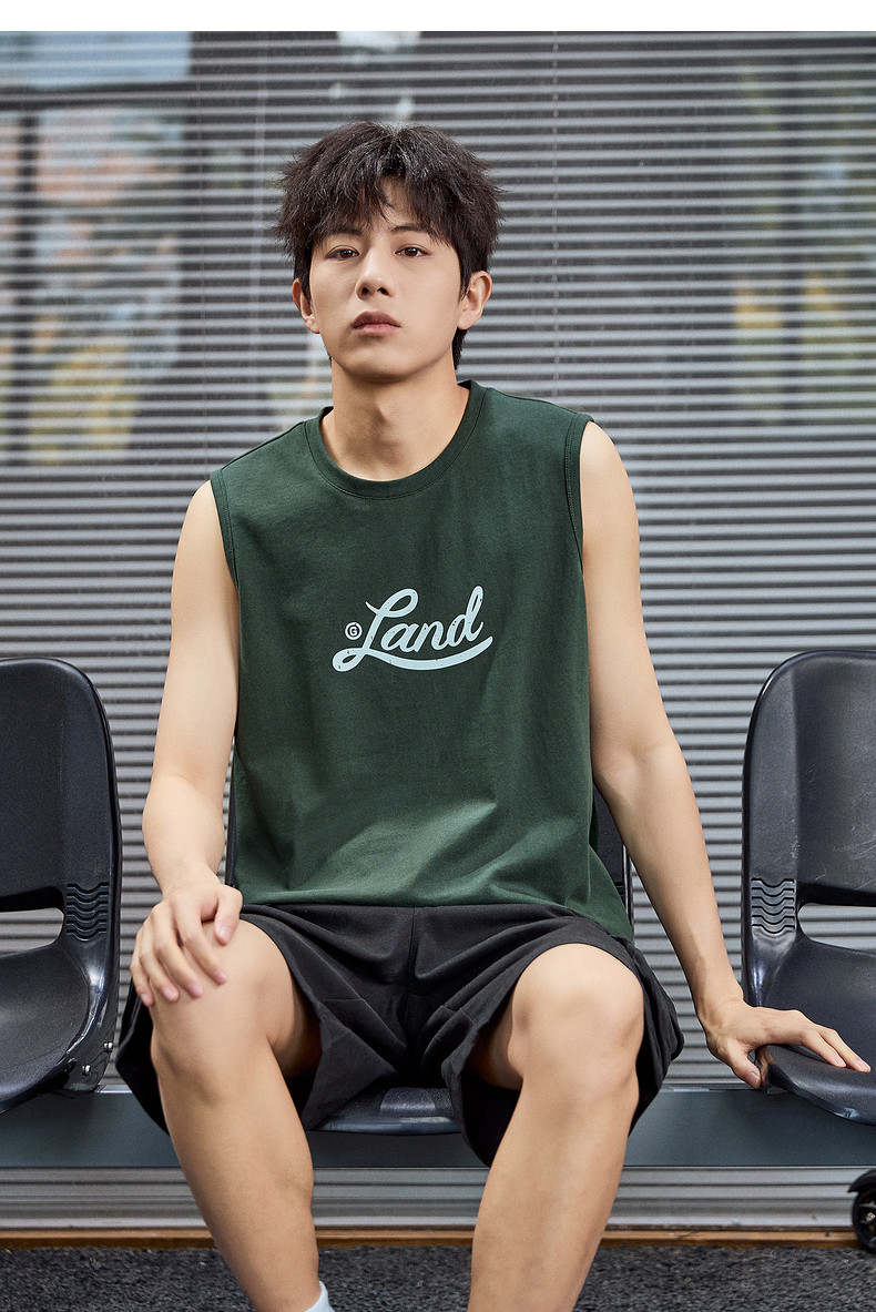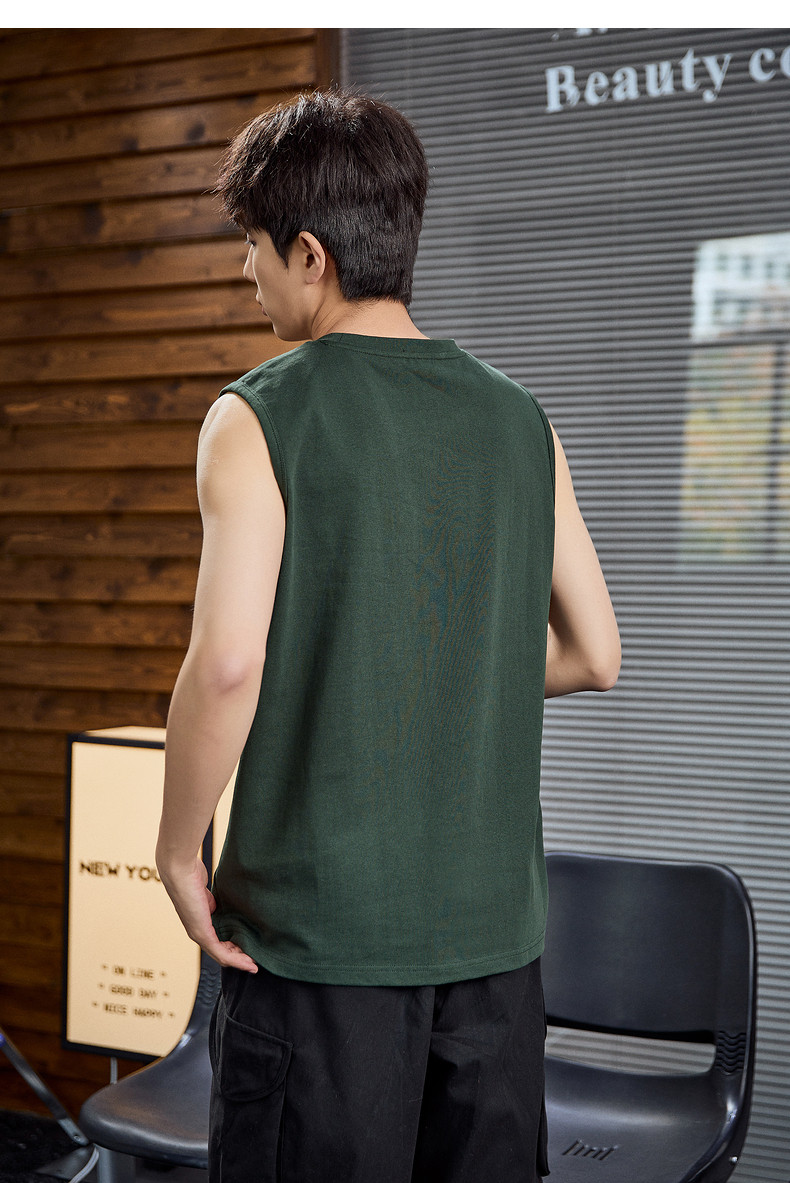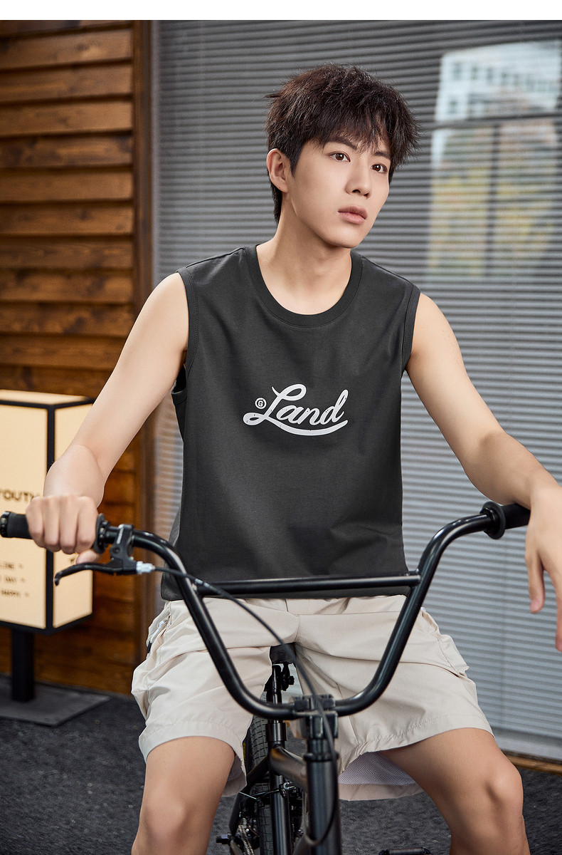 唐狮2024年春夏季新款男士背心坎肩净色无袖上衣简约运动少年潮酷