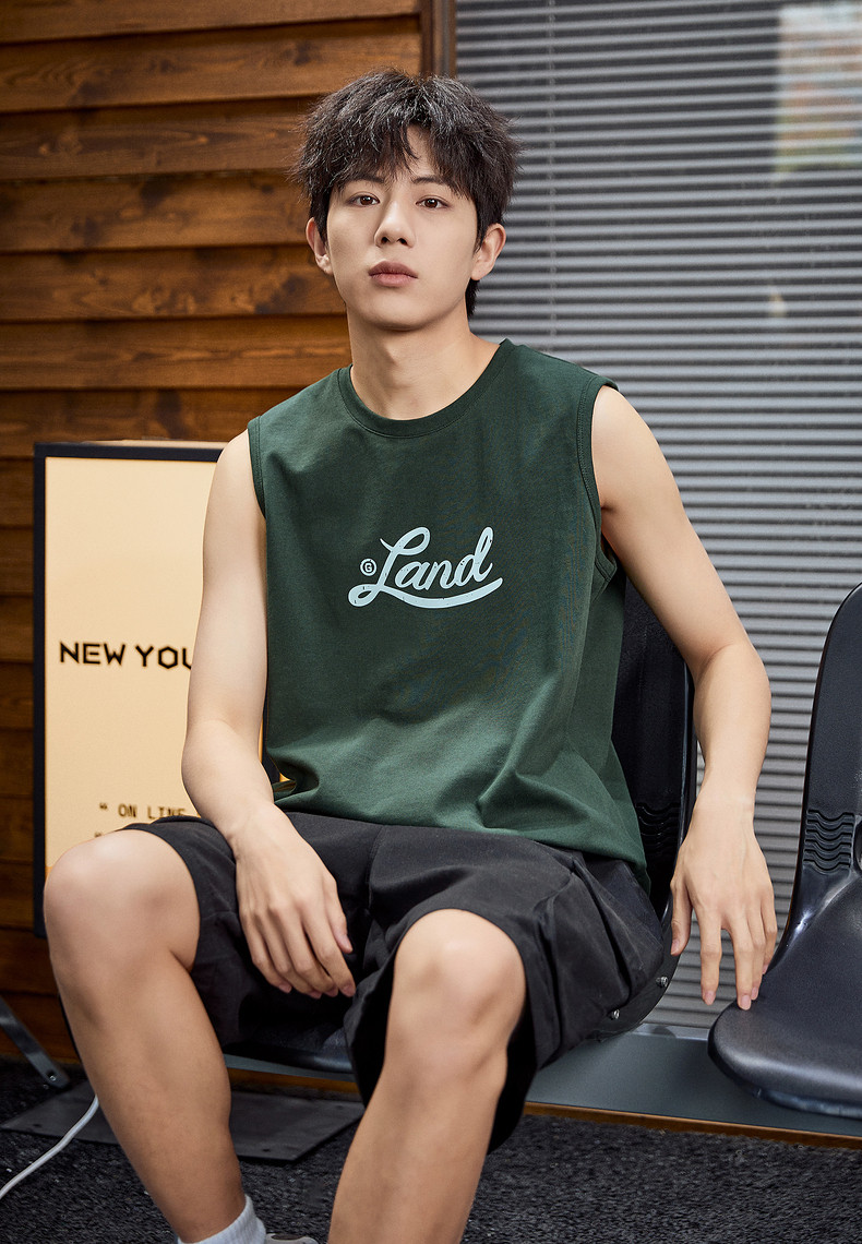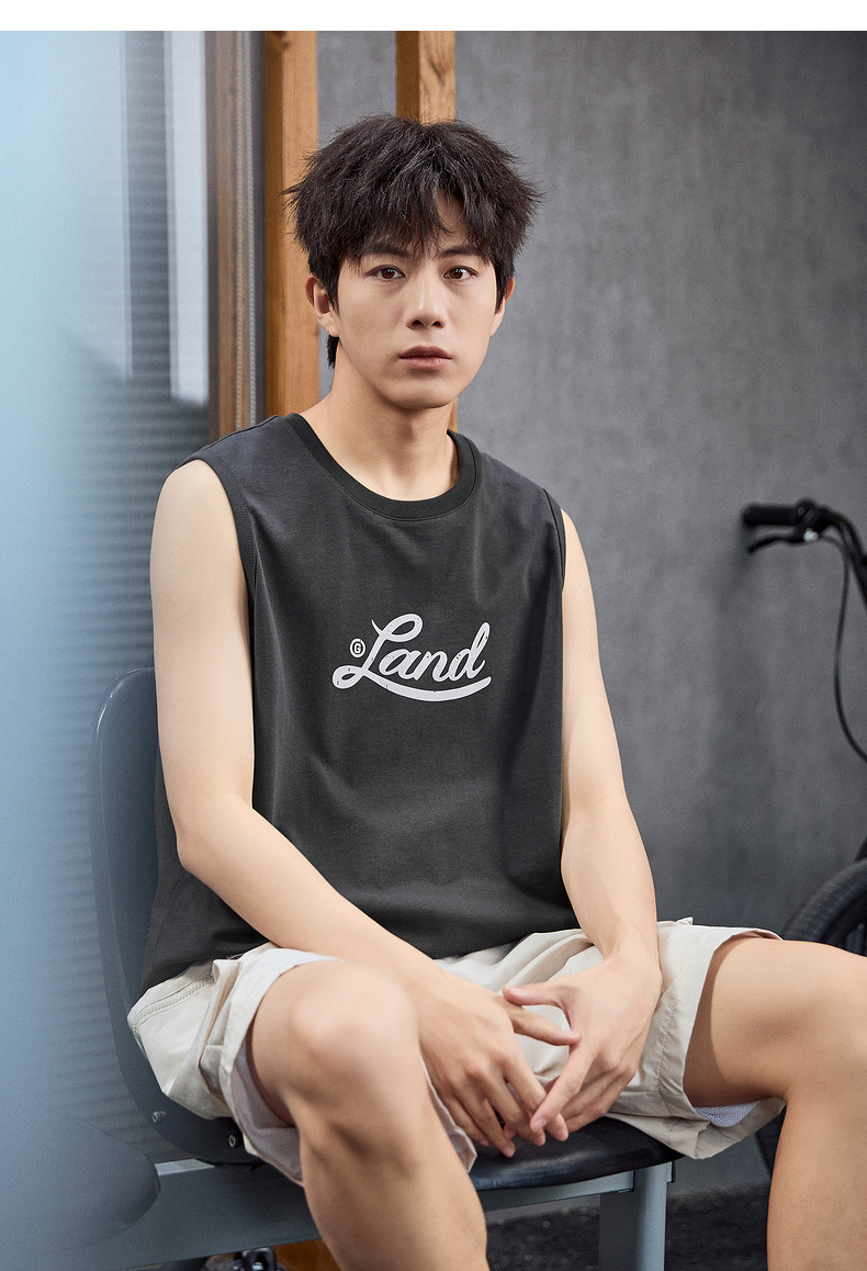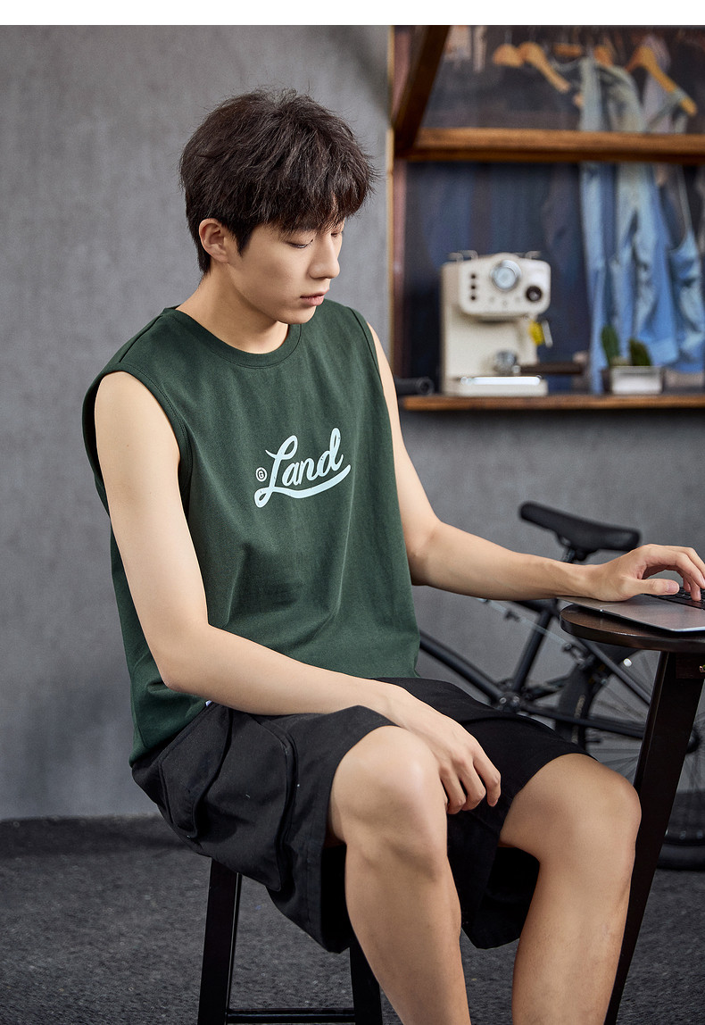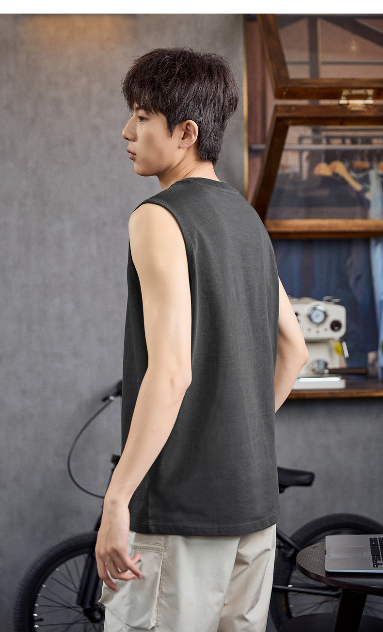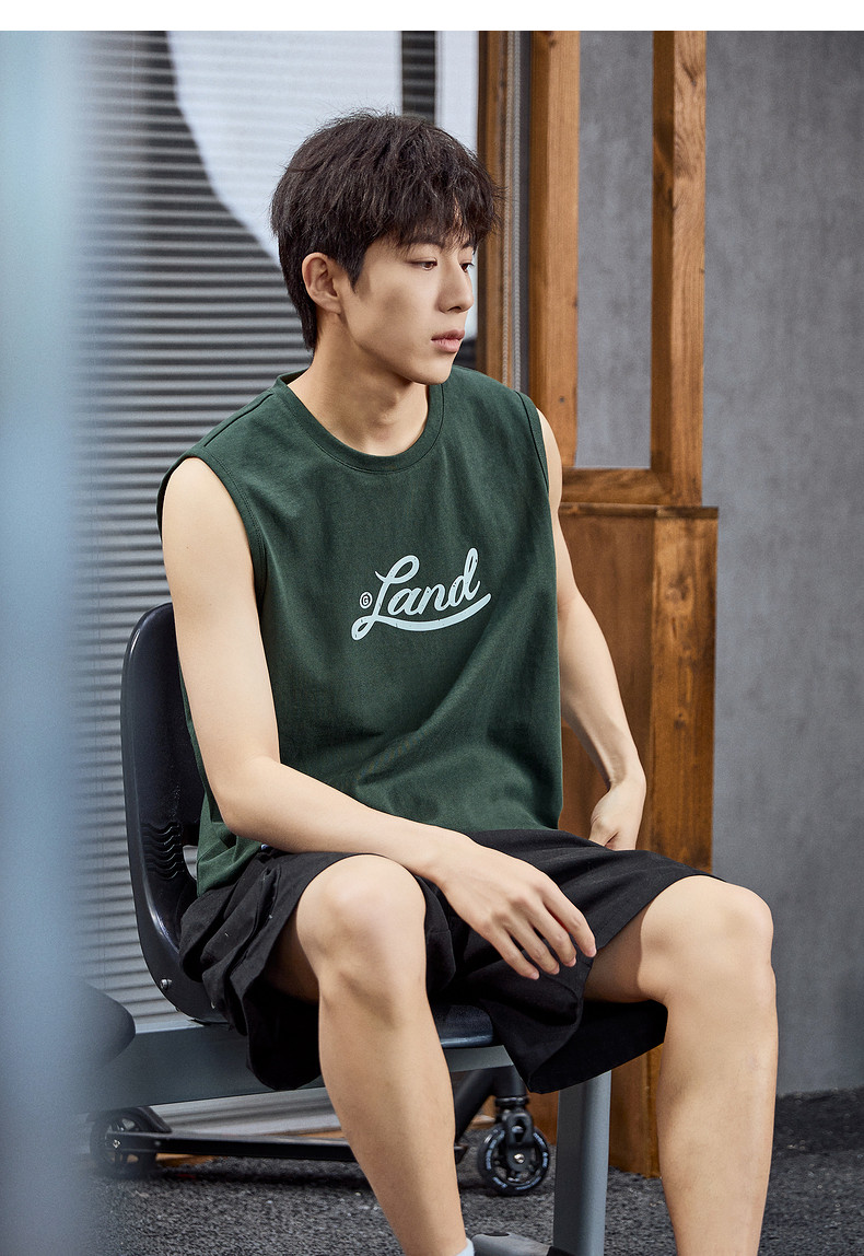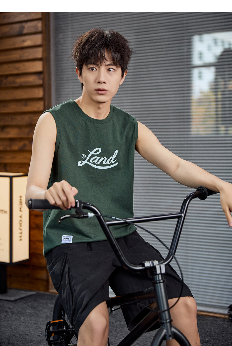 唐狮2024年春夏季新款男士背心坎肩净色无袖上衣简约运动少年潮酷