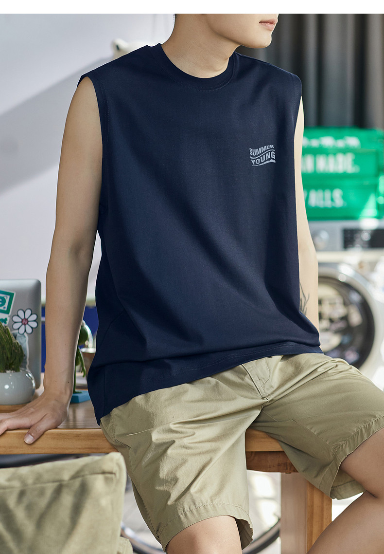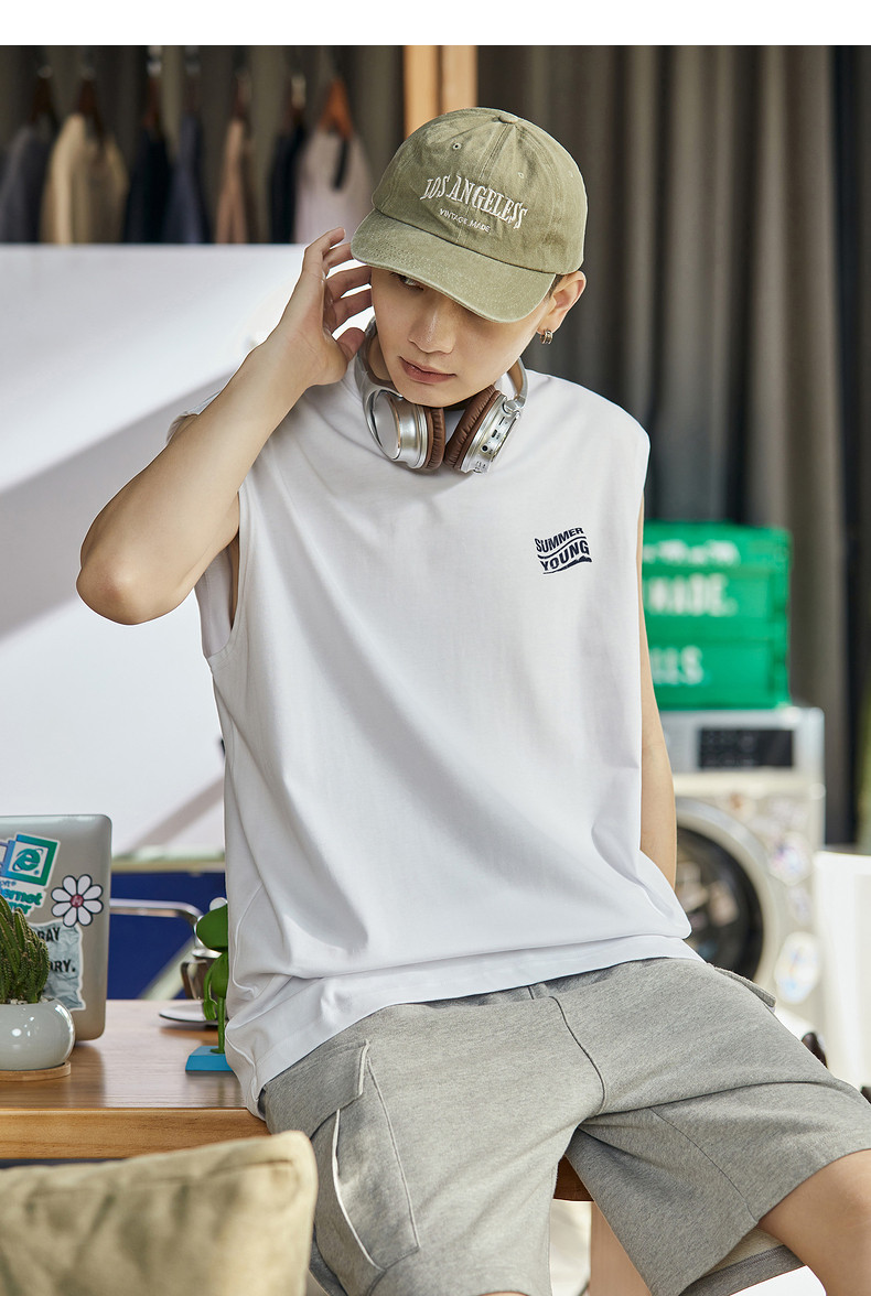唐狮2024春夏新款男背心纯棉圆领上衣运动坎肩无袖T恤白色汗衫潮