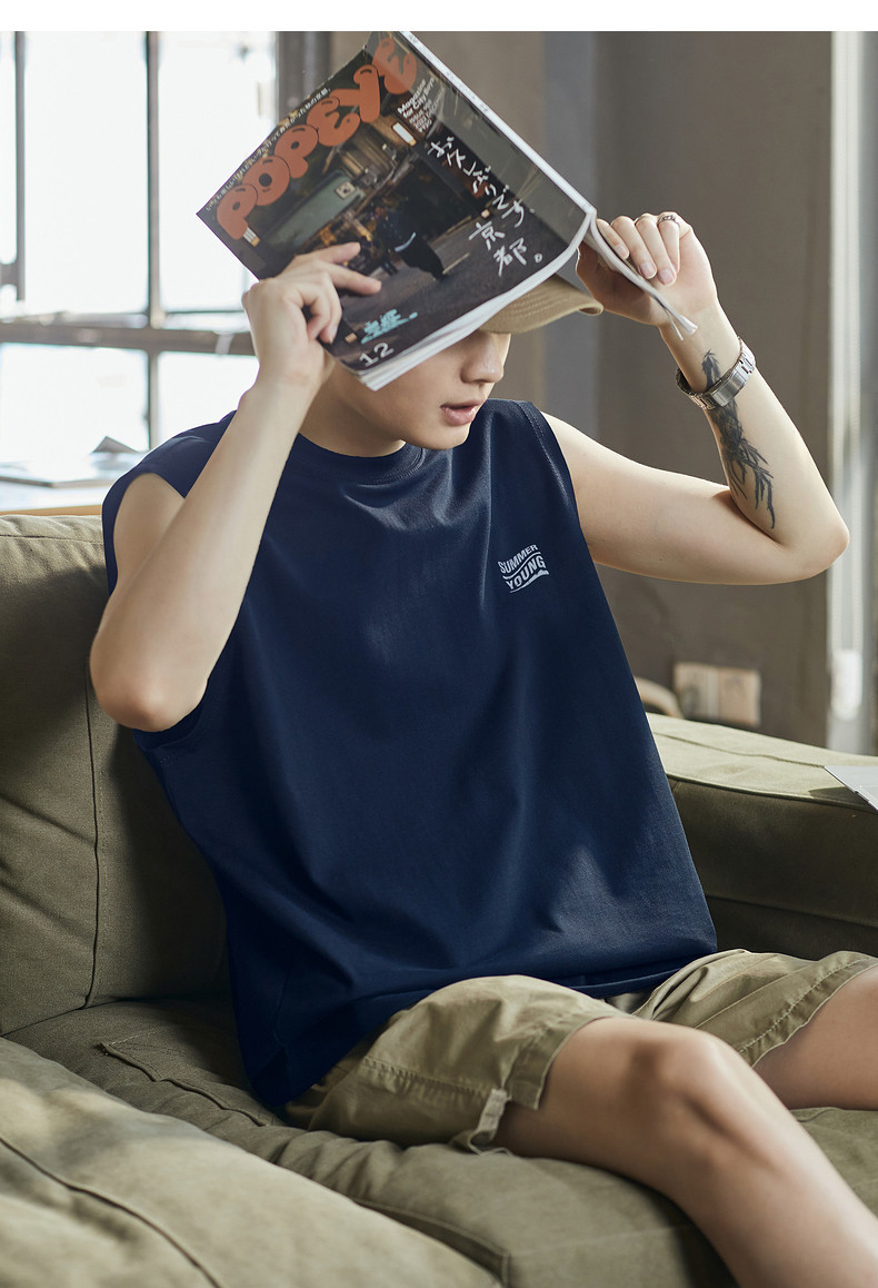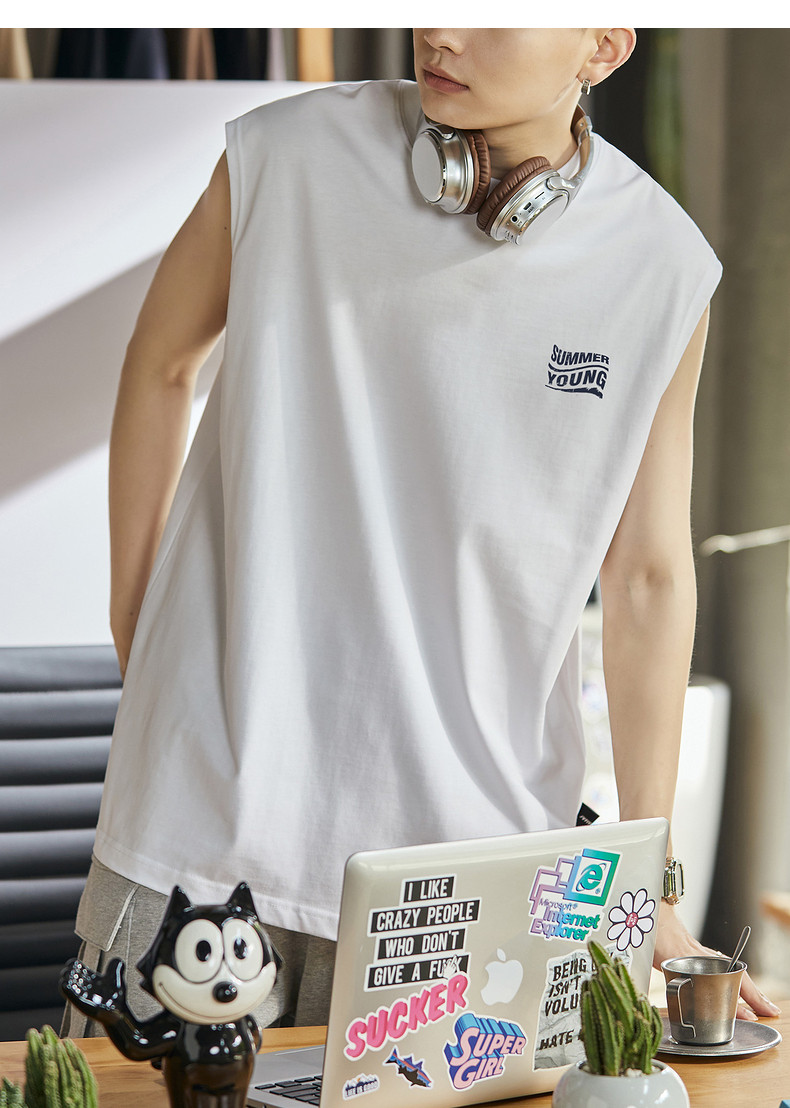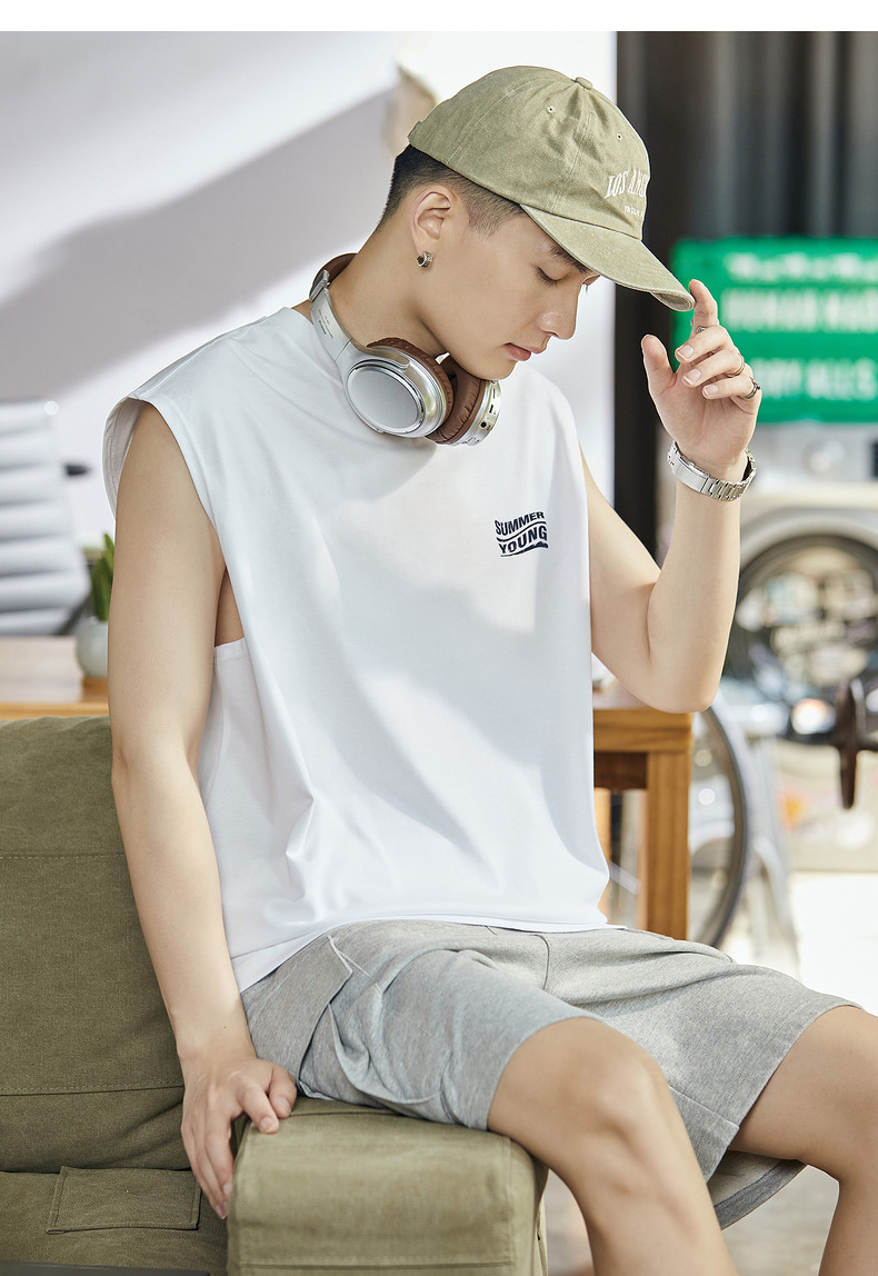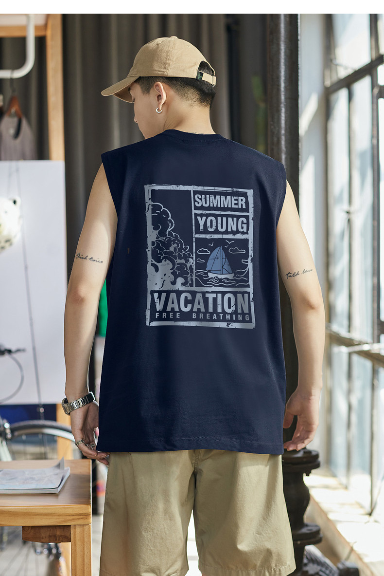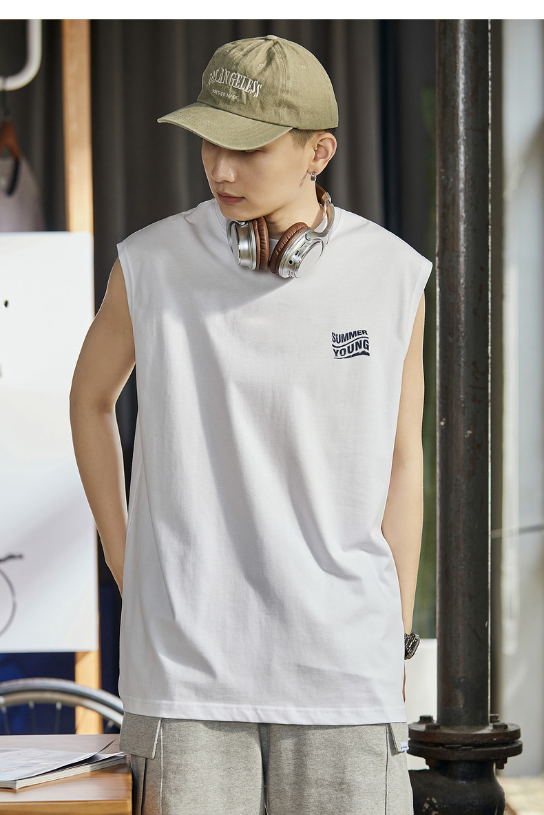 唐狮2024春夏新款男背心坎肩无袖T恤后背印花港风圆领上衣打底衫