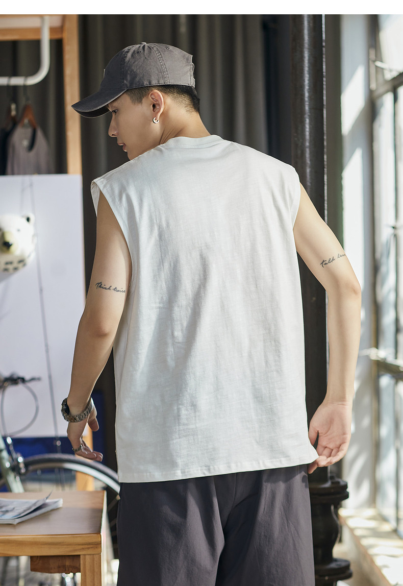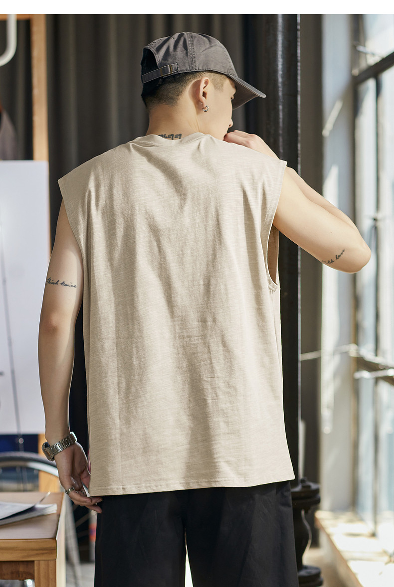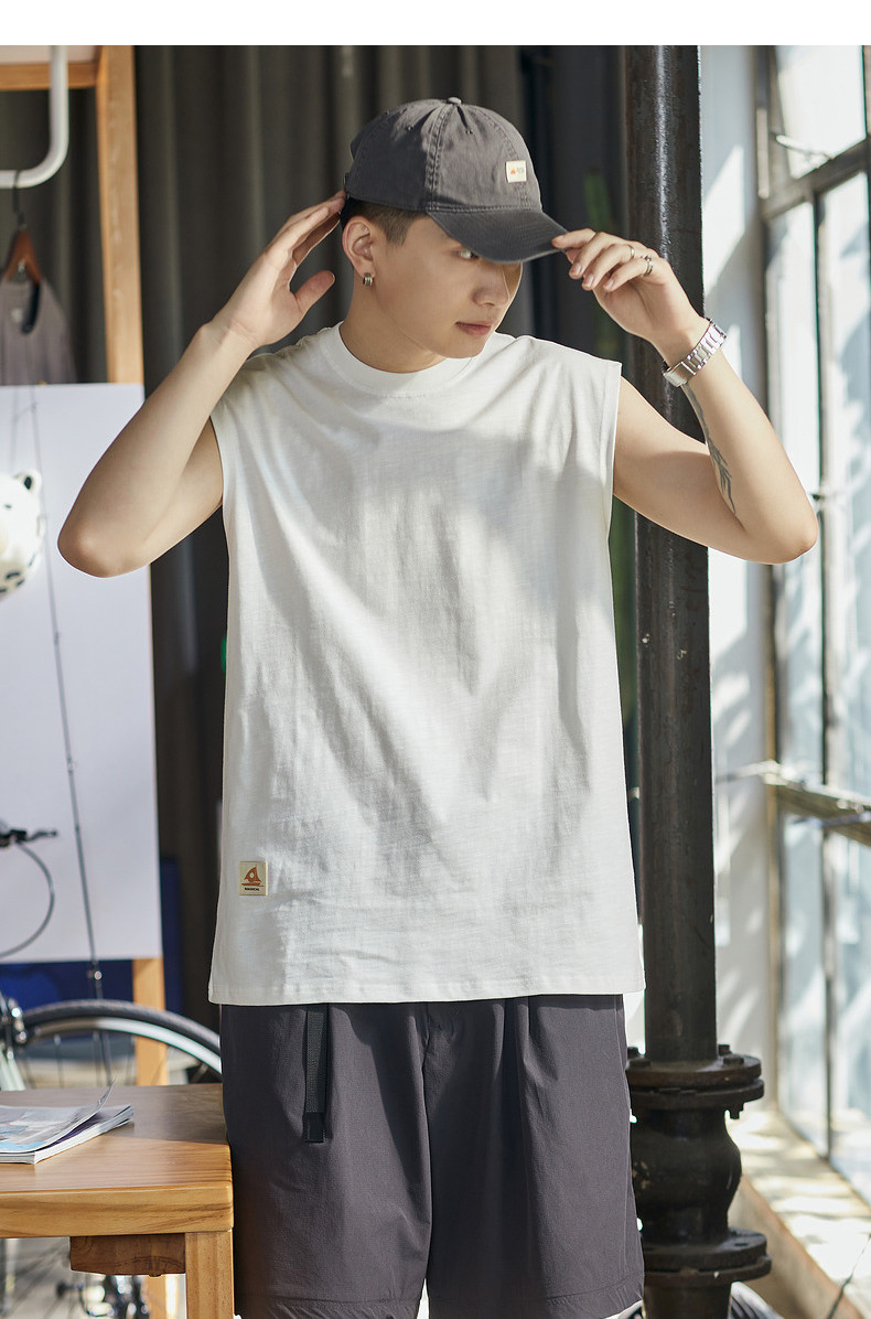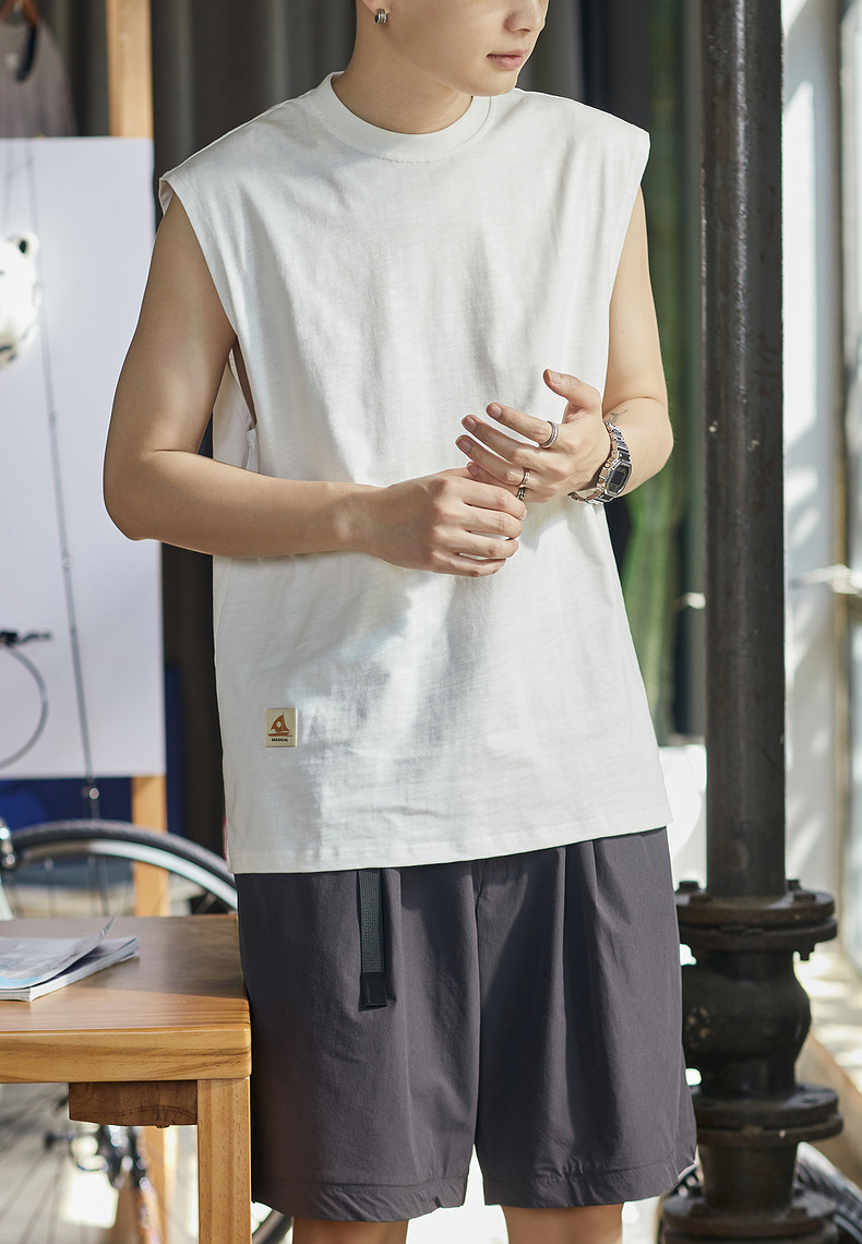 唐狮2024春夏季新款男背心纯色坎肩无袖T恤宽松圆领上衣汗衫潮