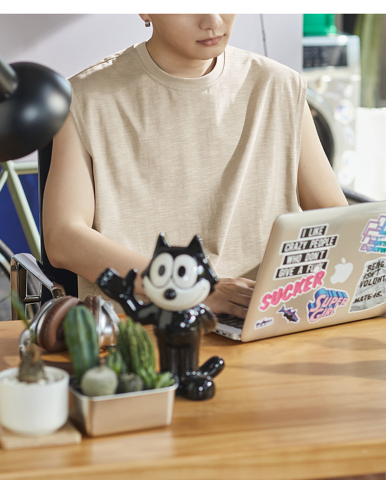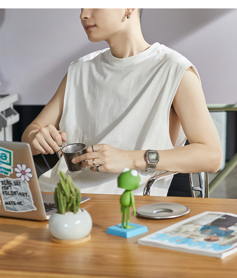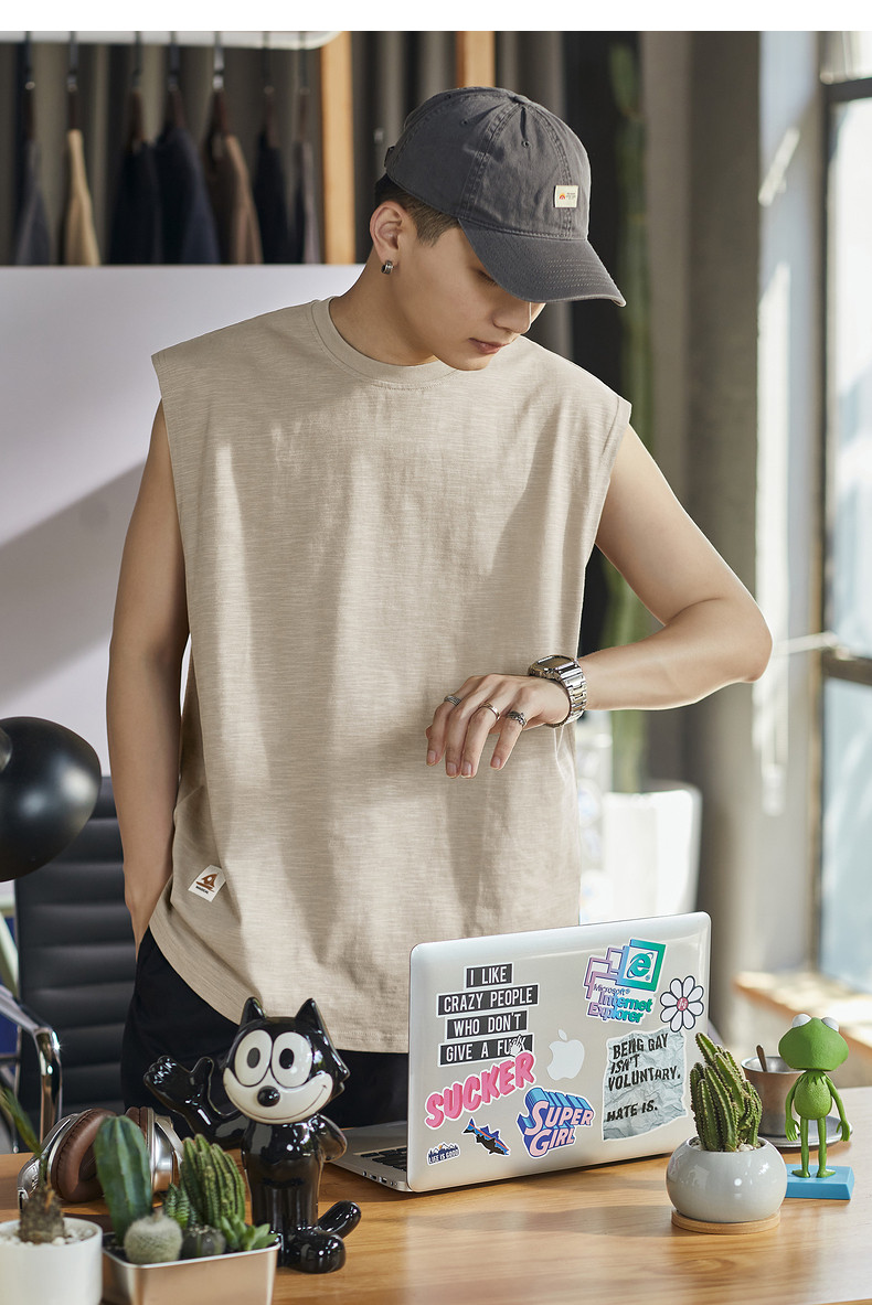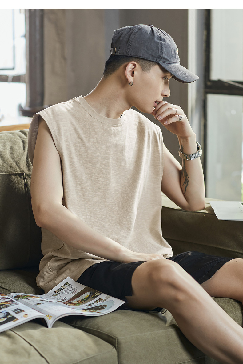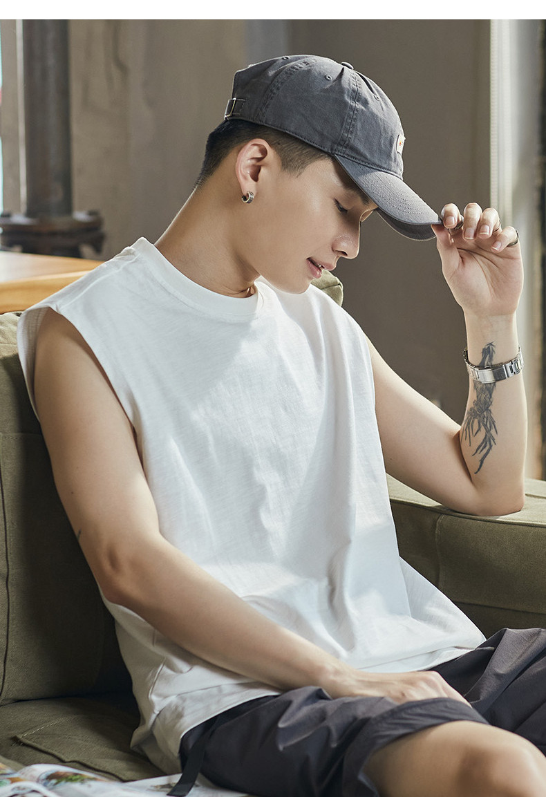 唐狮2024春夏季新款男背心纯色坎肩无袖T恤宽松圆领上衣汗衫潮