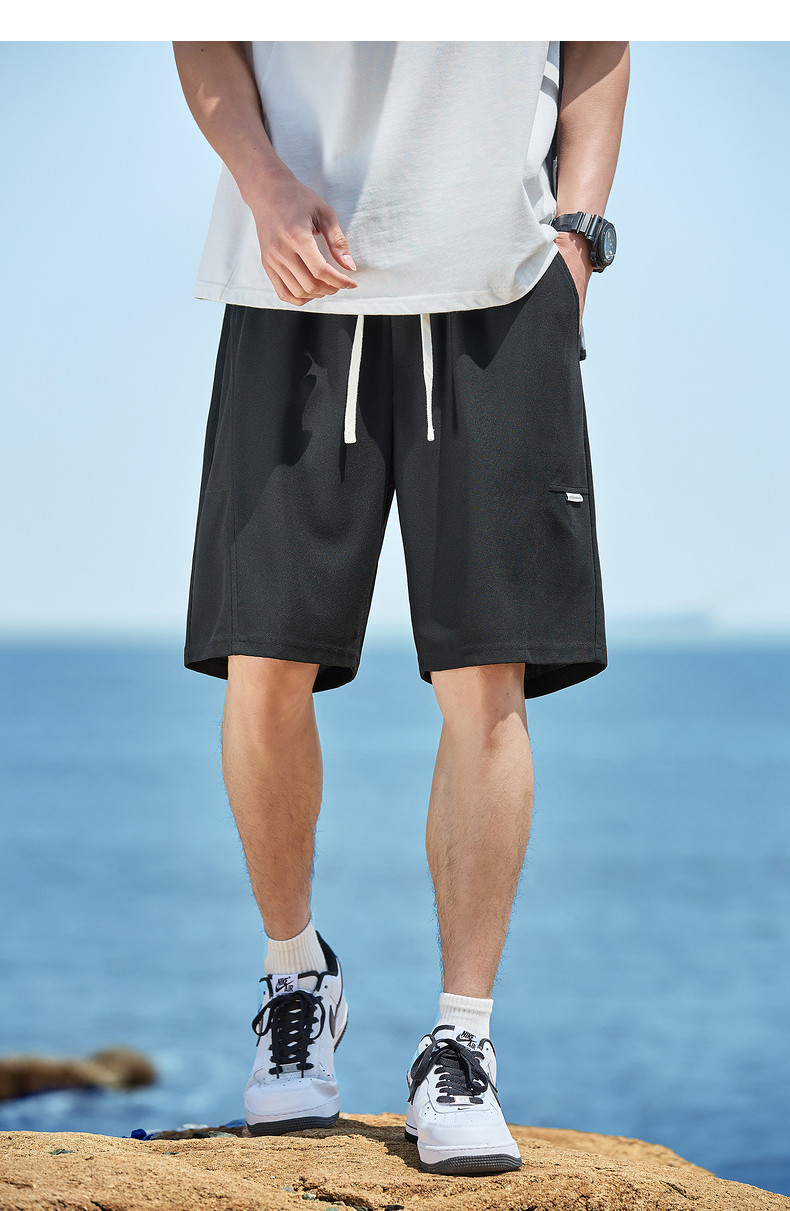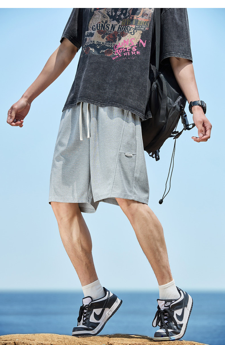 唐狮2024夏季新款休闲短裤男针织宽松运动抽绳薄款透气五分直筒裤