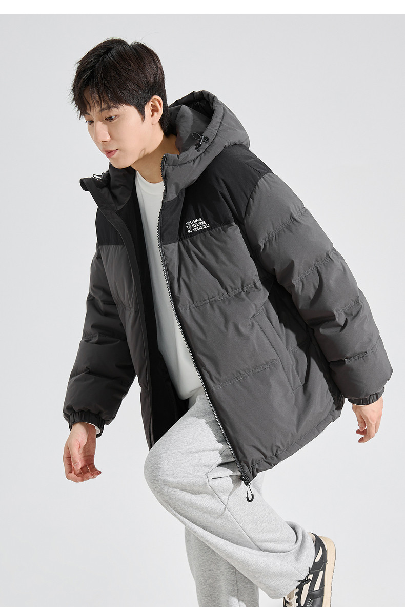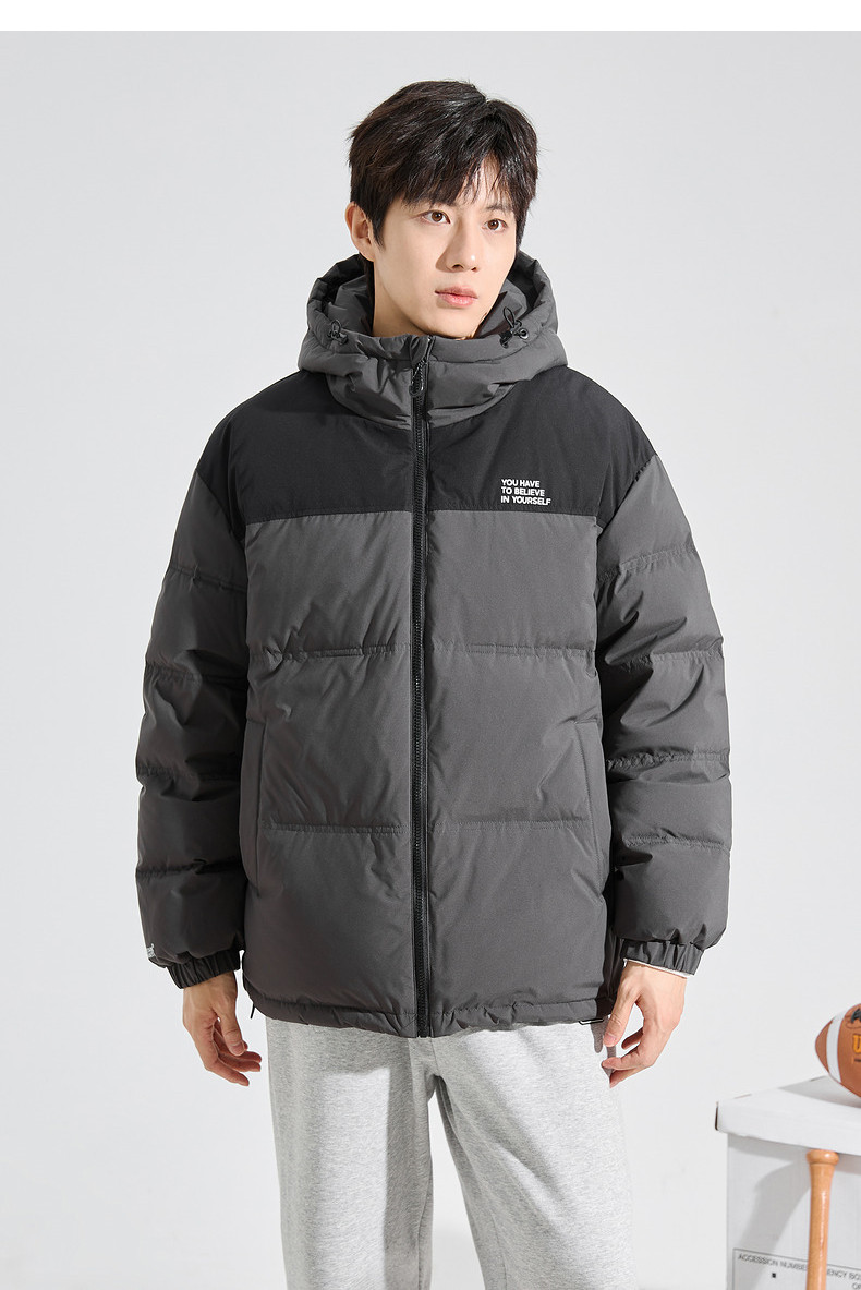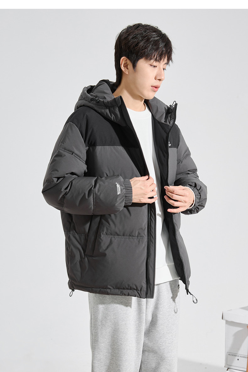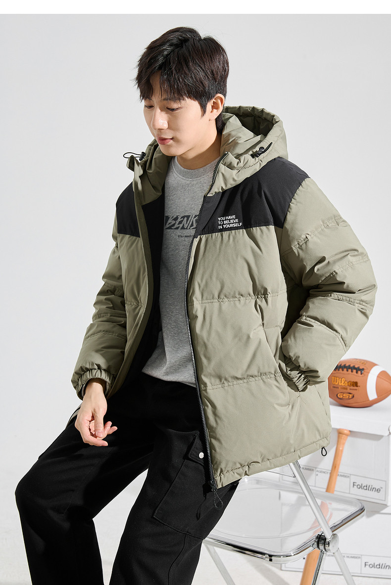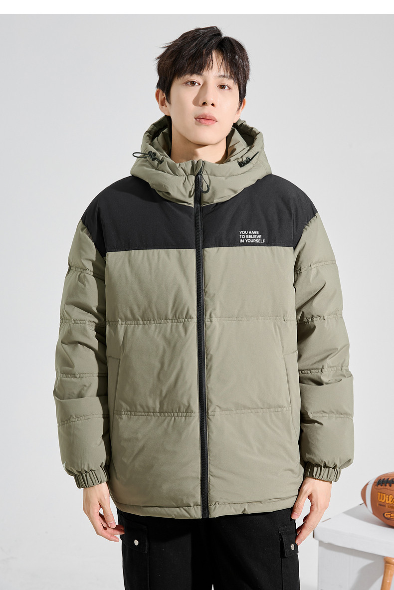 唐狮2024冬季新款男士羽绒服连帽撞色拼接短款面包服拉链款厚外套
