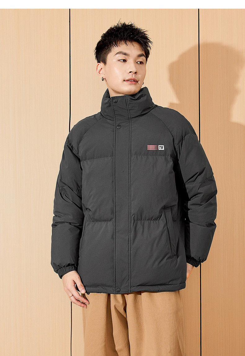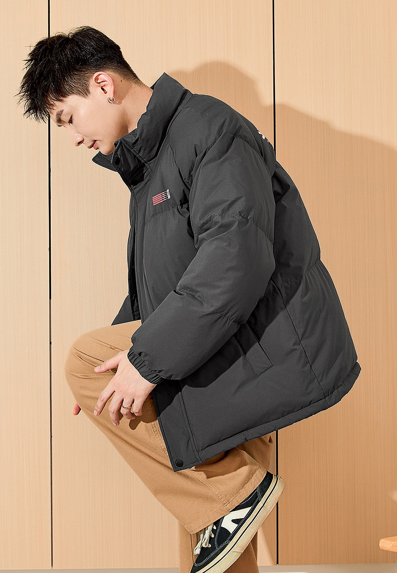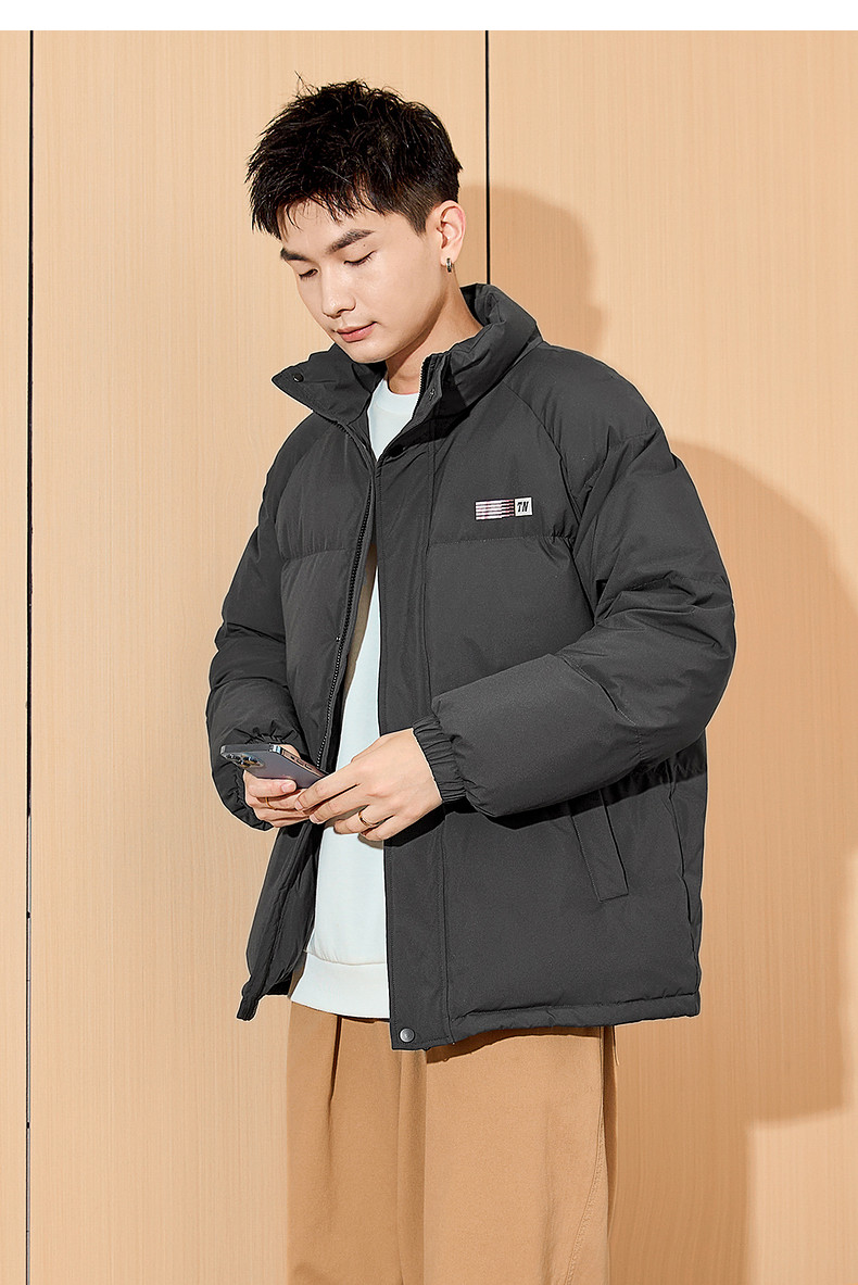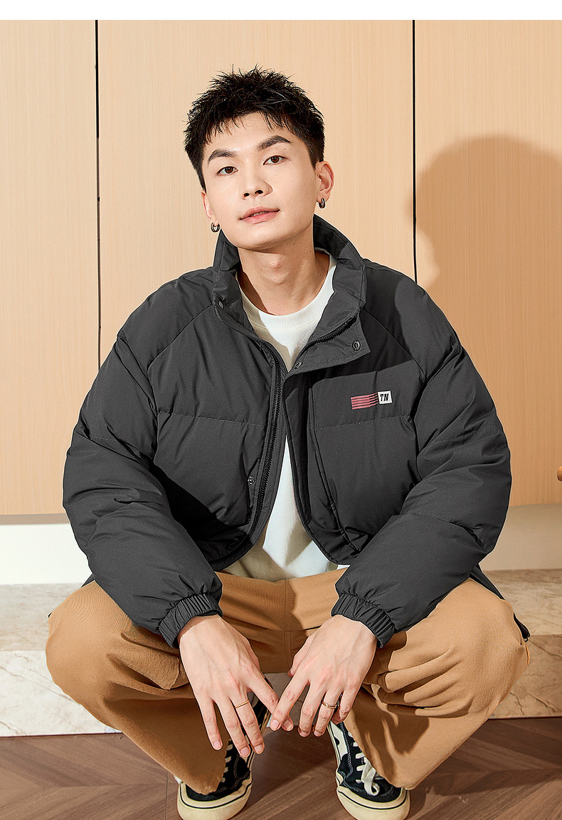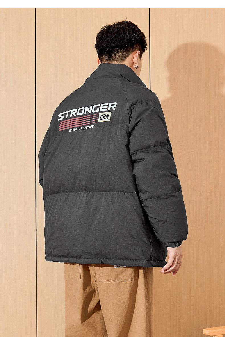 唐狮2024新款男生高蓬立领前胸后背印花装饰羽绒服美式复古潮流