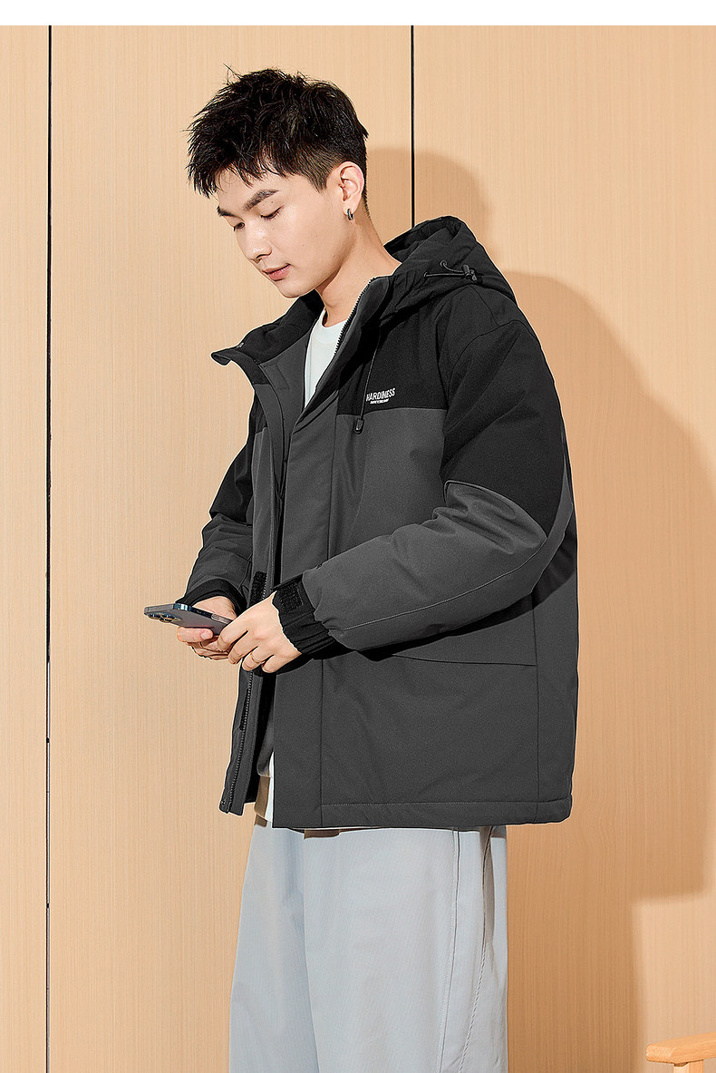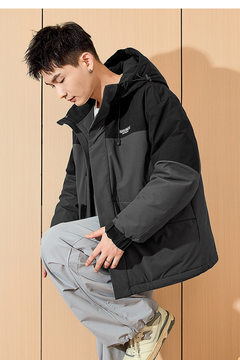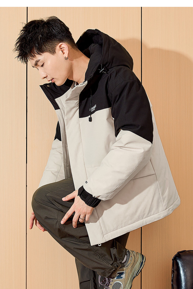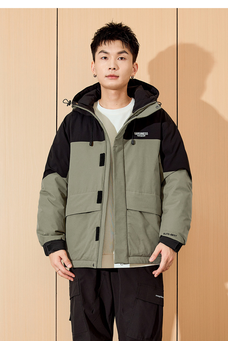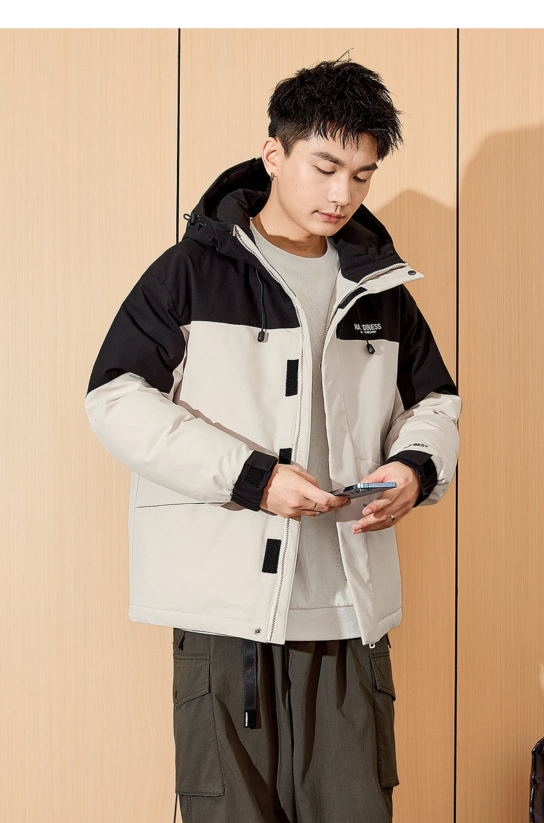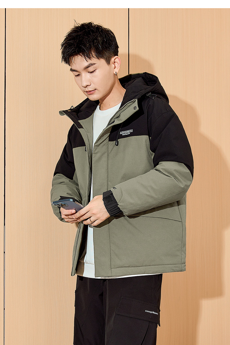 唐狮2024冬季新款男工装羽绒服连帽拼接防水短款厚外套冲锋少年潮