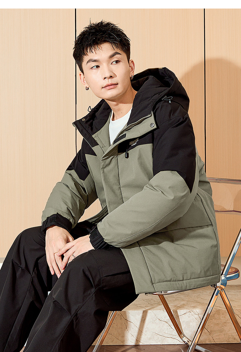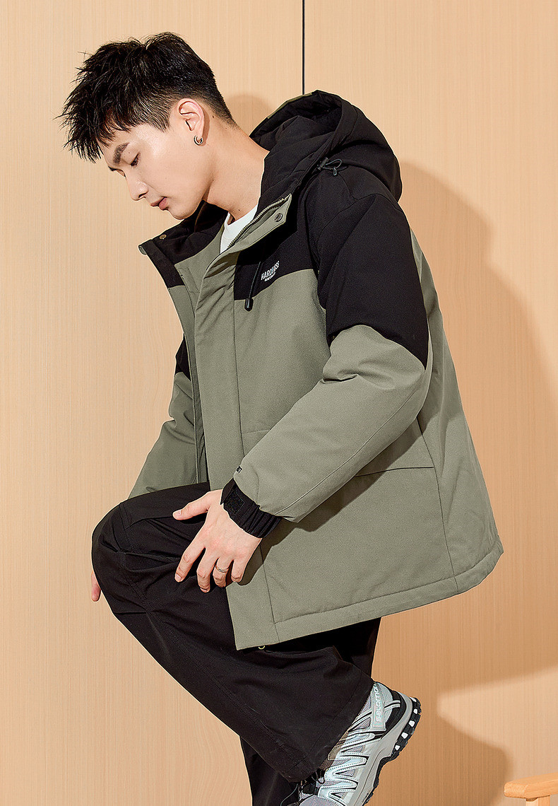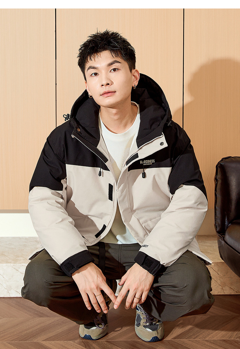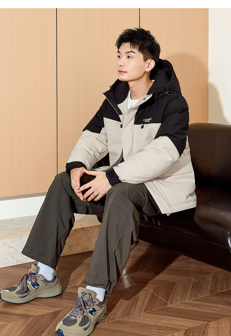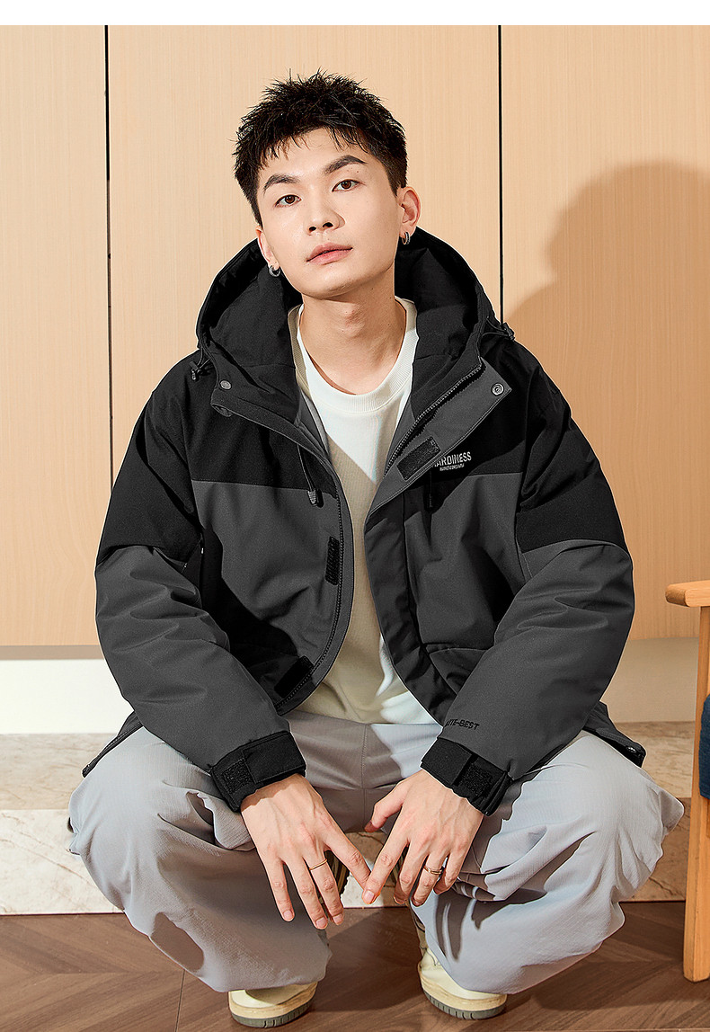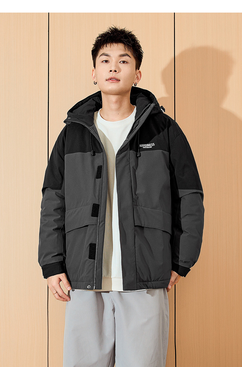 唐狮2024冬季新款男工装羽绒服连帽拼接防水短款厚外套冲锋少年潮