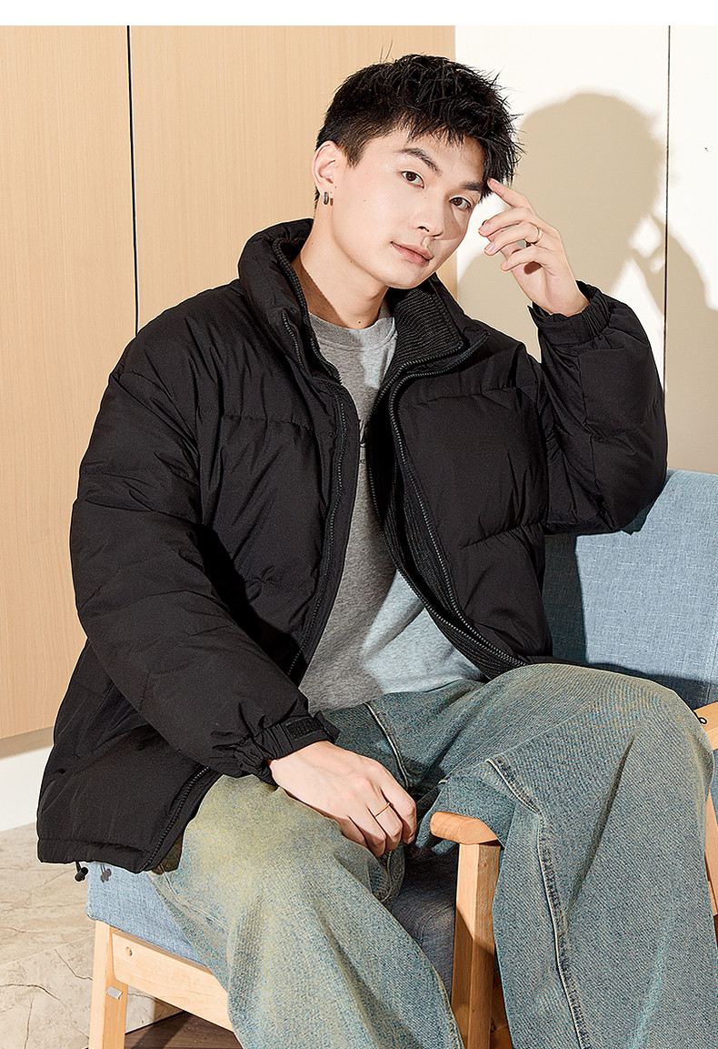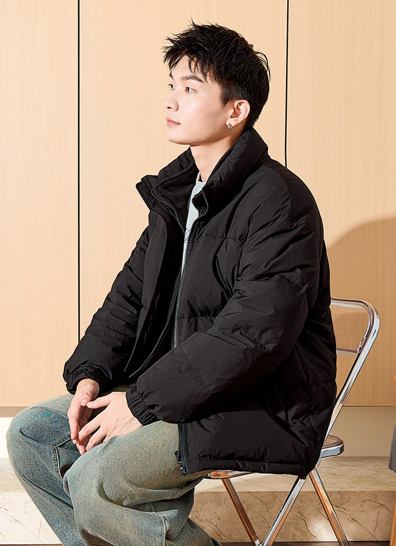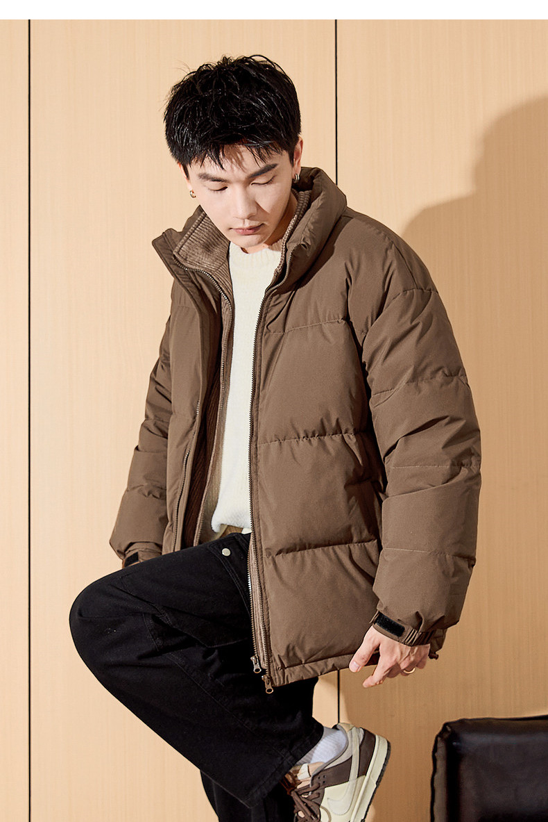 唐狮2024冬季新款男士羽绒服假两件灯芯绒短款立领面包服商务休闲