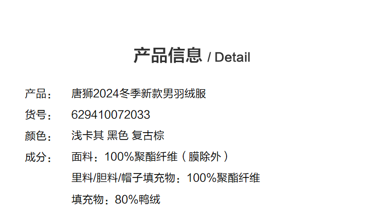 唐狮2024冬季男连帽袖标绣花装饰短款羽绒服连帽厚外套保暖防风潮
