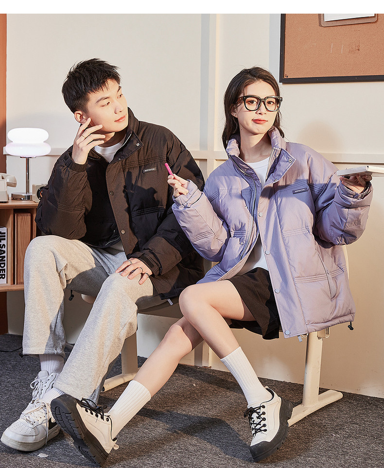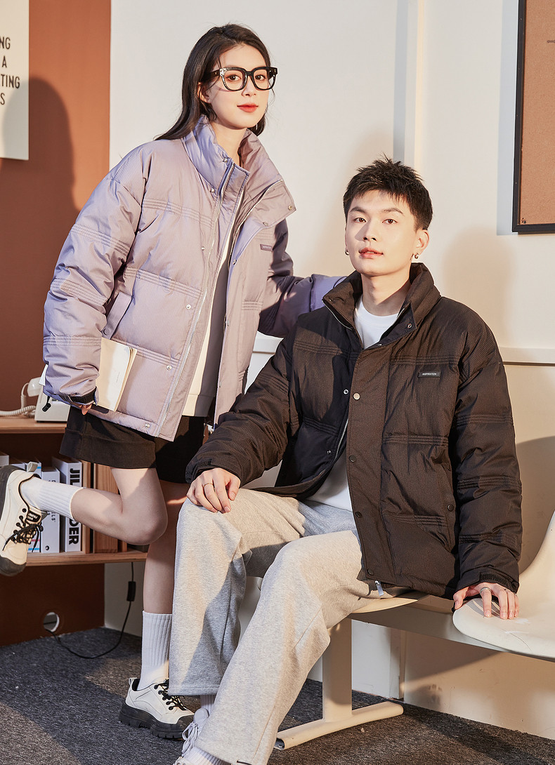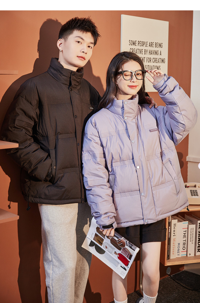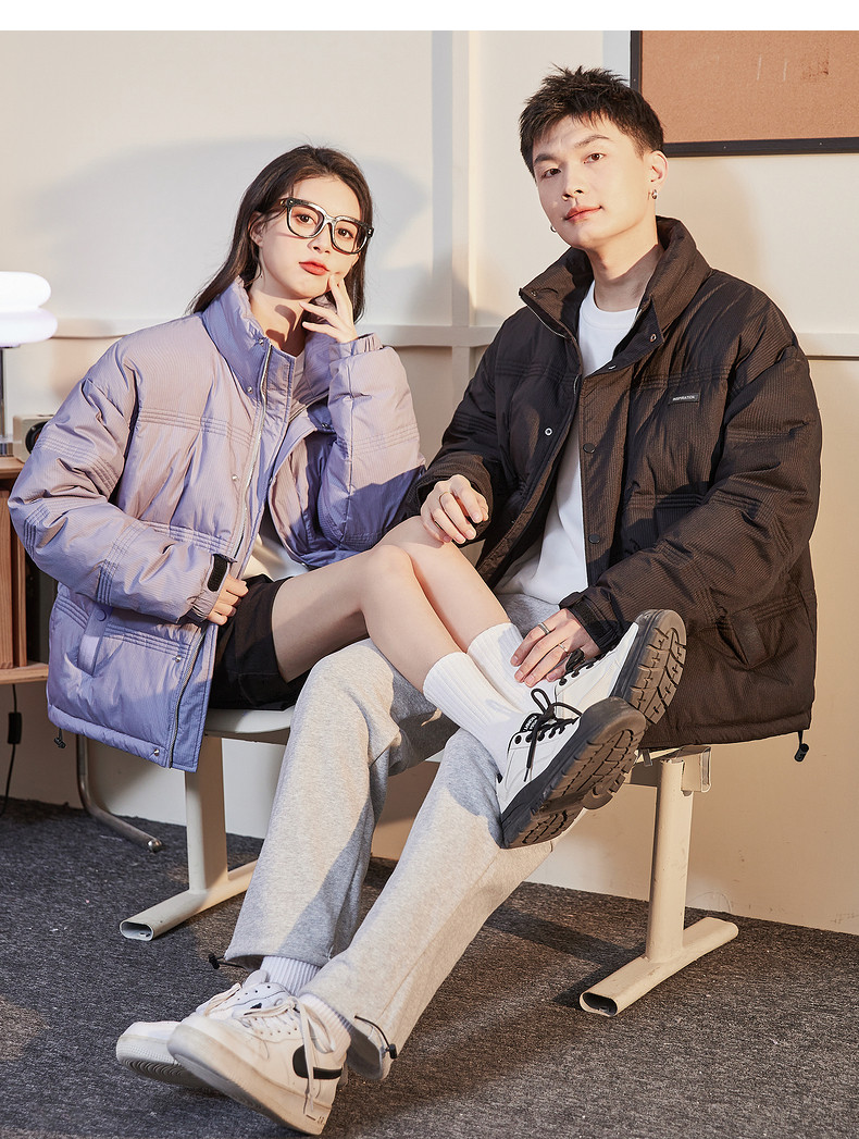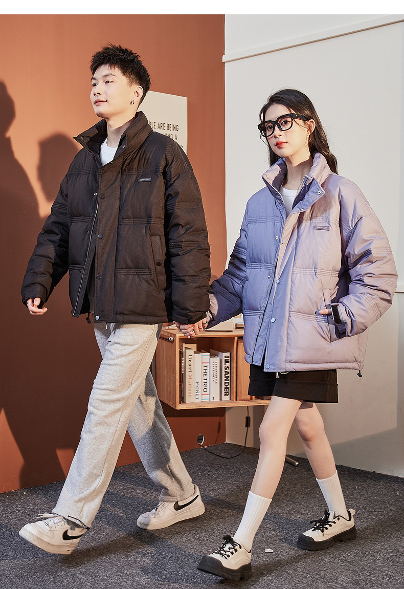 唐狮2024冬季羽绒服新款情侣男立领多道绗线短款羽绒服复古潮流
