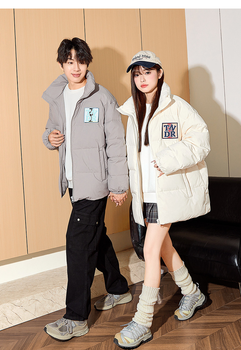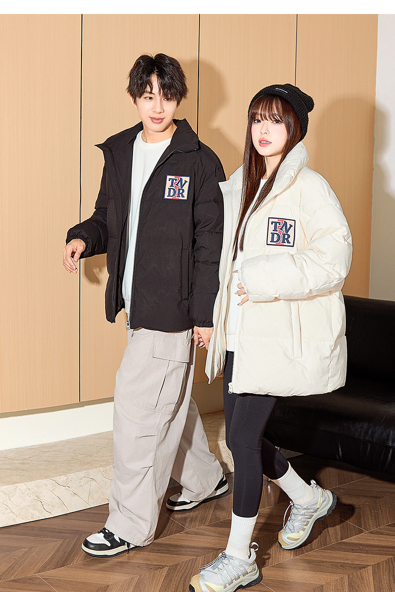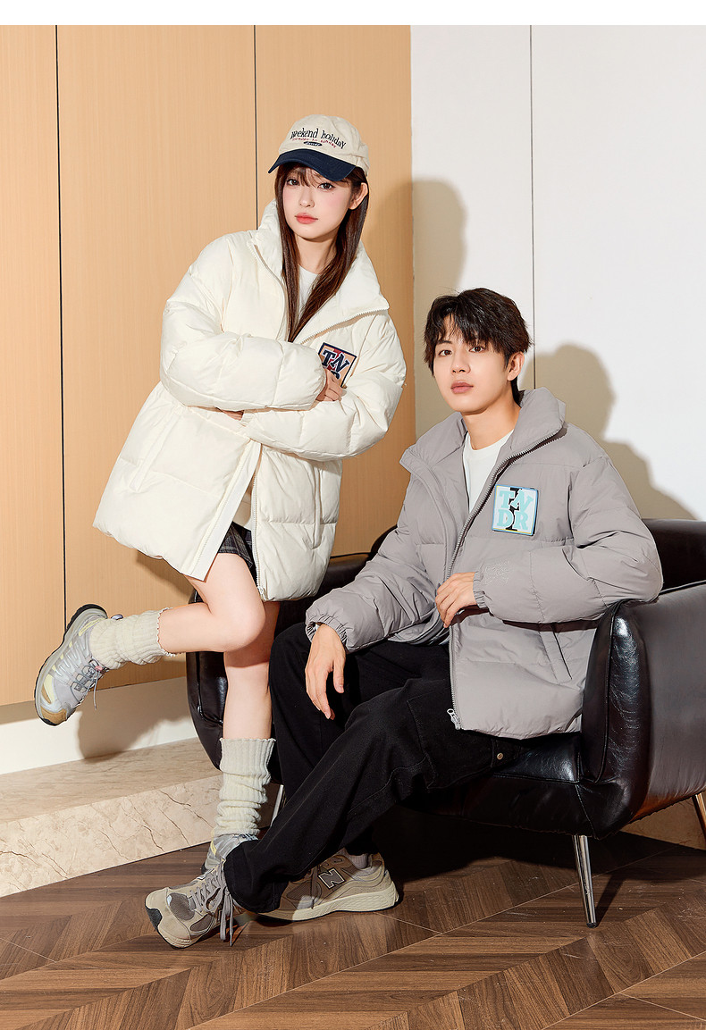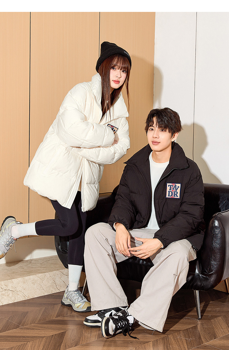唐狮2024新款情侣同码立领羽绒服前胸撕拉绣花标魔术贴潮流设计感