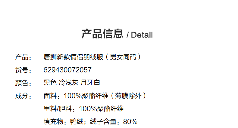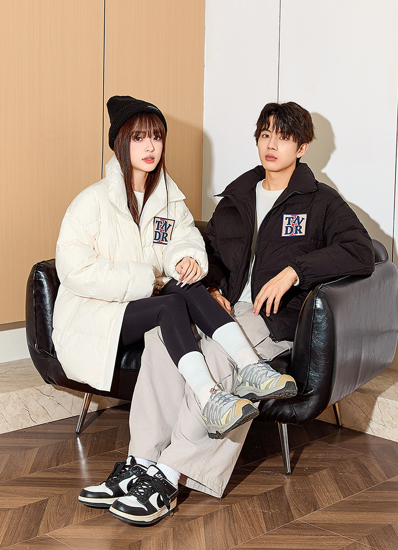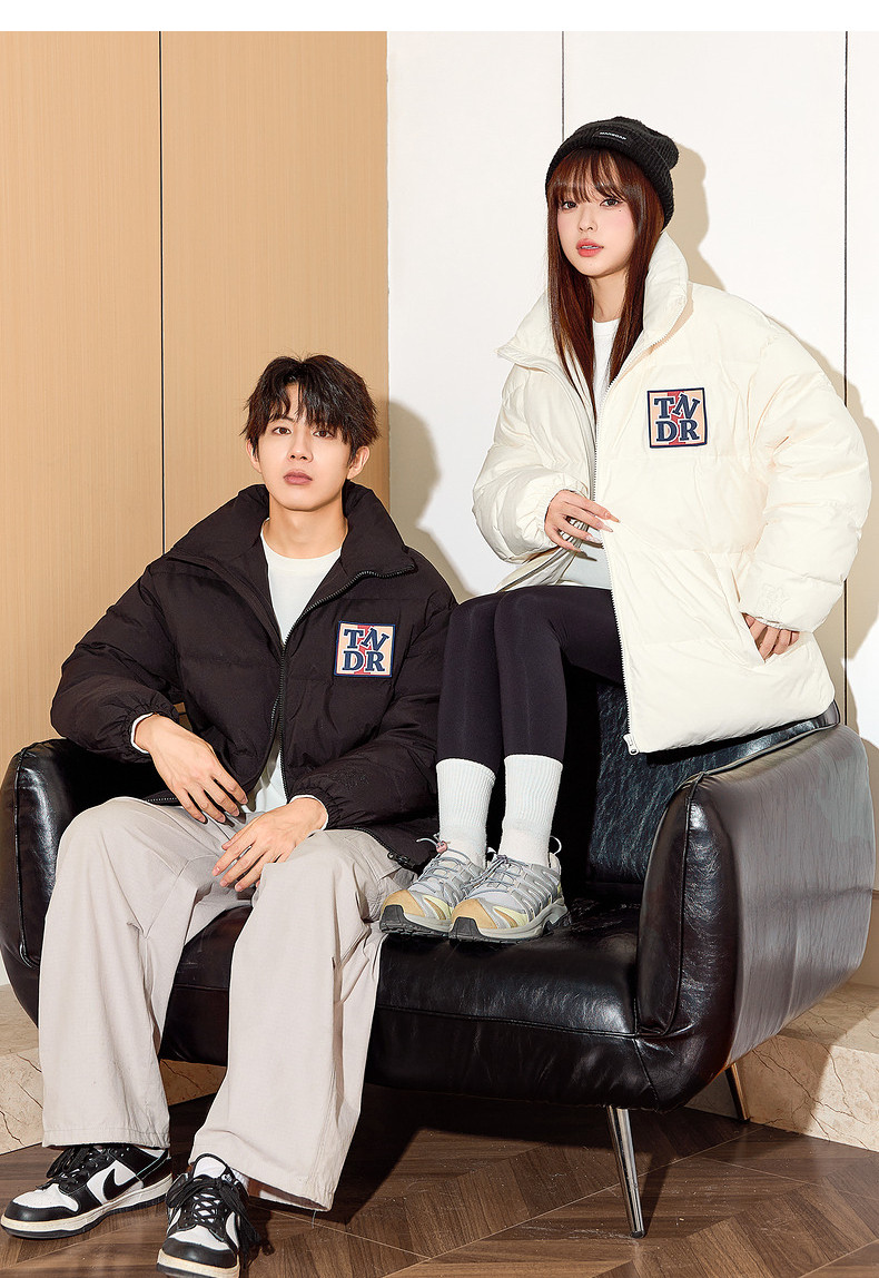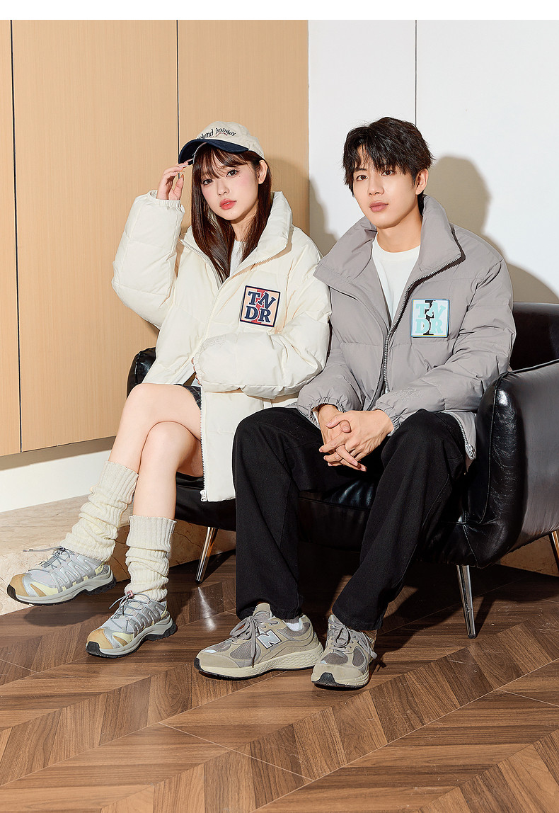 唐狮2024新款情侣同码立领羽绒服前胸撕拉绣花标魔术贴潮流设计感