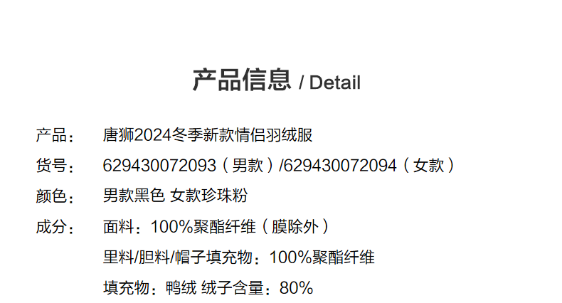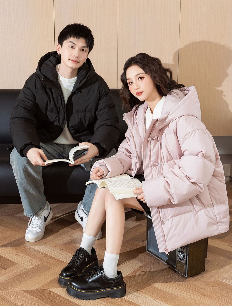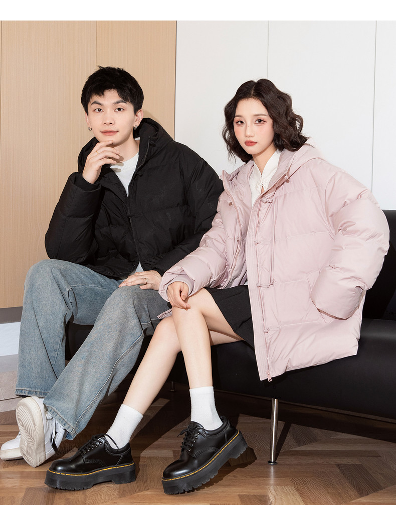 唐狮2024冬季新款情侣装羽绒服新中式短款连帽面包服厚实保暖外套