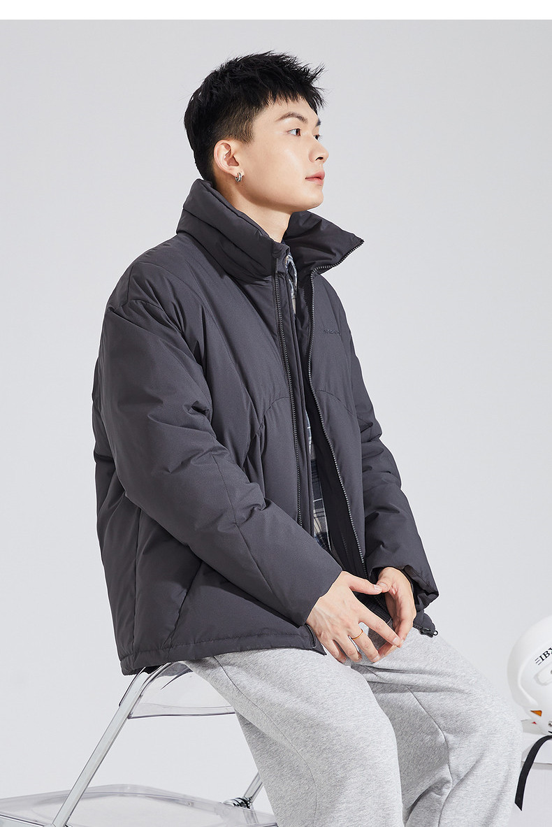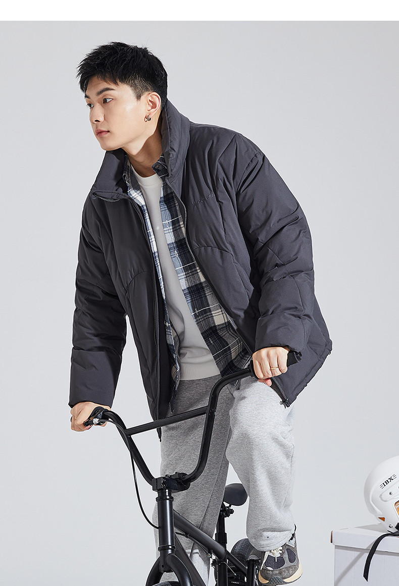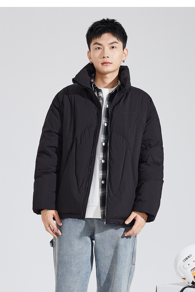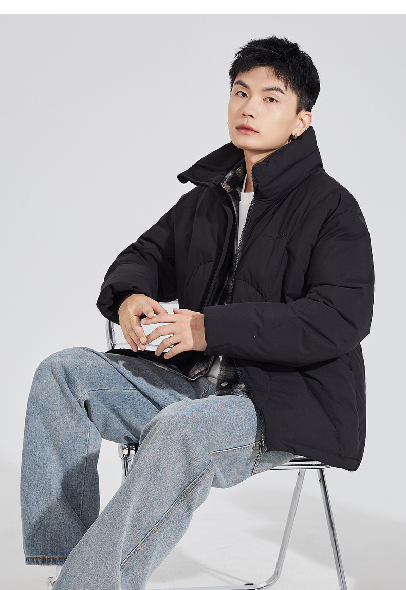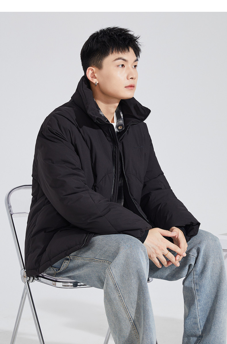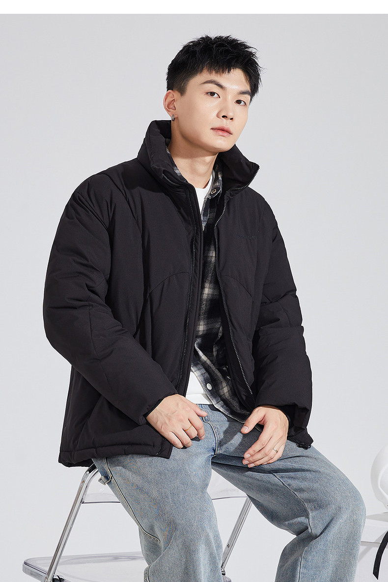 唐狮2024冬季新款棉衣男士翻领夹棉外套青少年学生短款黑色棉服潮