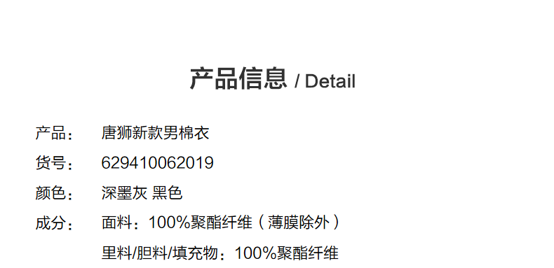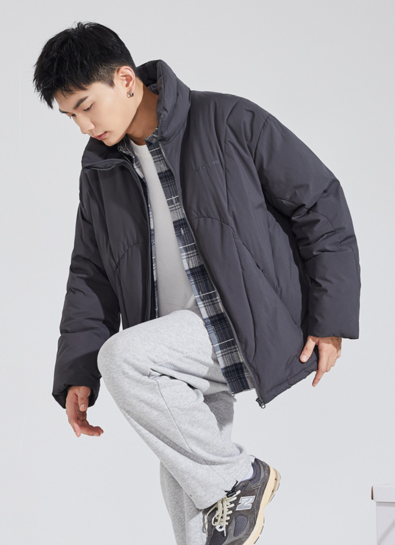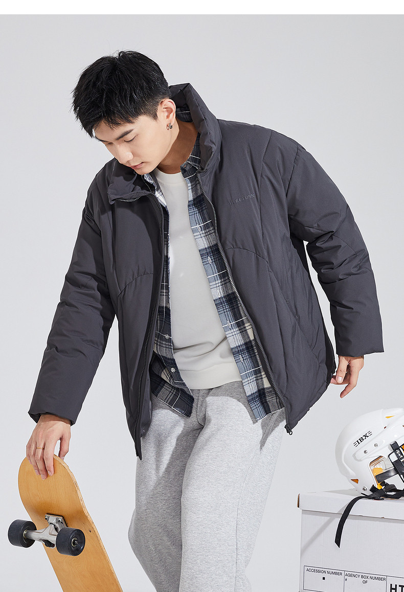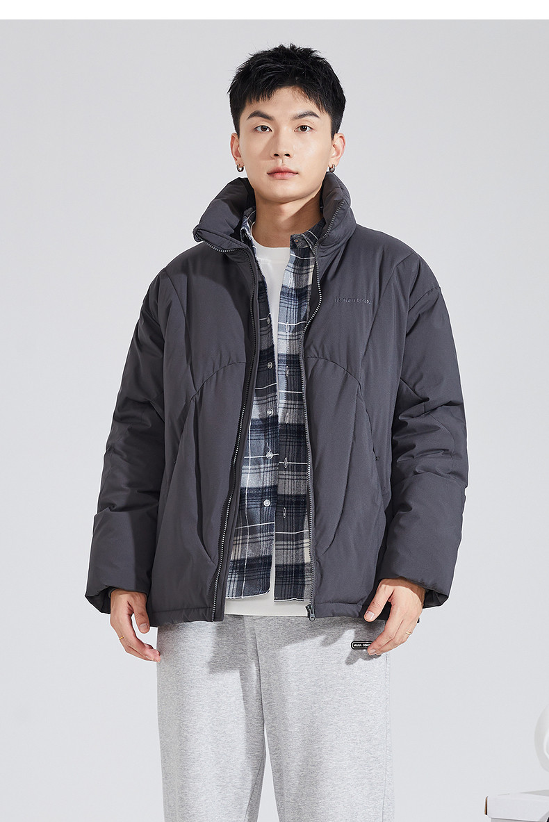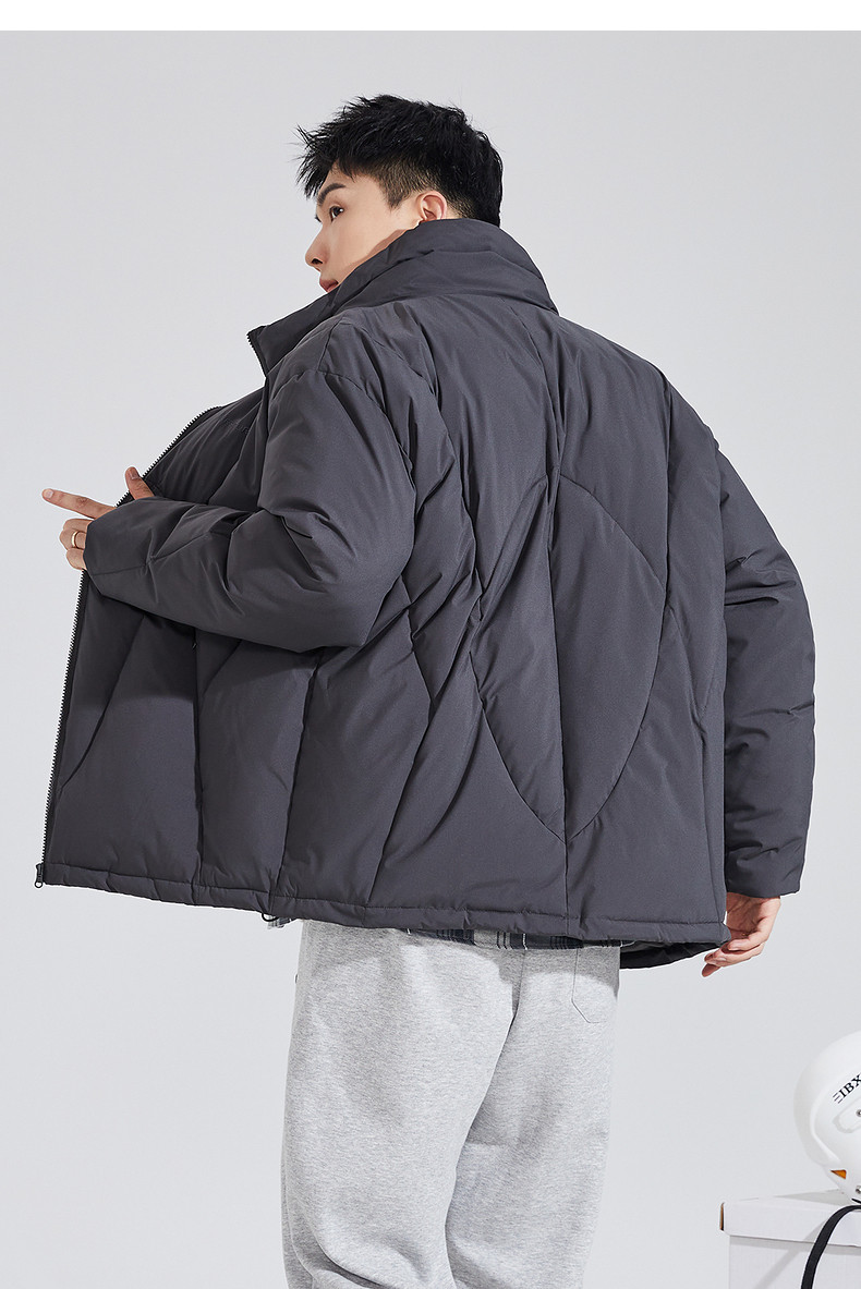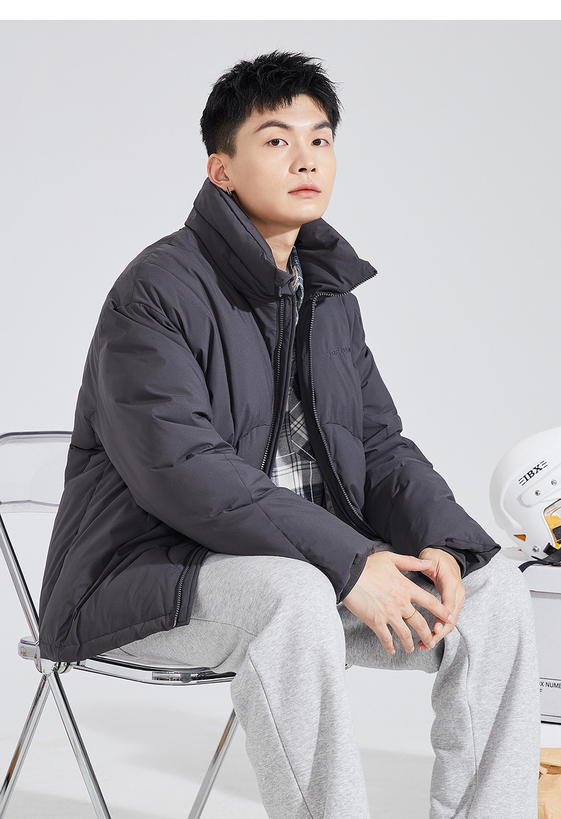 唐狮2024冬季新款棉衣男士翻领夹棉外套青少年学生短款黑色棉服潮