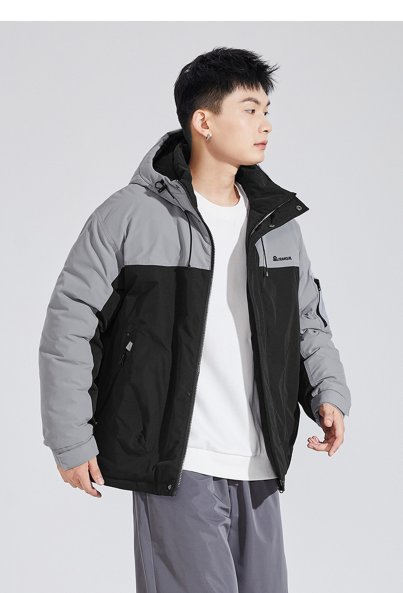 唐狮2024冬季新款羽绒服男连帽短款面包服加厚保暖港风青少年外套