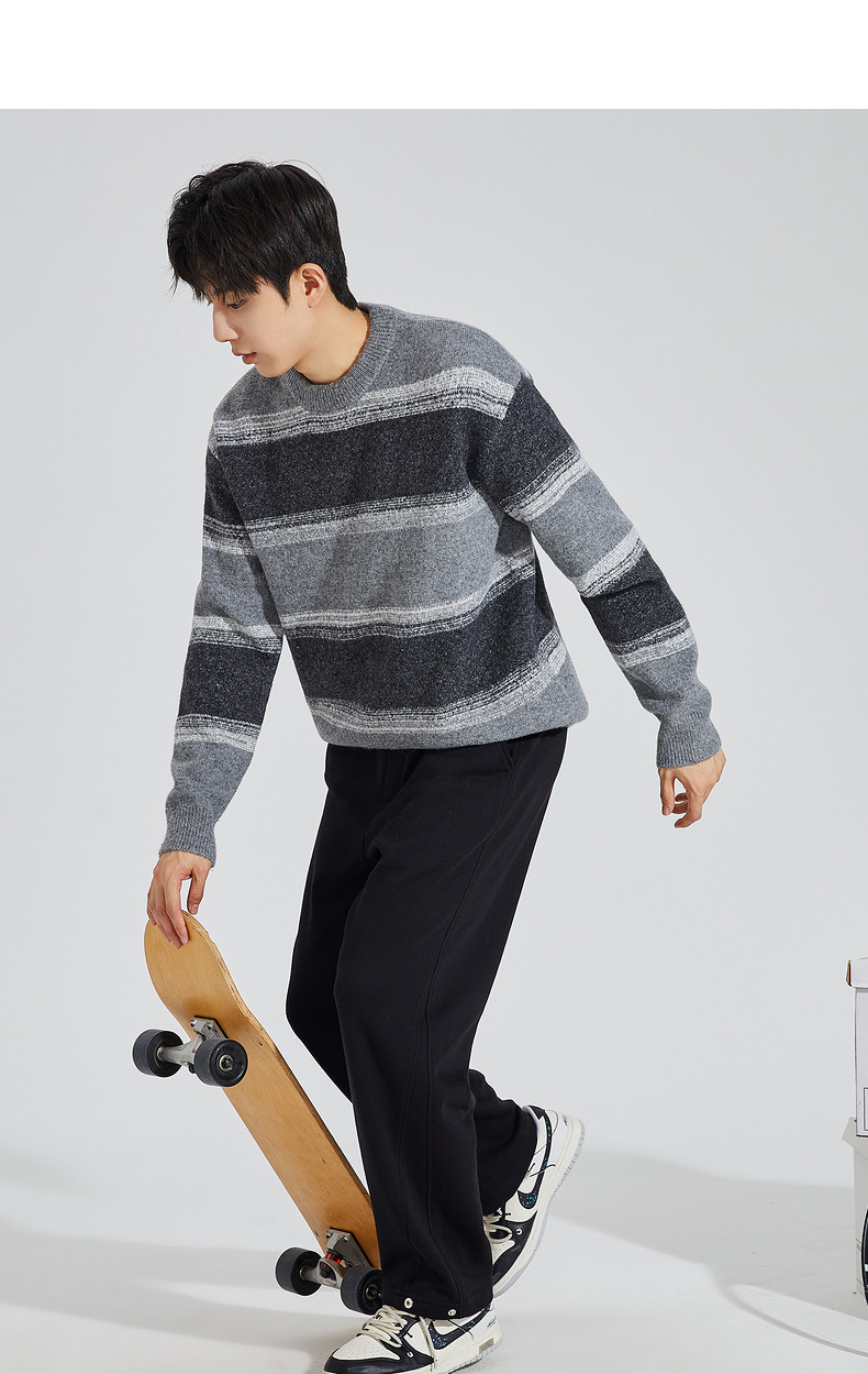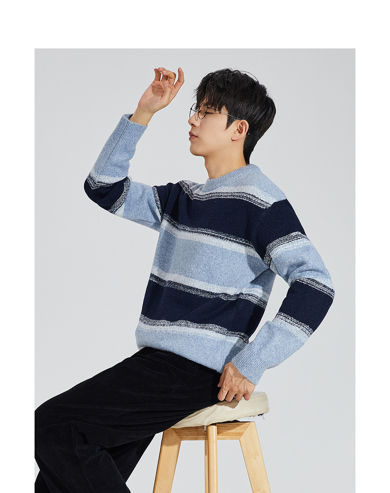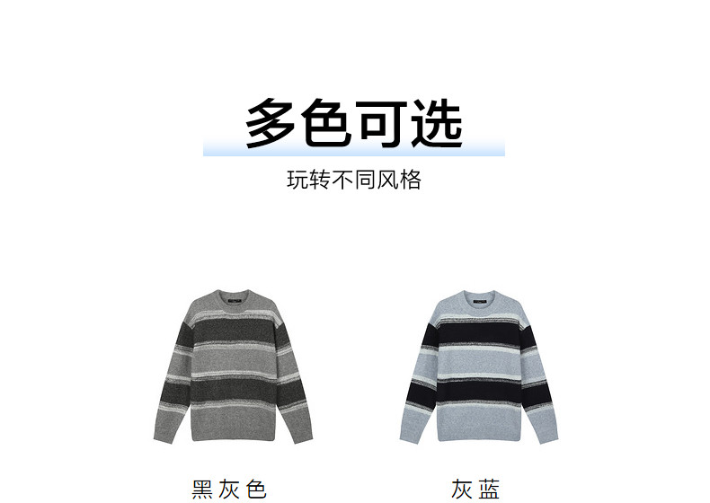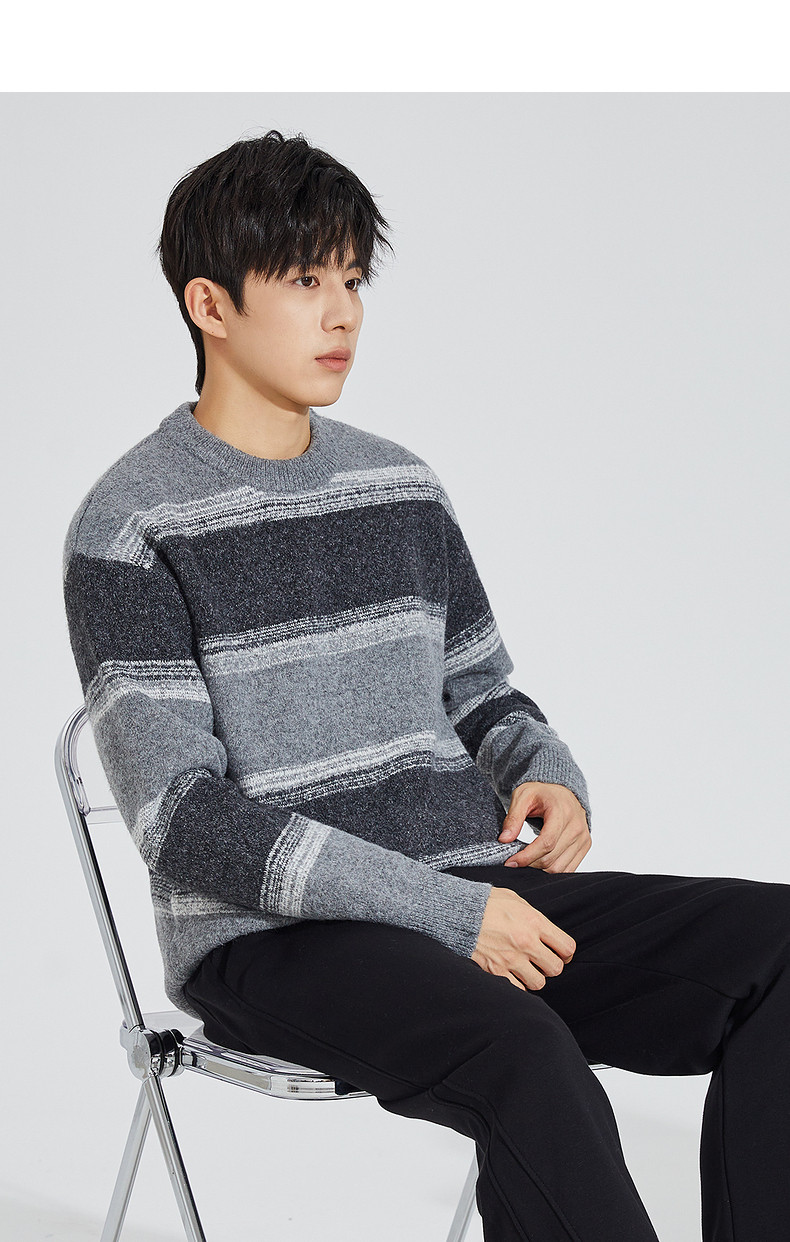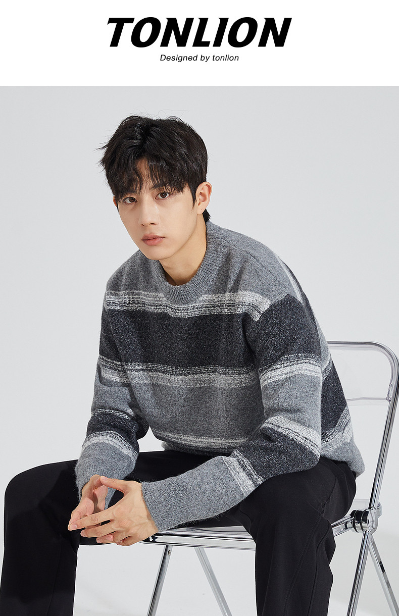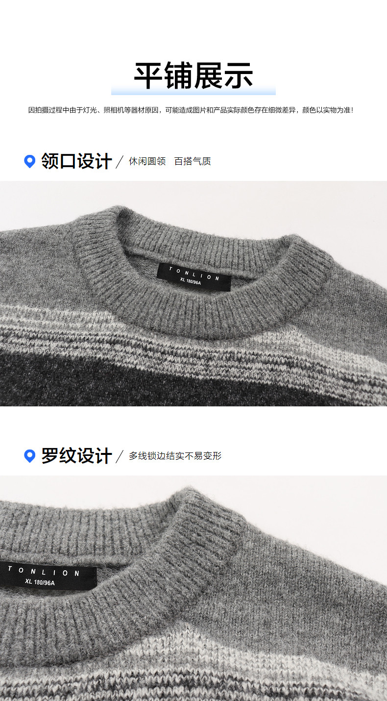 唐狮2024男士毛衣冬季新款圆领撞色拼接时尚休闲百搭少年感毛线衫