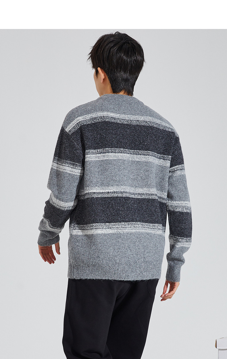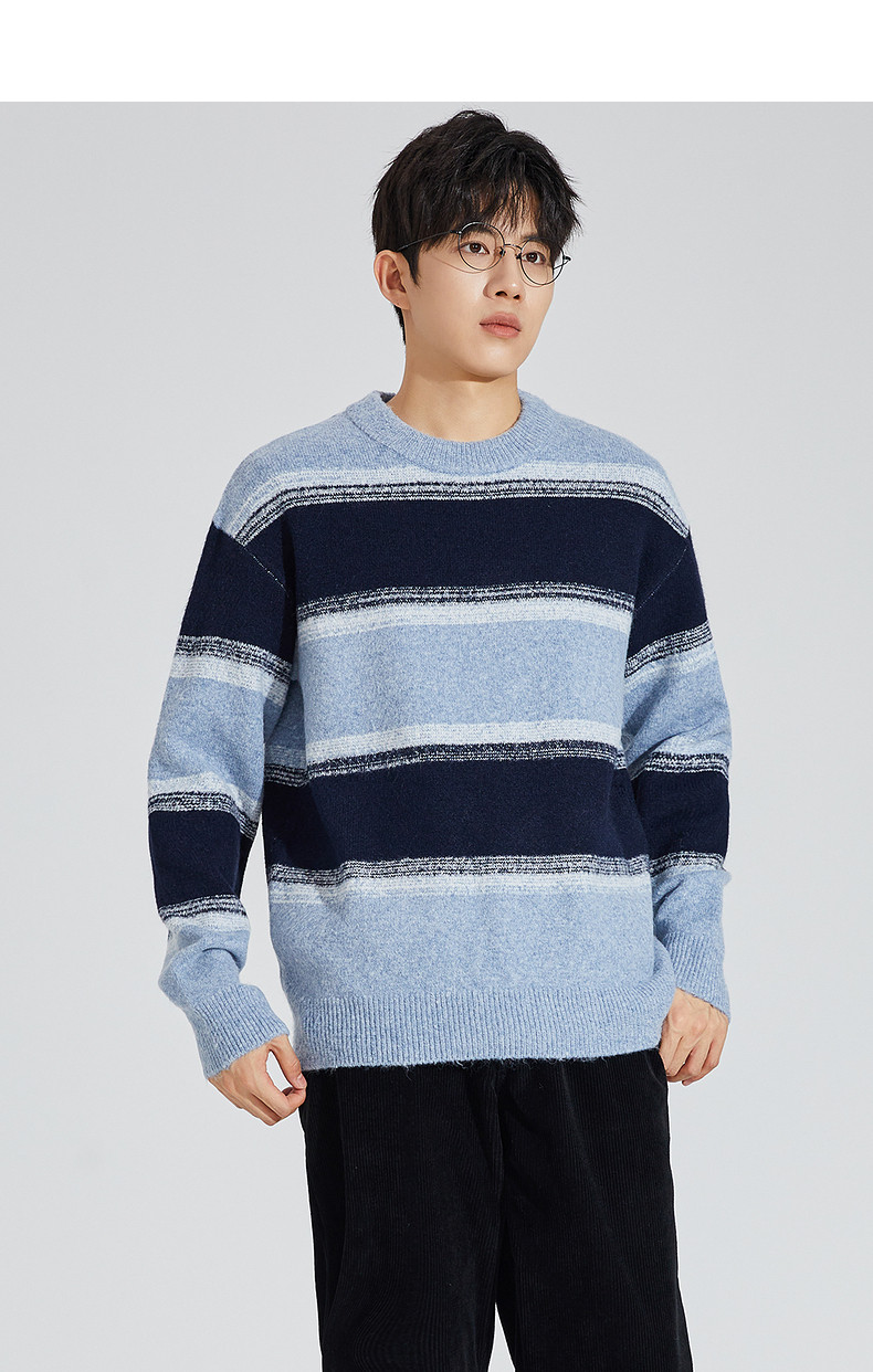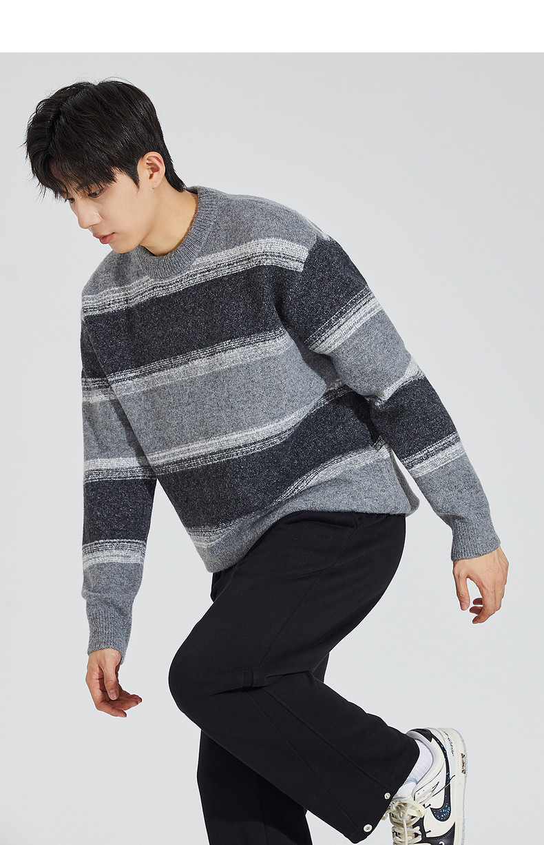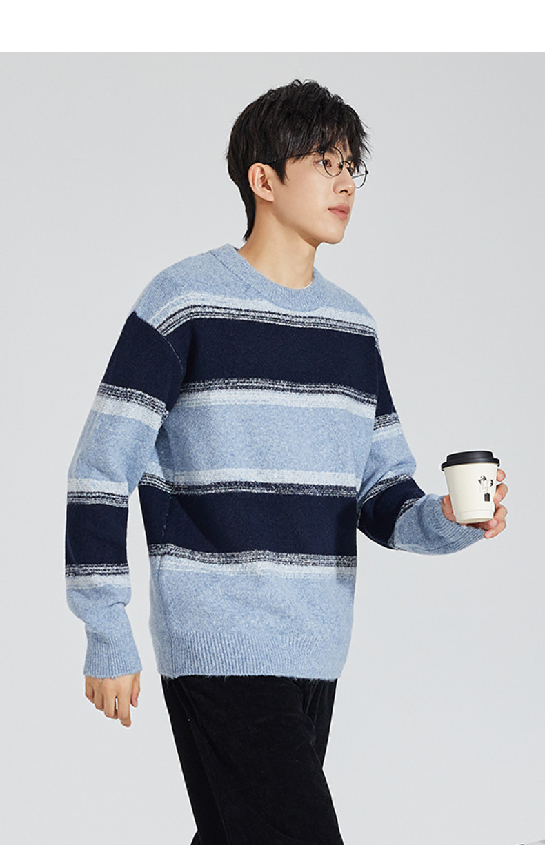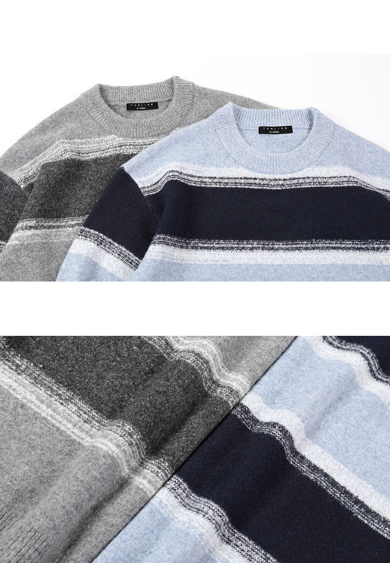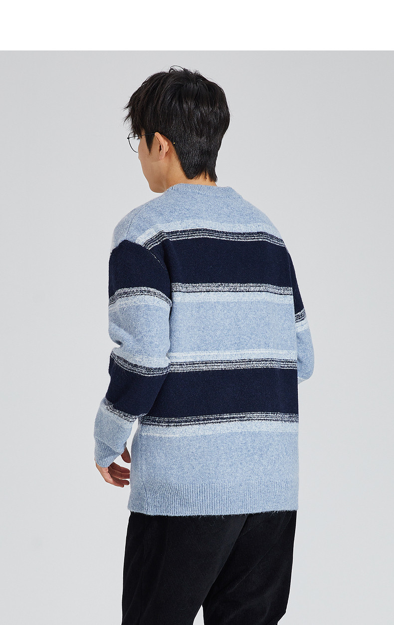 唐狮2024男士毛衣冬季新款圆领撞色拼接时尚休闲百搭少年感毛线衫