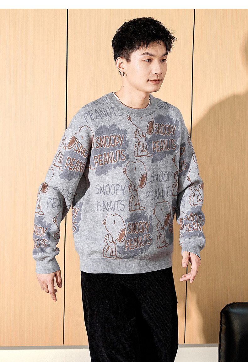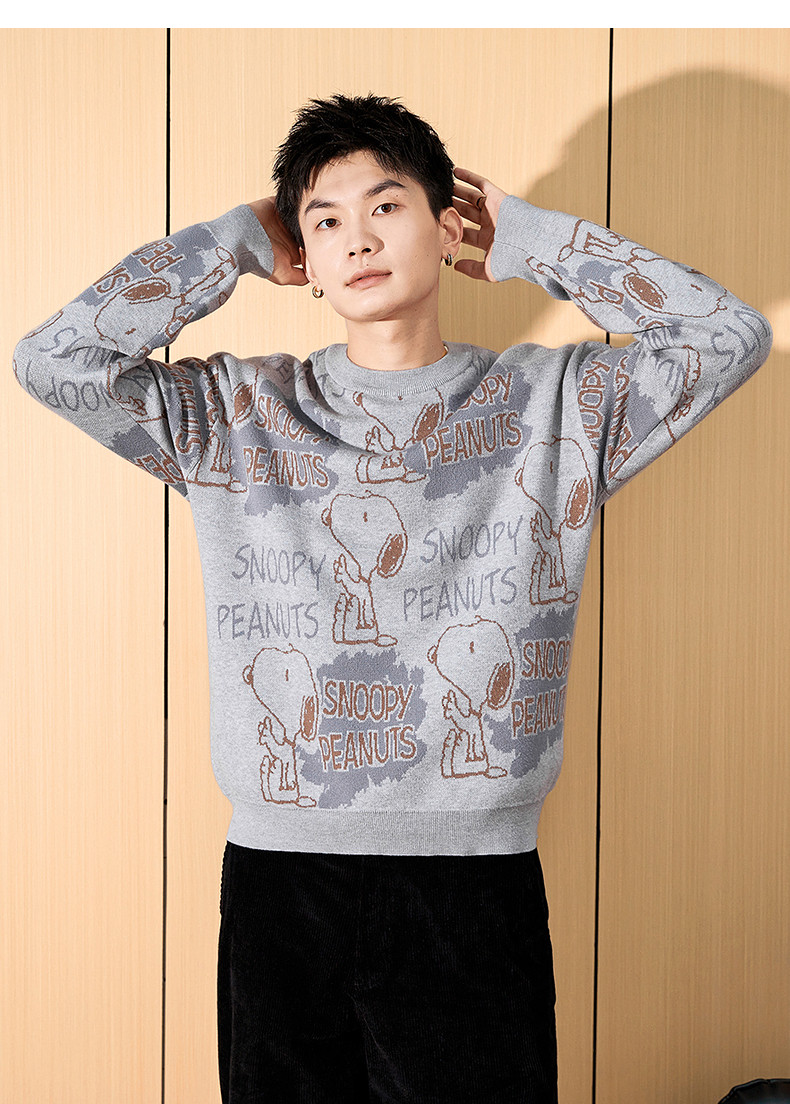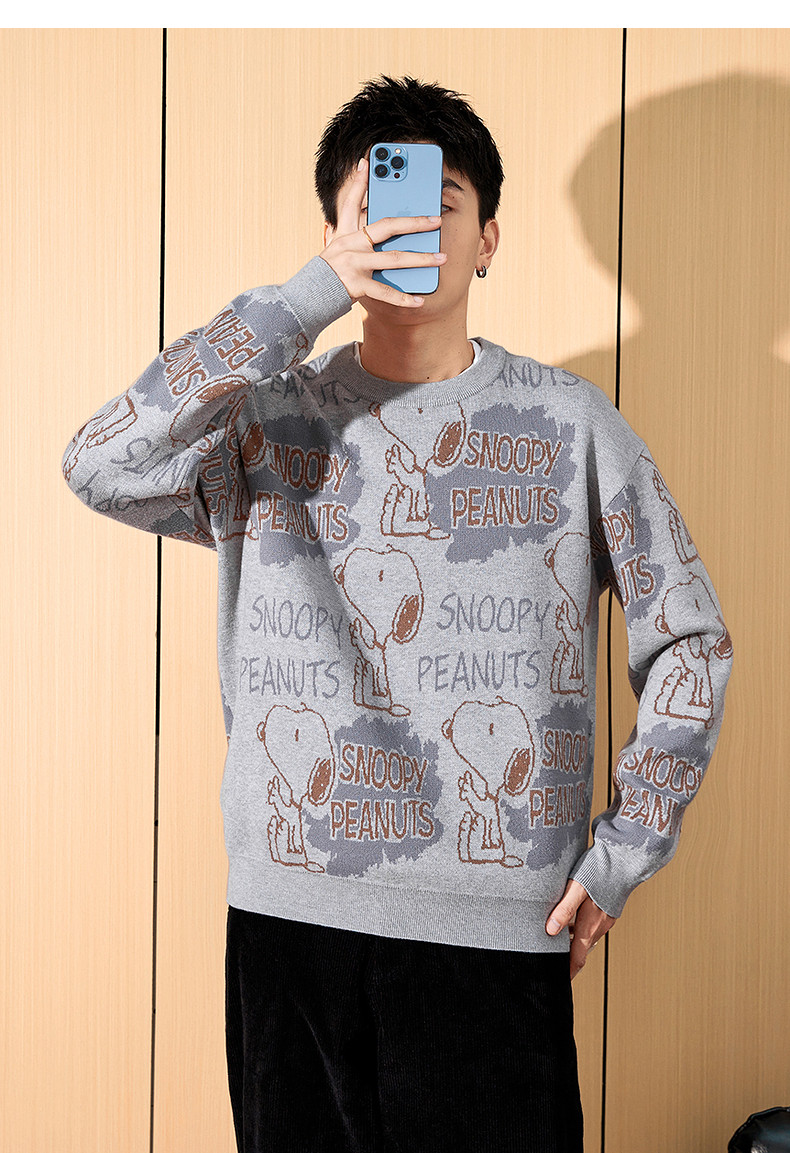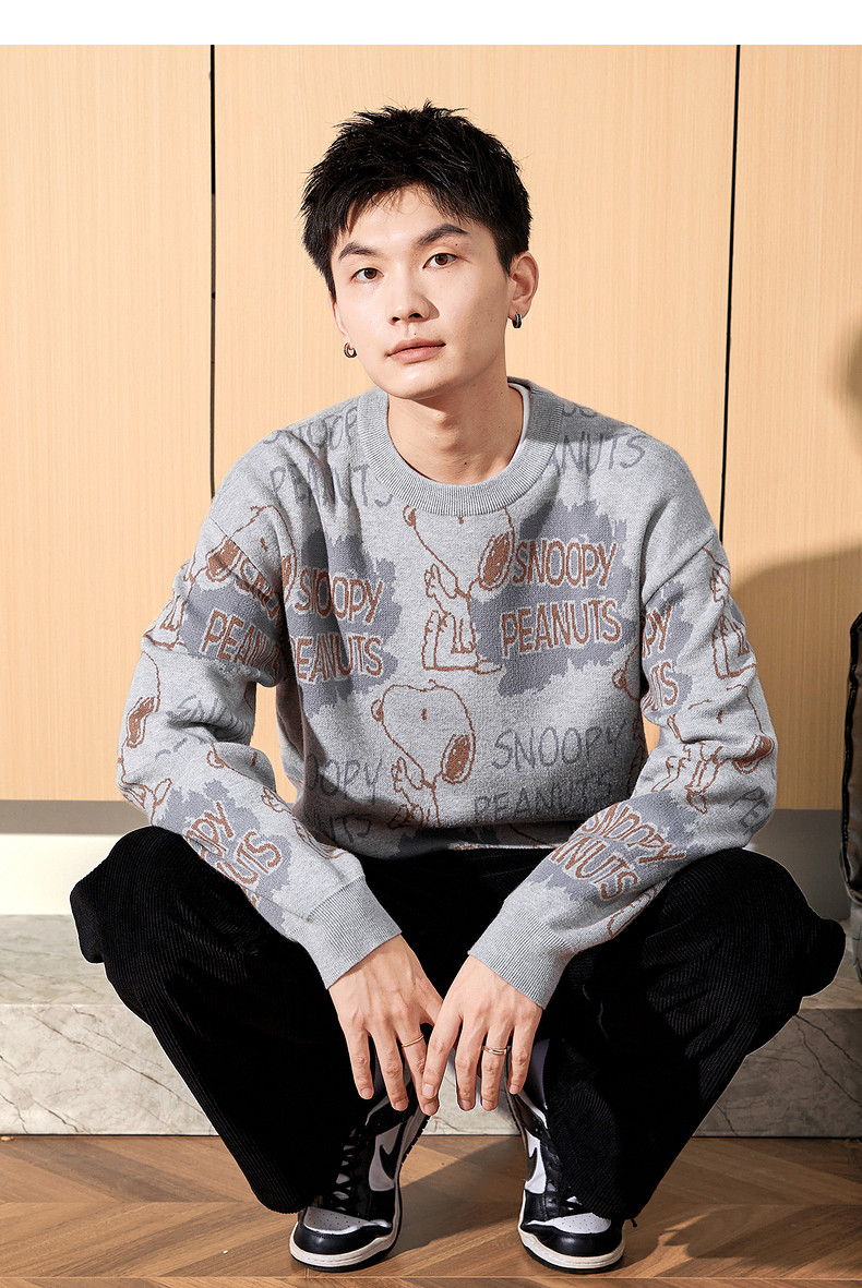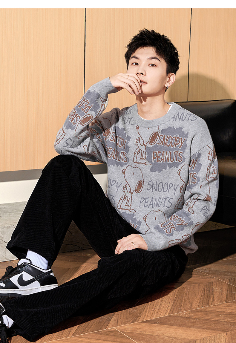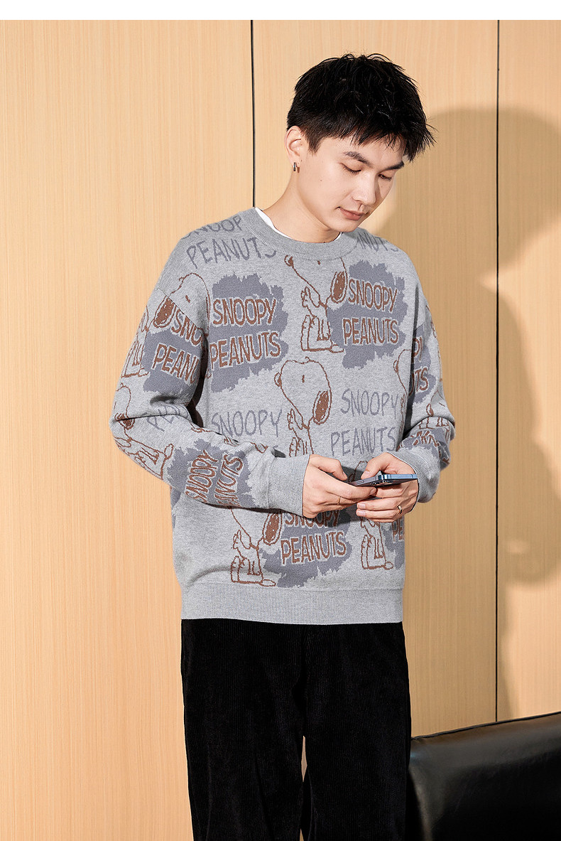 唐狮2024冬季新款男毛衣史努比提花满印针织衫上衣男款毛衫青少年
