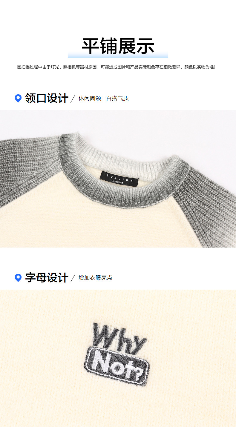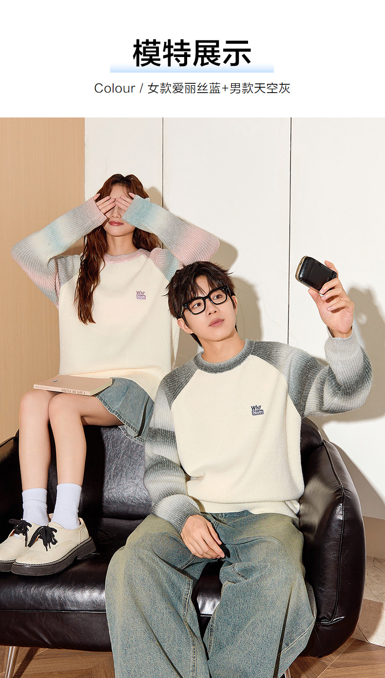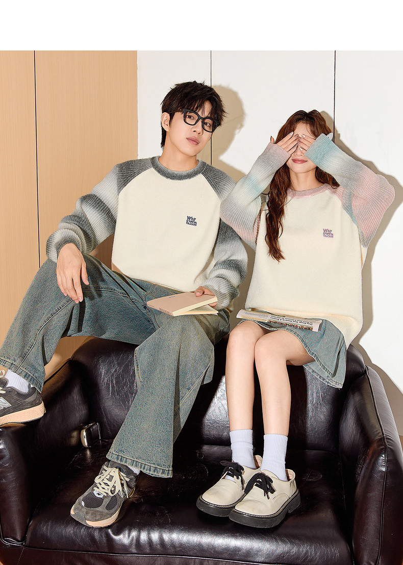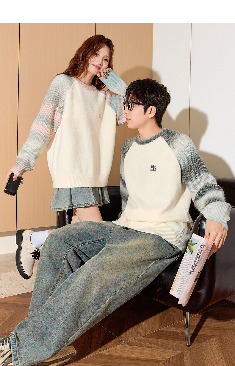 唐狮2024秋冬新款情侣毛衣插肩袖渐变撞色学院风高级感针织衫潮流