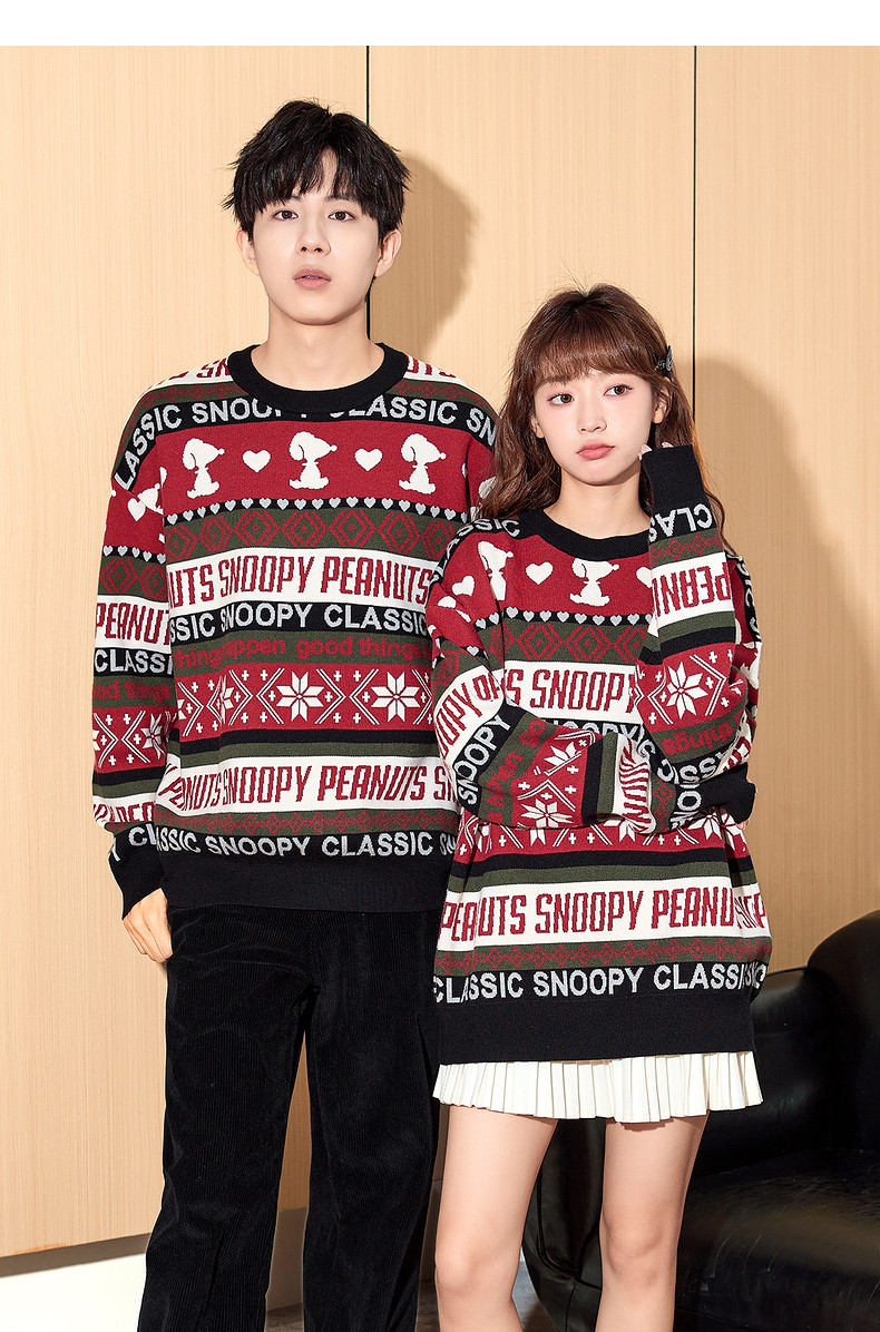 唐狮2024冬季新款情侣毛衣男女同码史努比毛衣趣味满印提花慵懒风