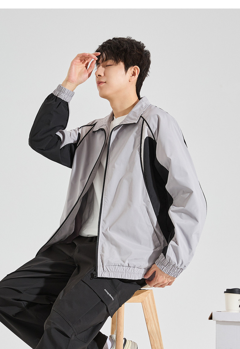 唐狮2024秋季新款外套男立领拼接时尚学生男士外套休闲运动酷帅潮