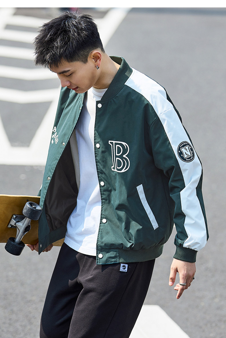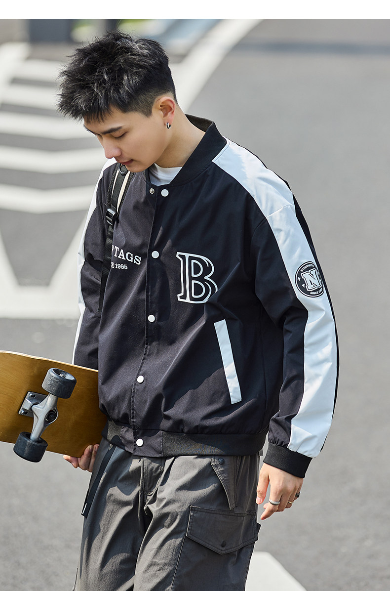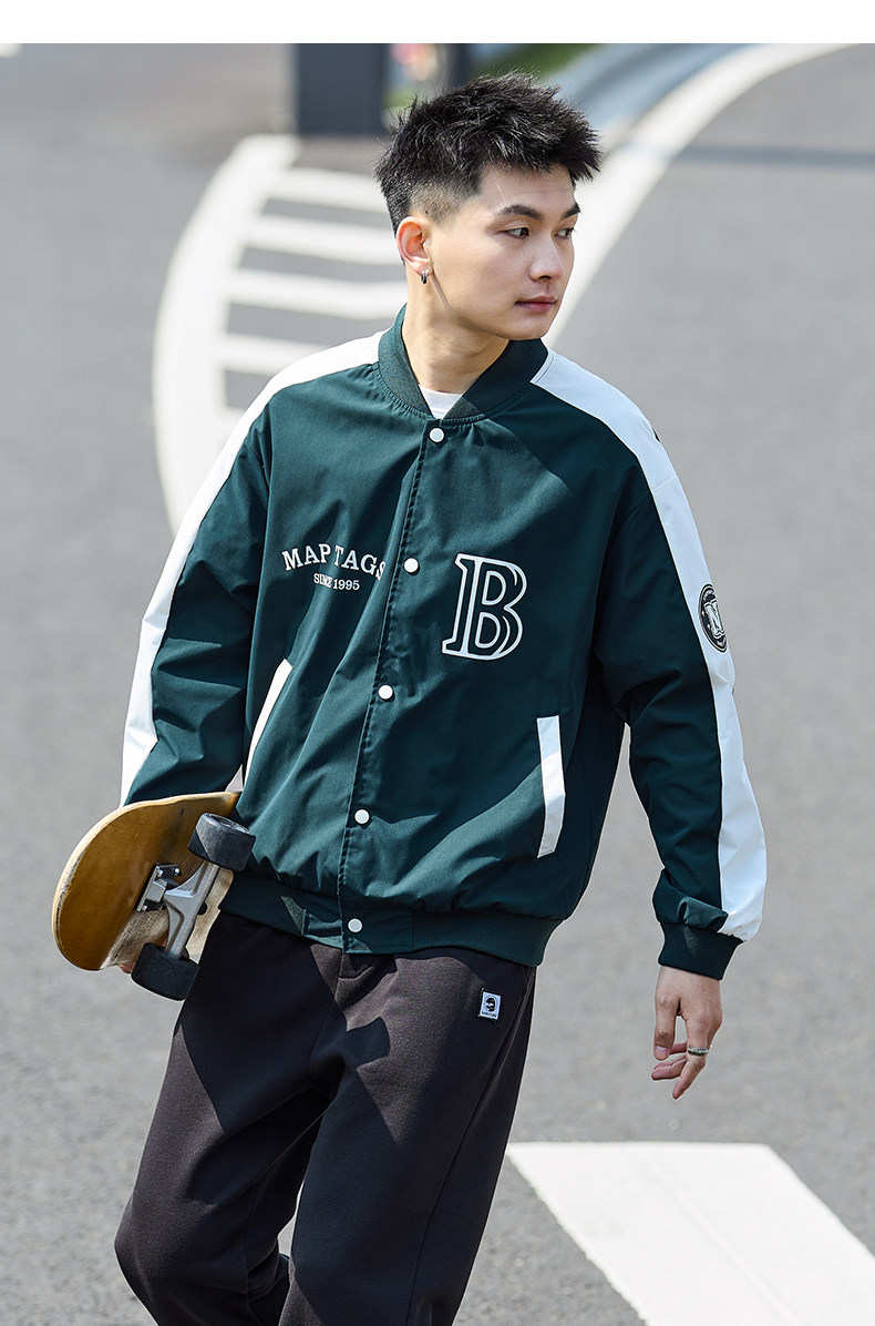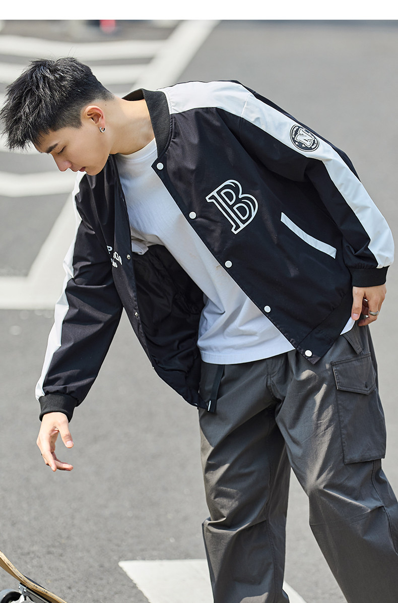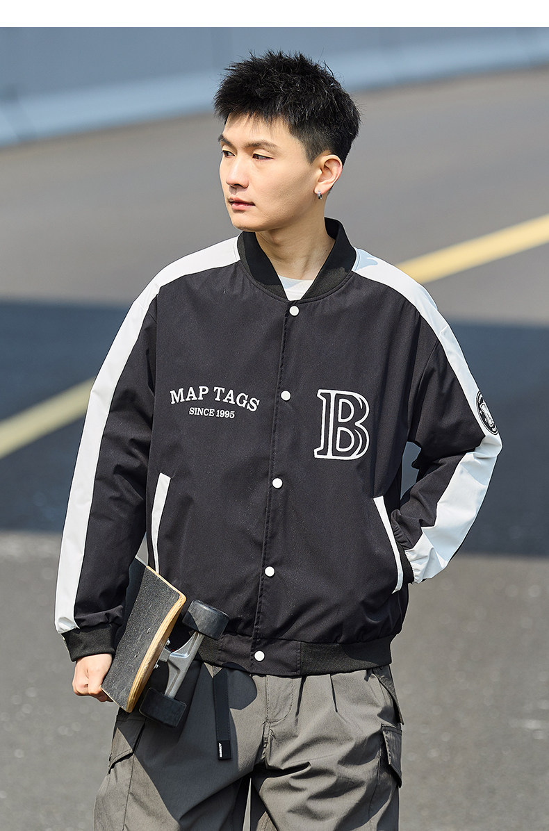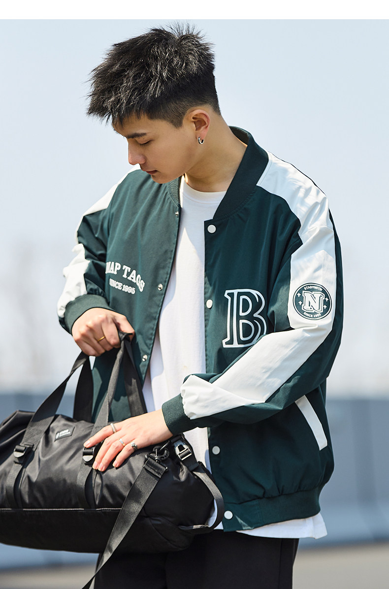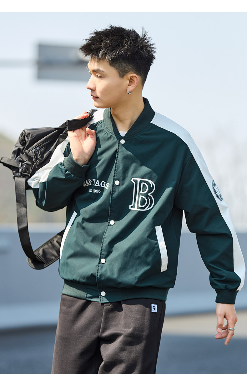唐狮2024春季新款夹克外套男棒球服拼接休闲美式运动棒球领夹克男