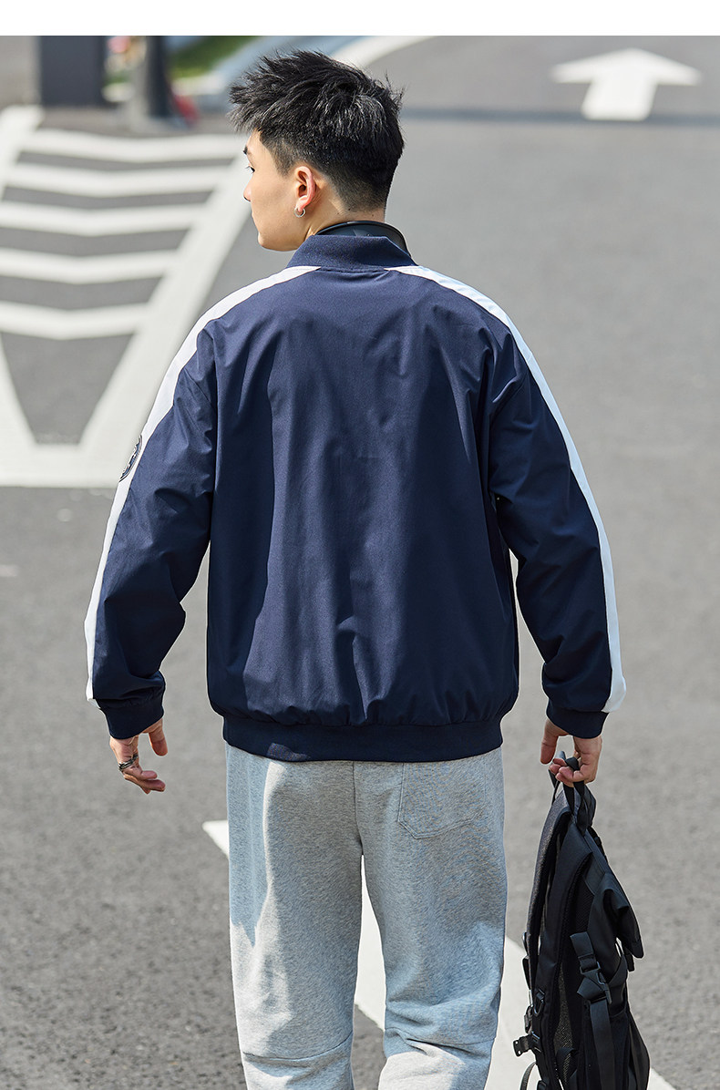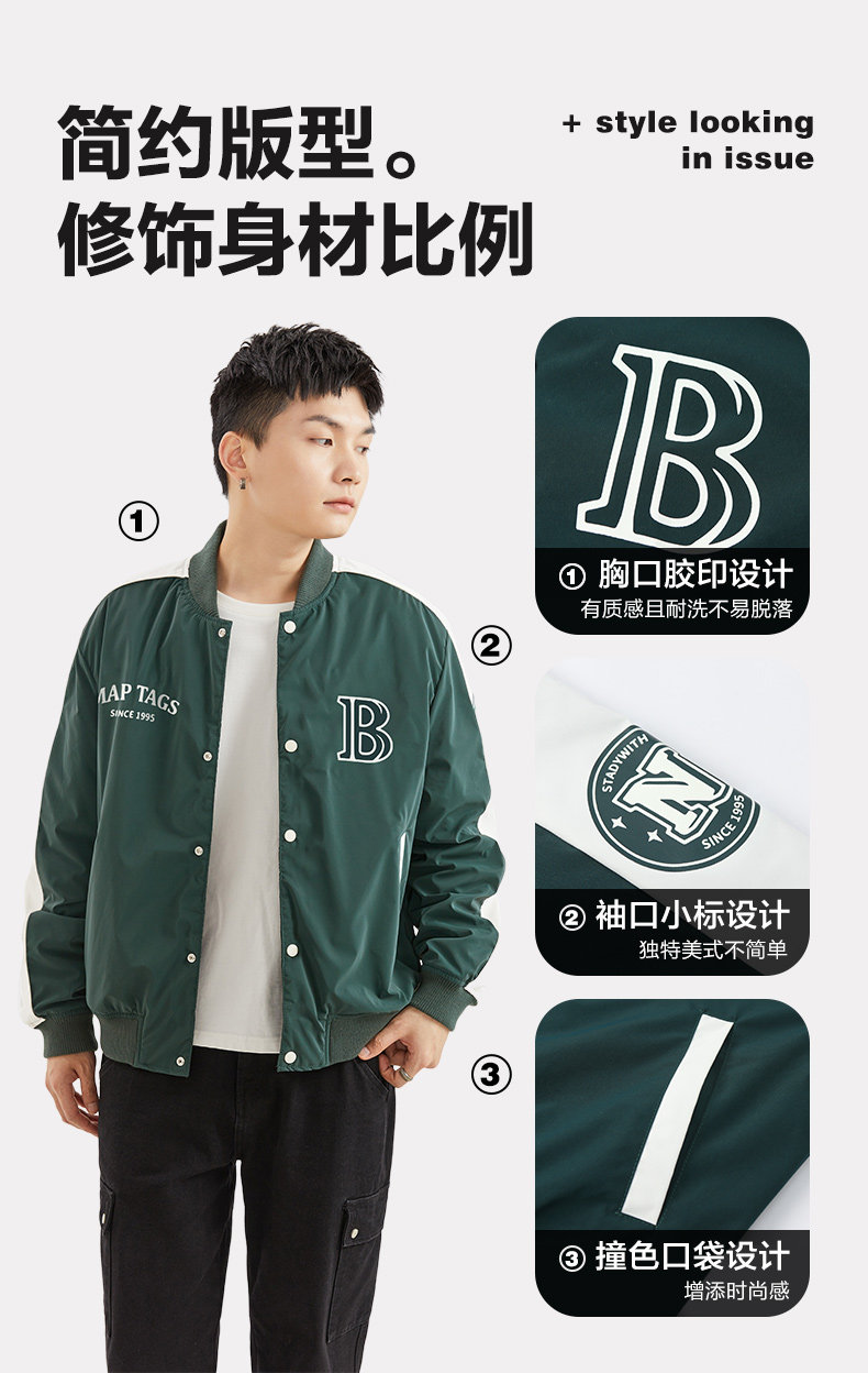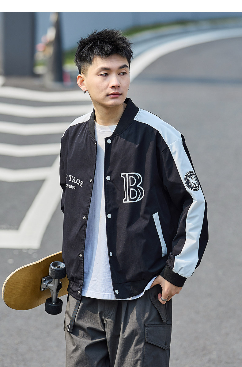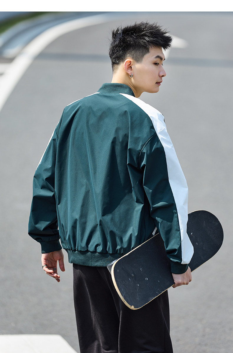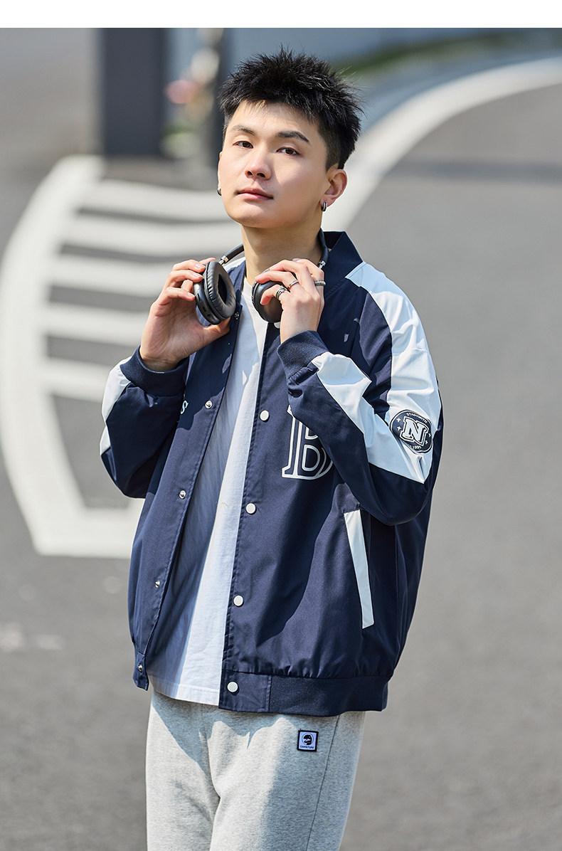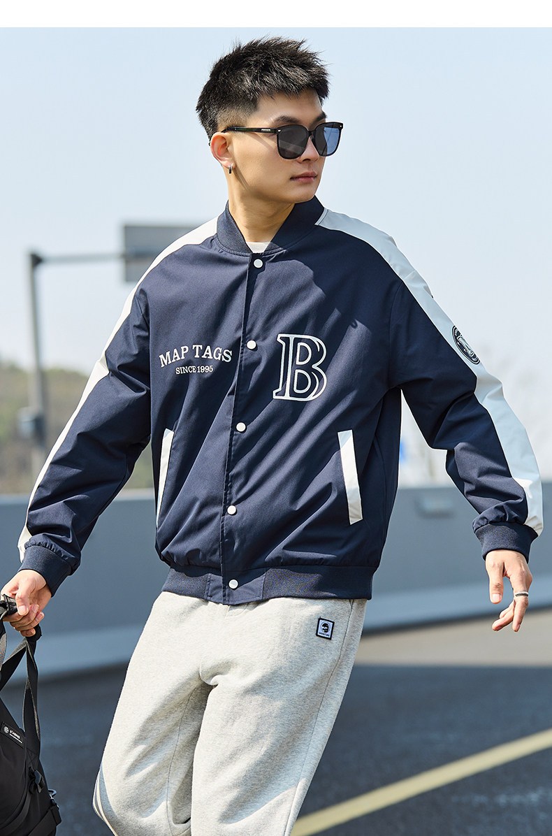 唐狮2024春季新款夹克外套男棒球服拼接休闲美式运动棒球领夹克男