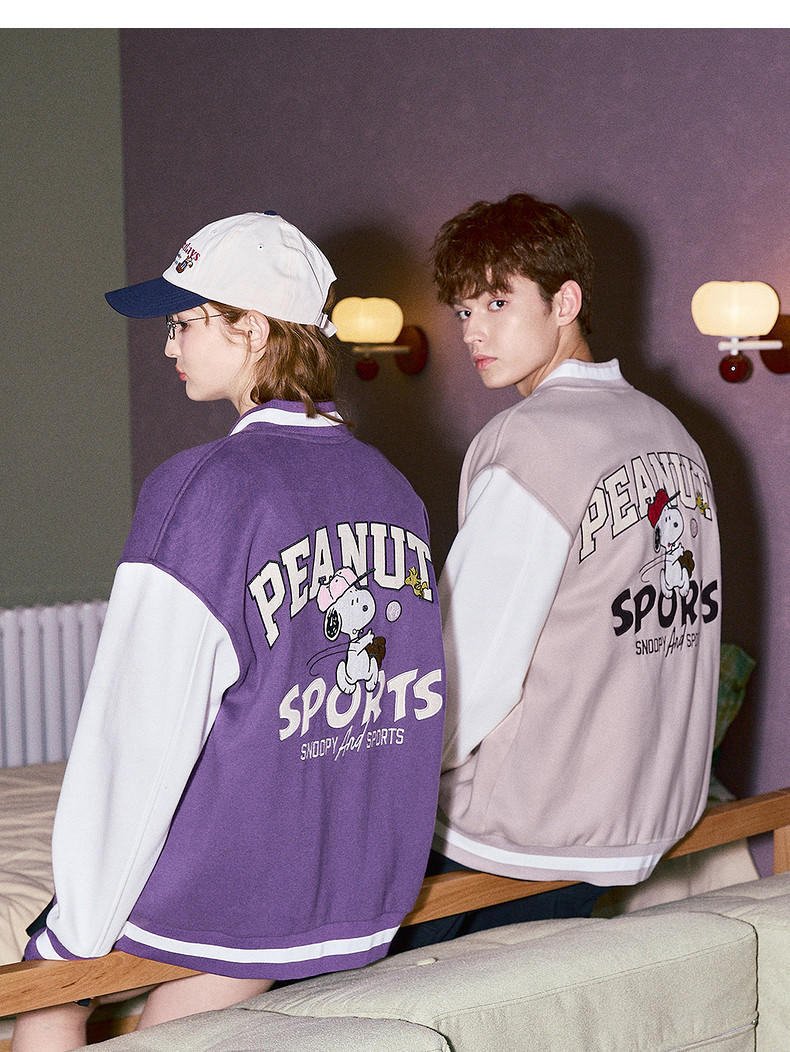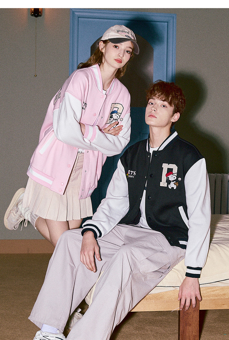 [史努比联名]唐狮2024秋季新款棒球服外套情侣休闲棒球领外套男女