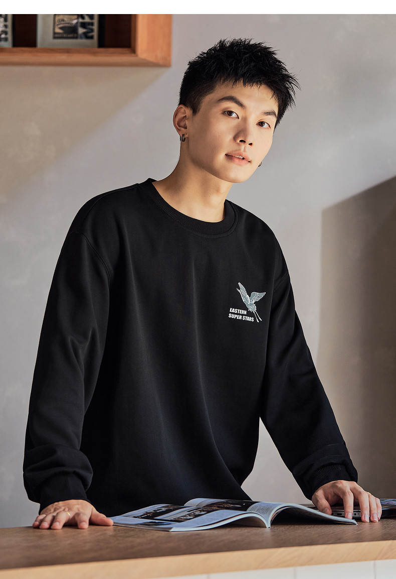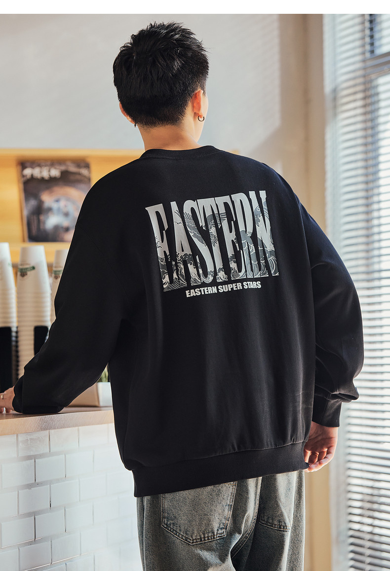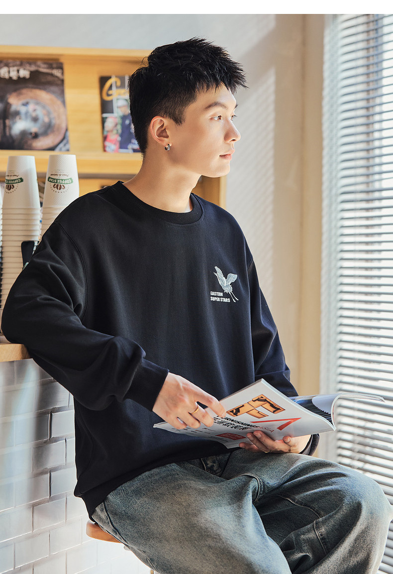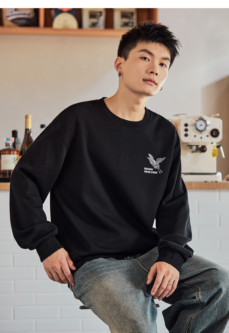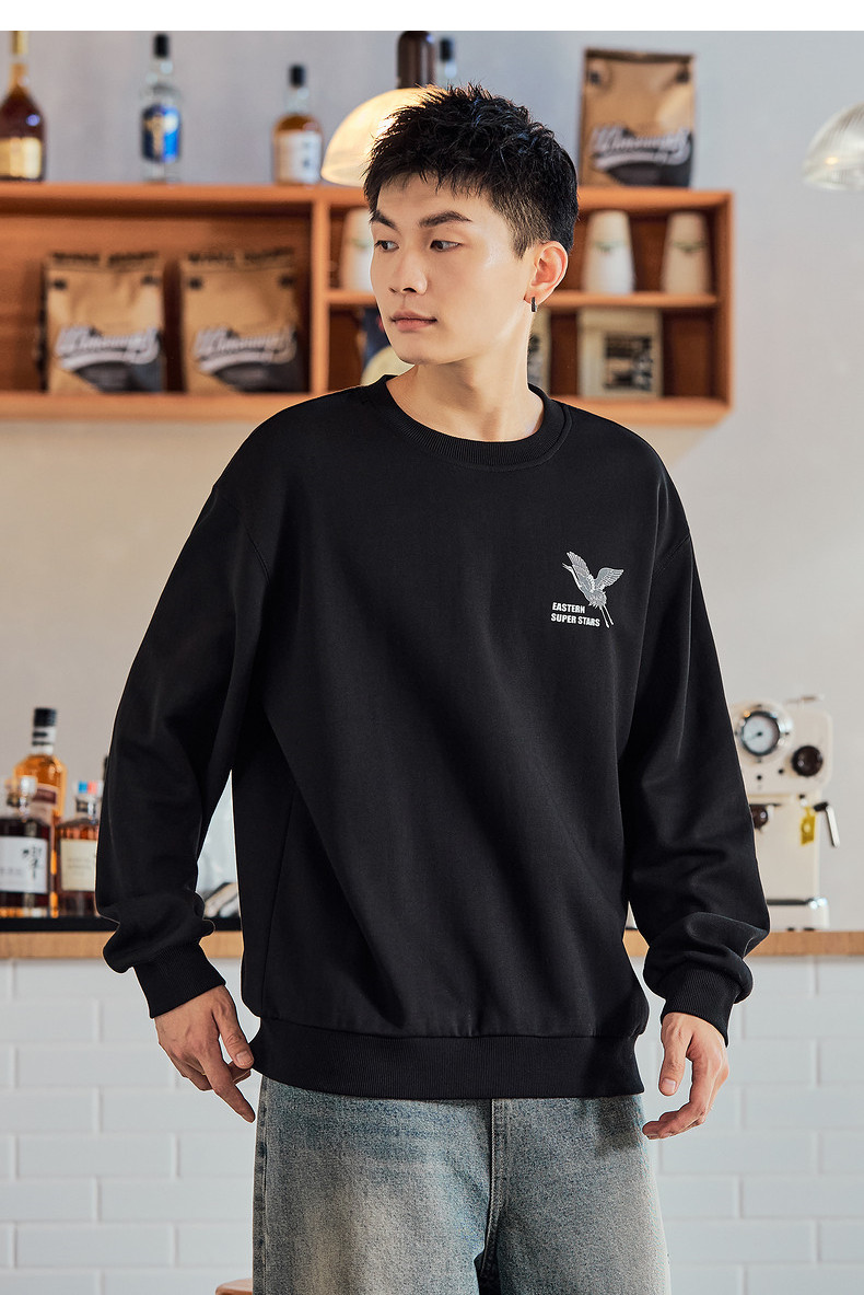 唐狮2024春秋季新款圆领卫衣男士休闲灰色无帽衫痞帅长袖上衣潮牌