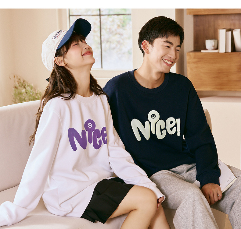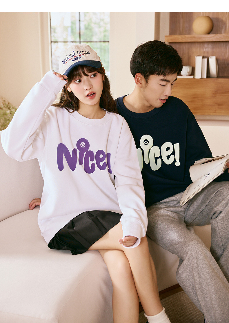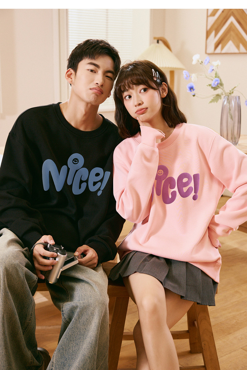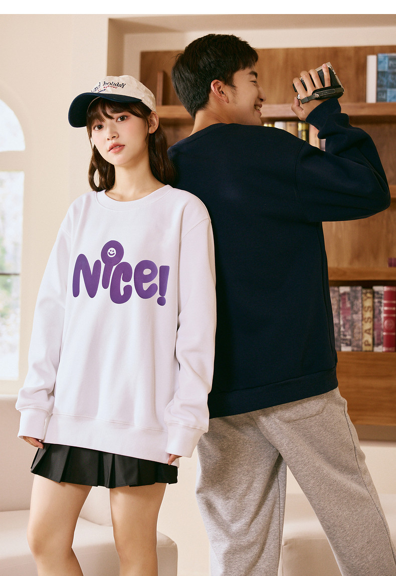 唐狮2024春秋季新款情侣卫衣男士圆领白色长袖上衣外套女情侣装潮