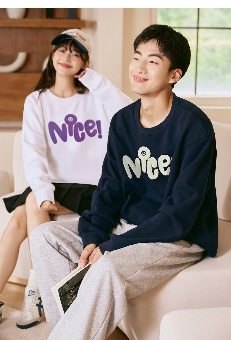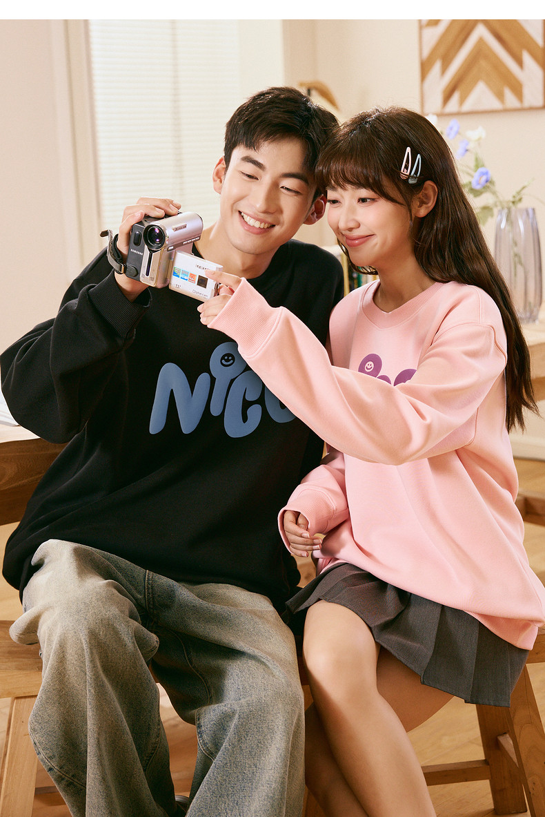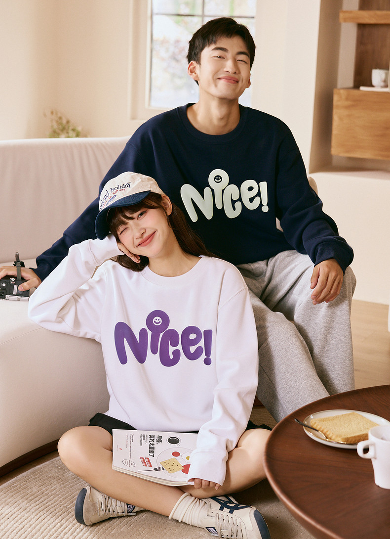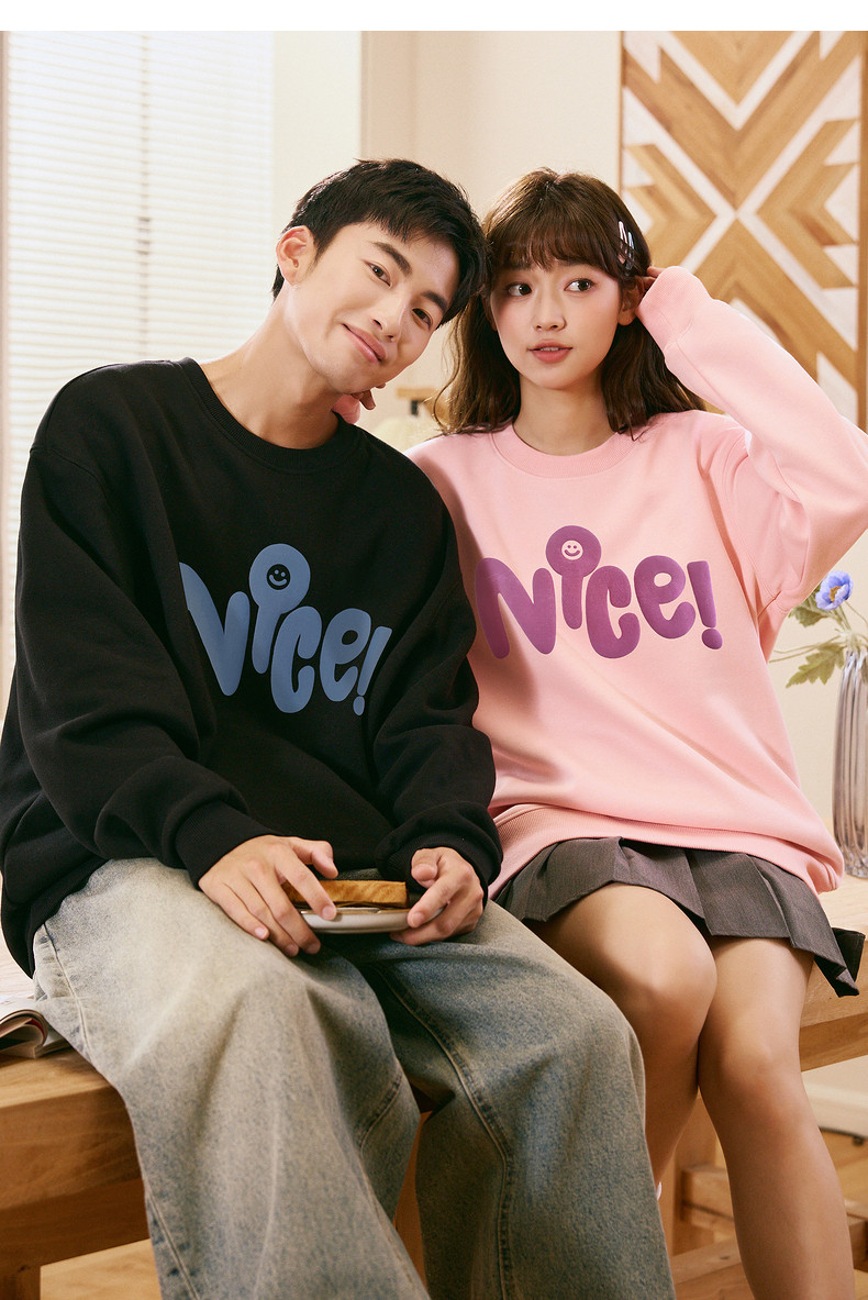 唐狮2024春秋季新款情侣卫衣男士圆领白色长袖上衣外套女情侣装潮