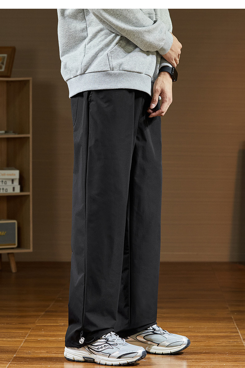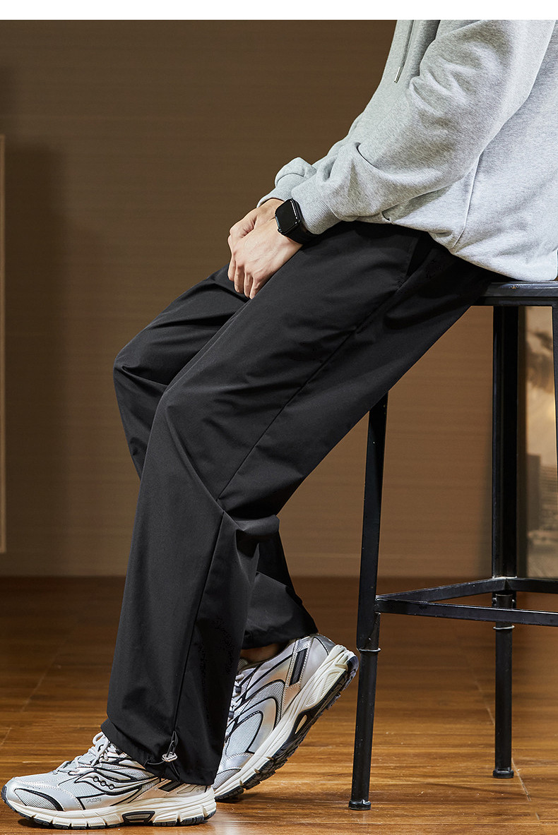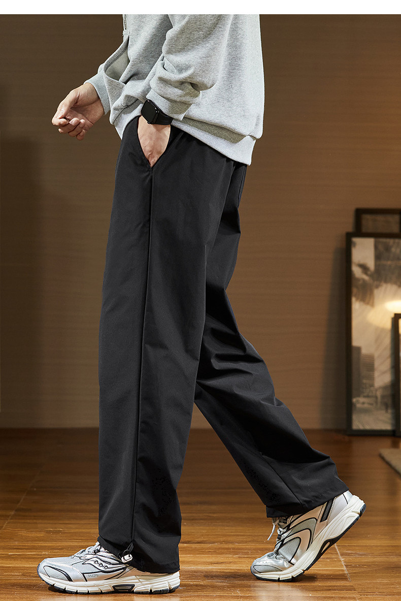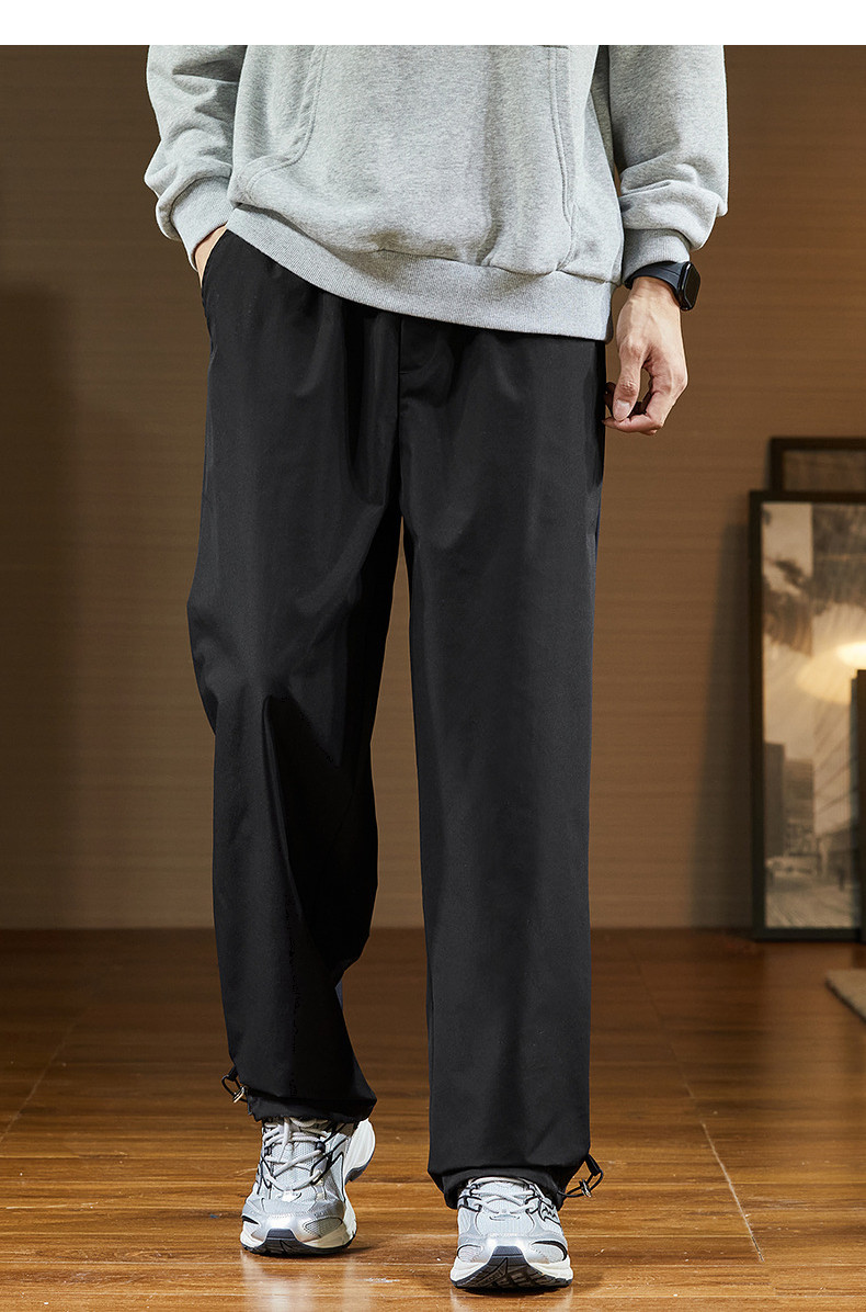 唐狮2024秋冬新款休闲裤男阔腿长裤黑色速干运动裤子韩版潮流工装