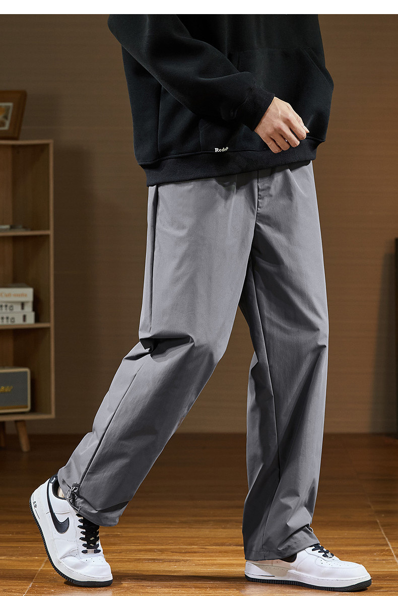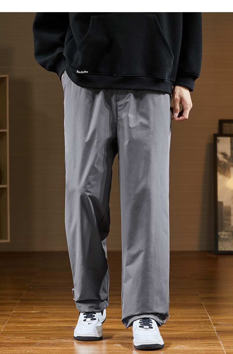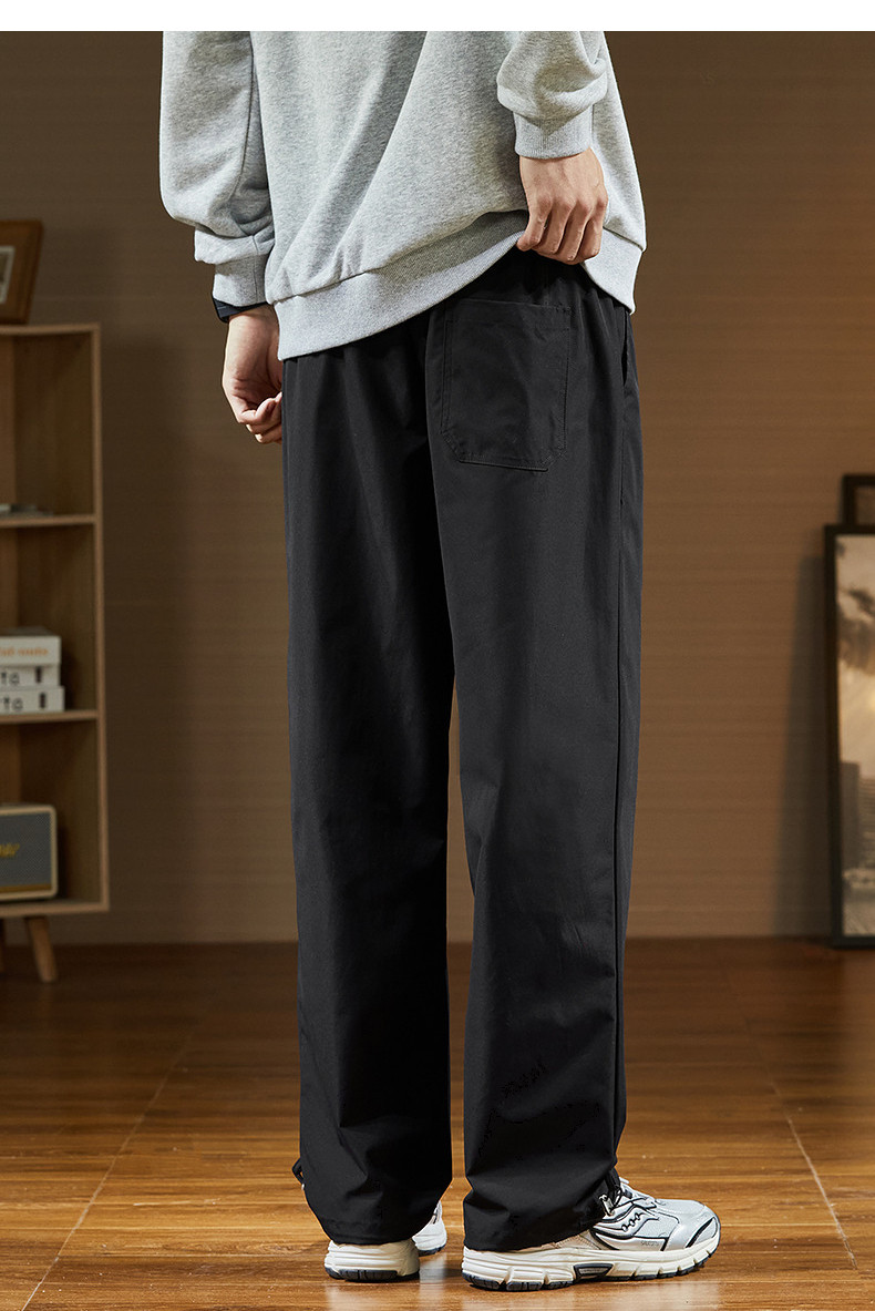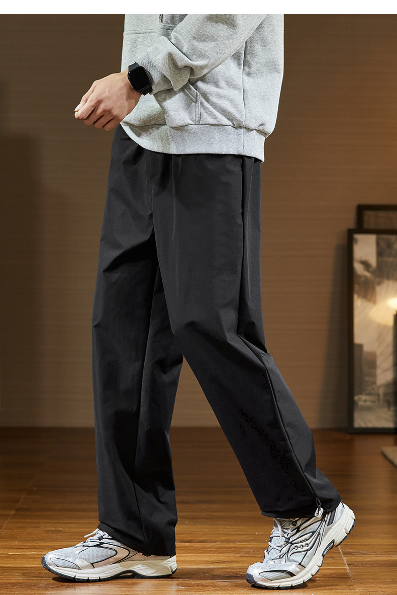 唐狮2024秋冬新款休闲裤男阔腿长裤黑色速干运动裤子韩版潮流工装