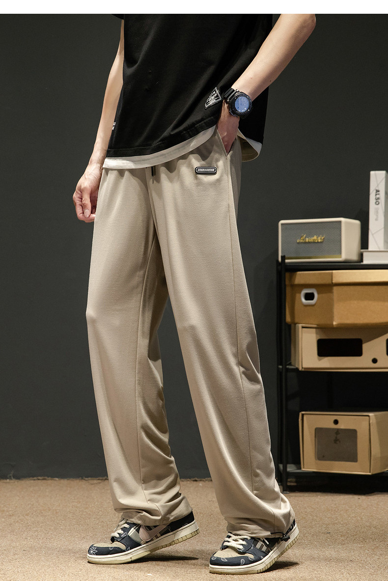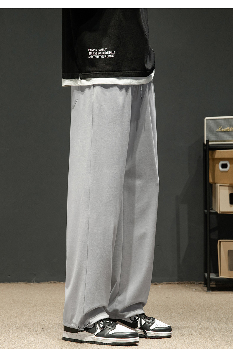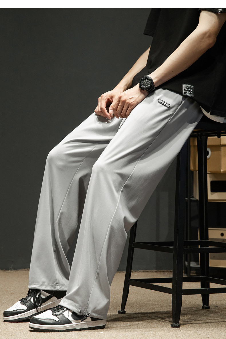 唐狮24春夏男休闲裤冰丝凉感薄款运动潮牌宽松直筒裤长裤子男阔腿