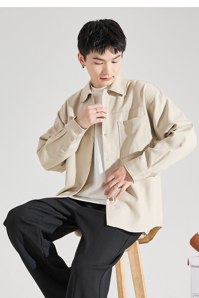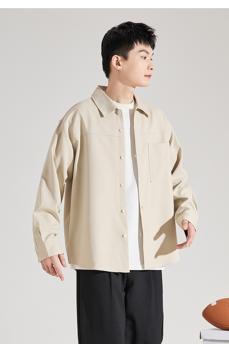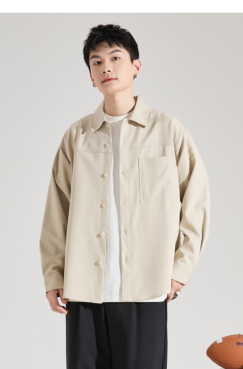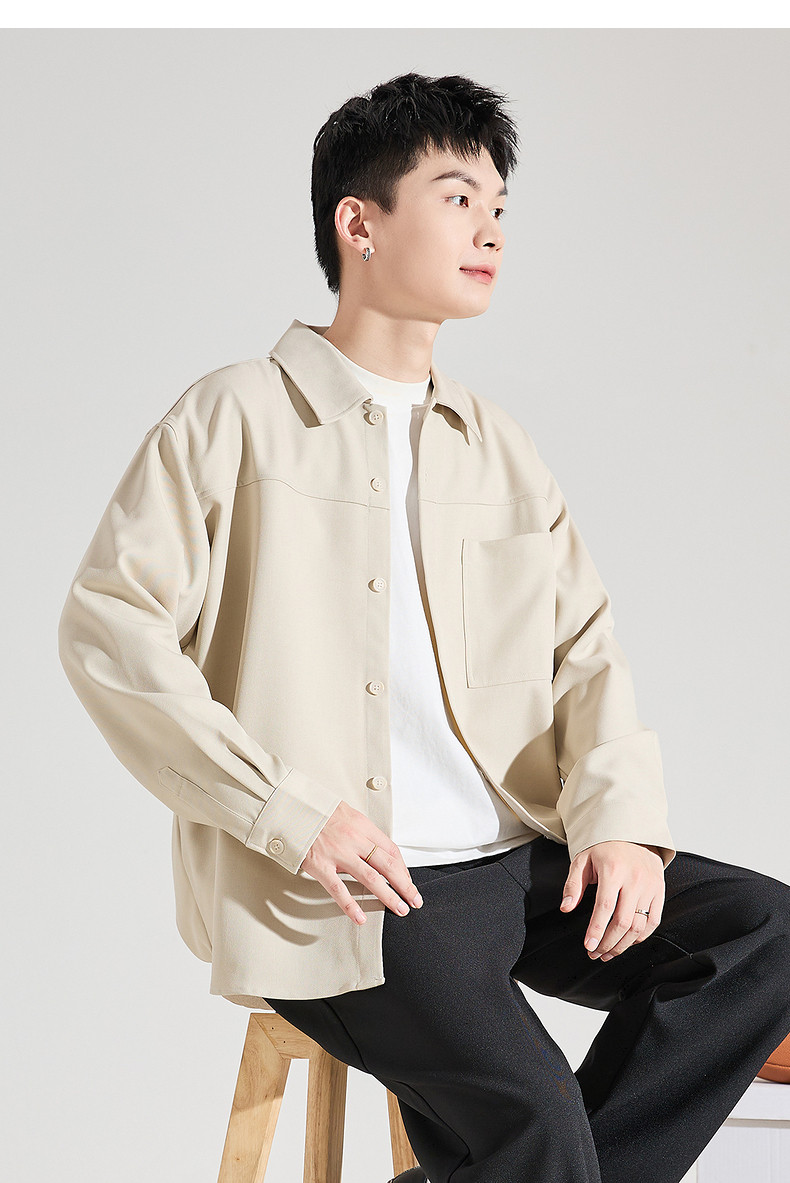 唐狮2024早秋新款男长袖衬衫男休闲舒适百搭潮流简约感长袖衬衫潮