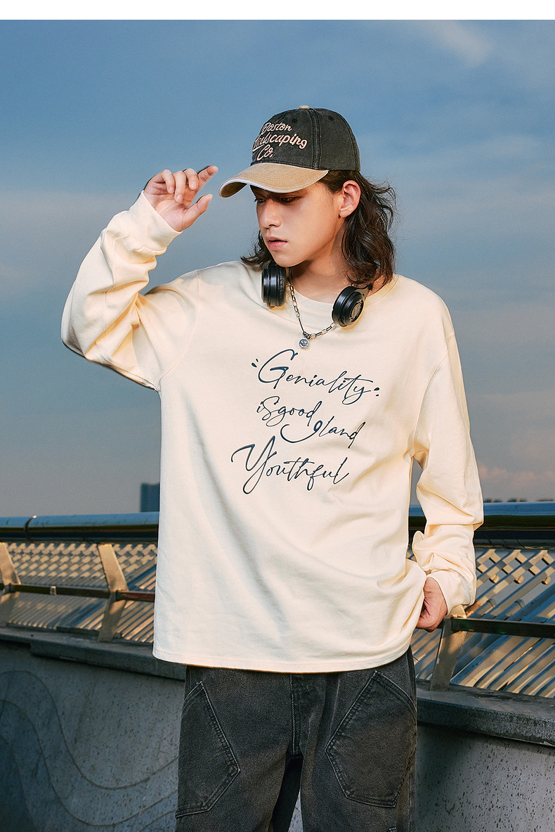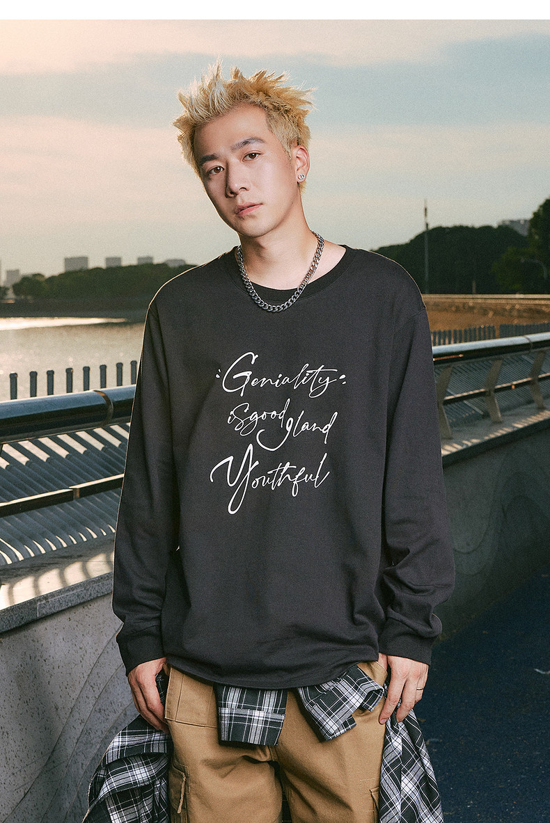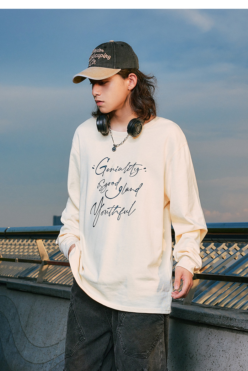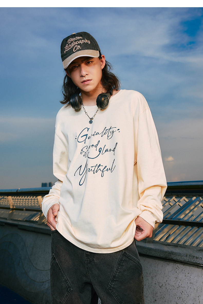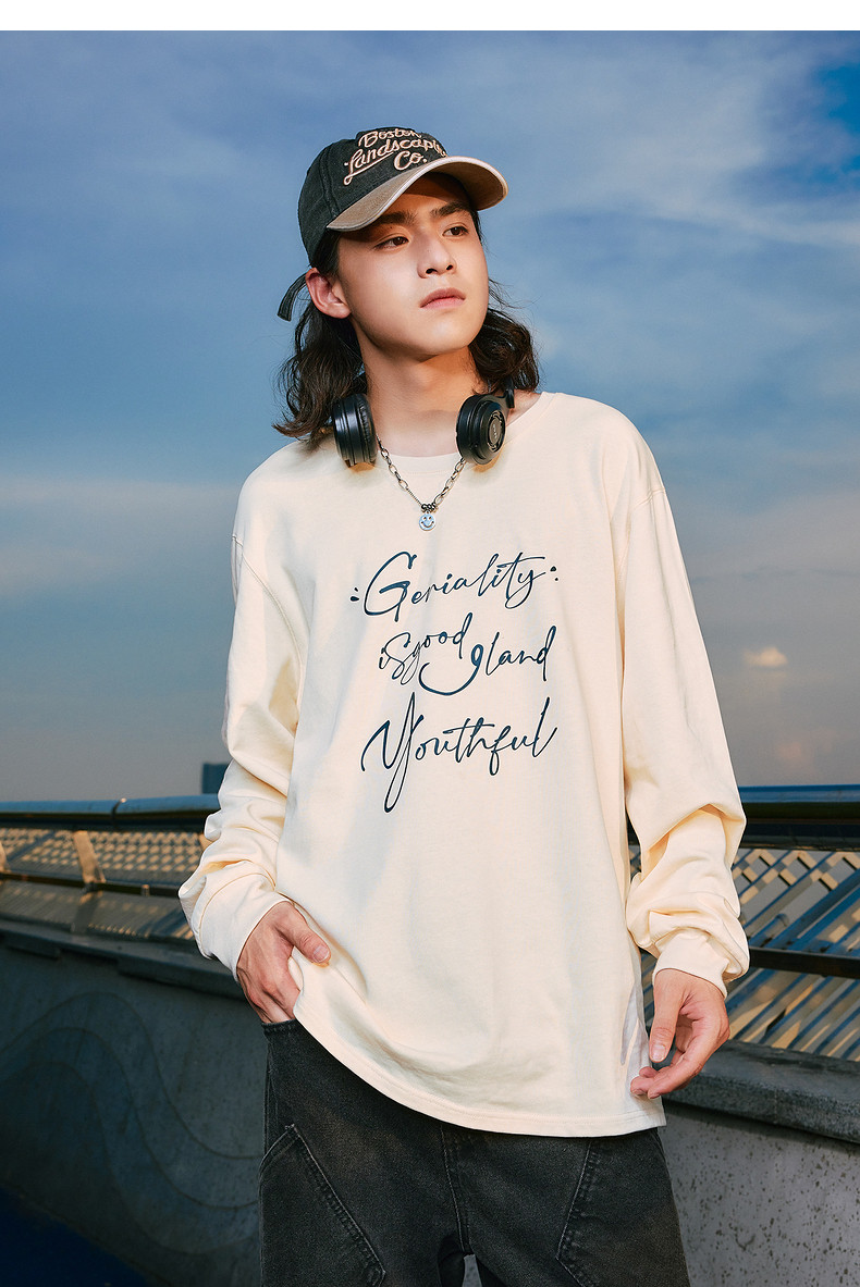 唐狮2024秋季新款长袖T恤男美式印花宽松上衣圆领内搭打底衫潮酷