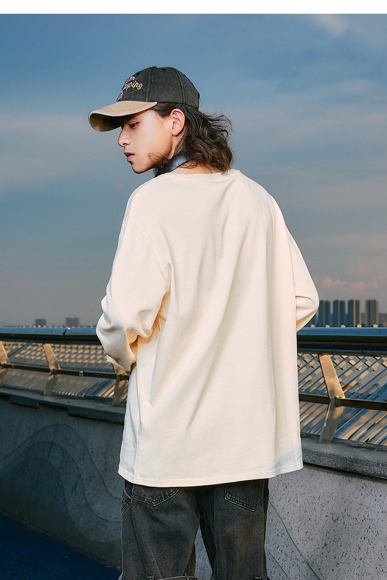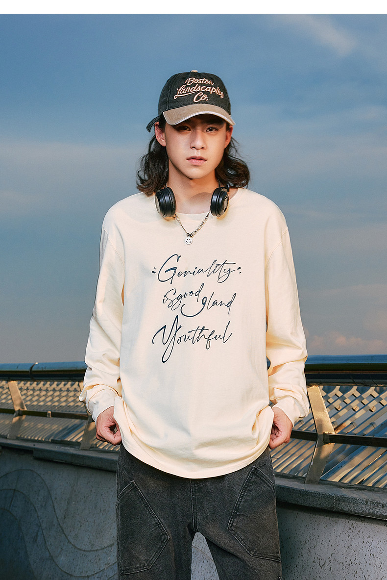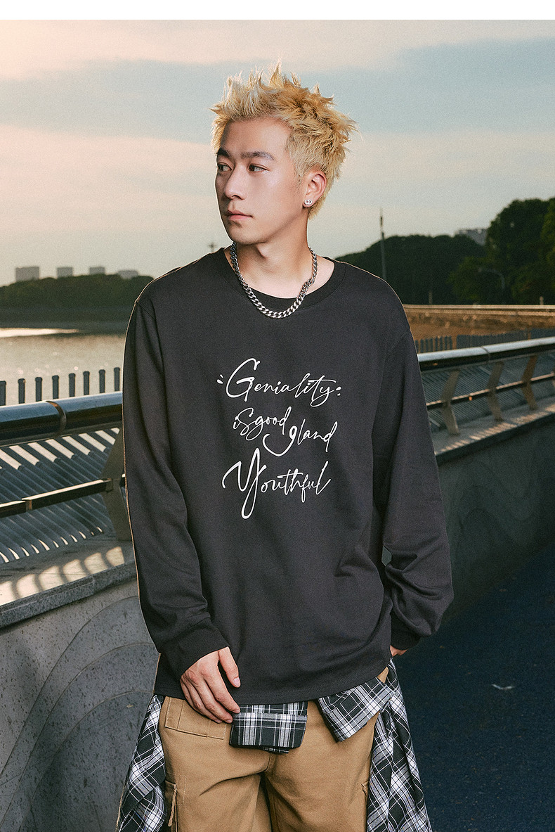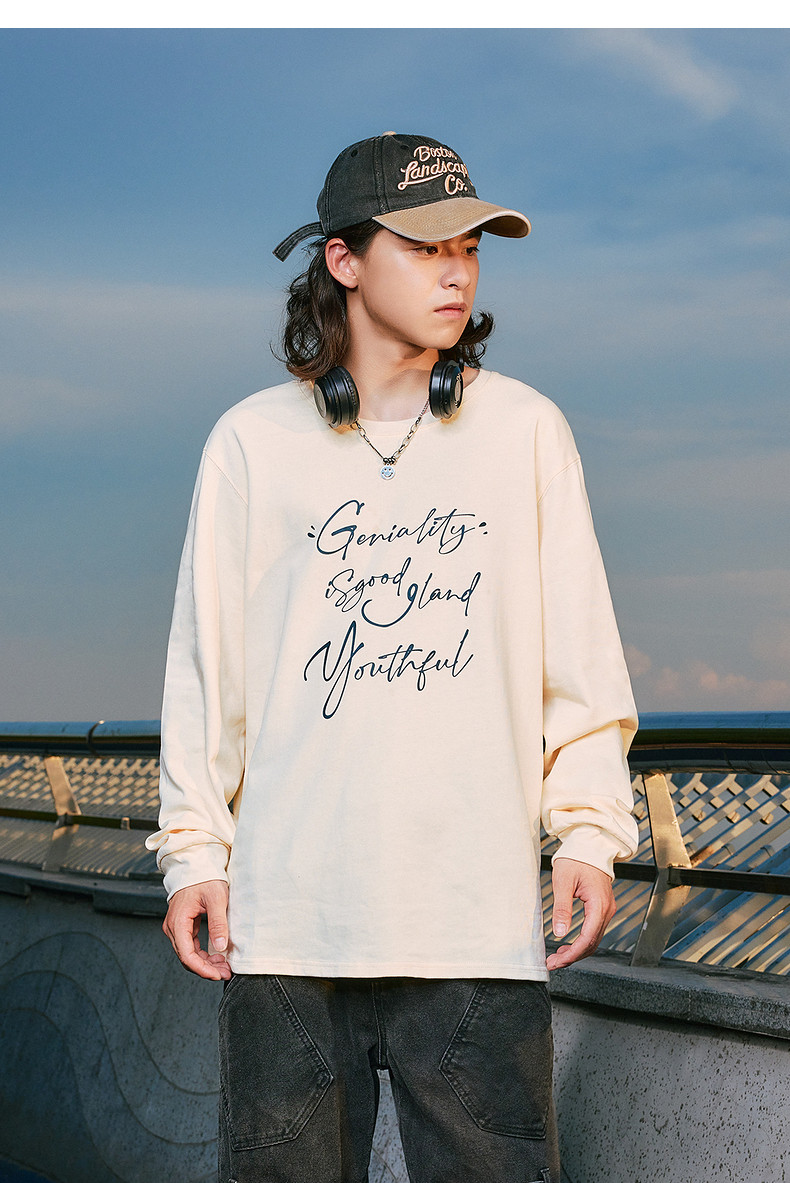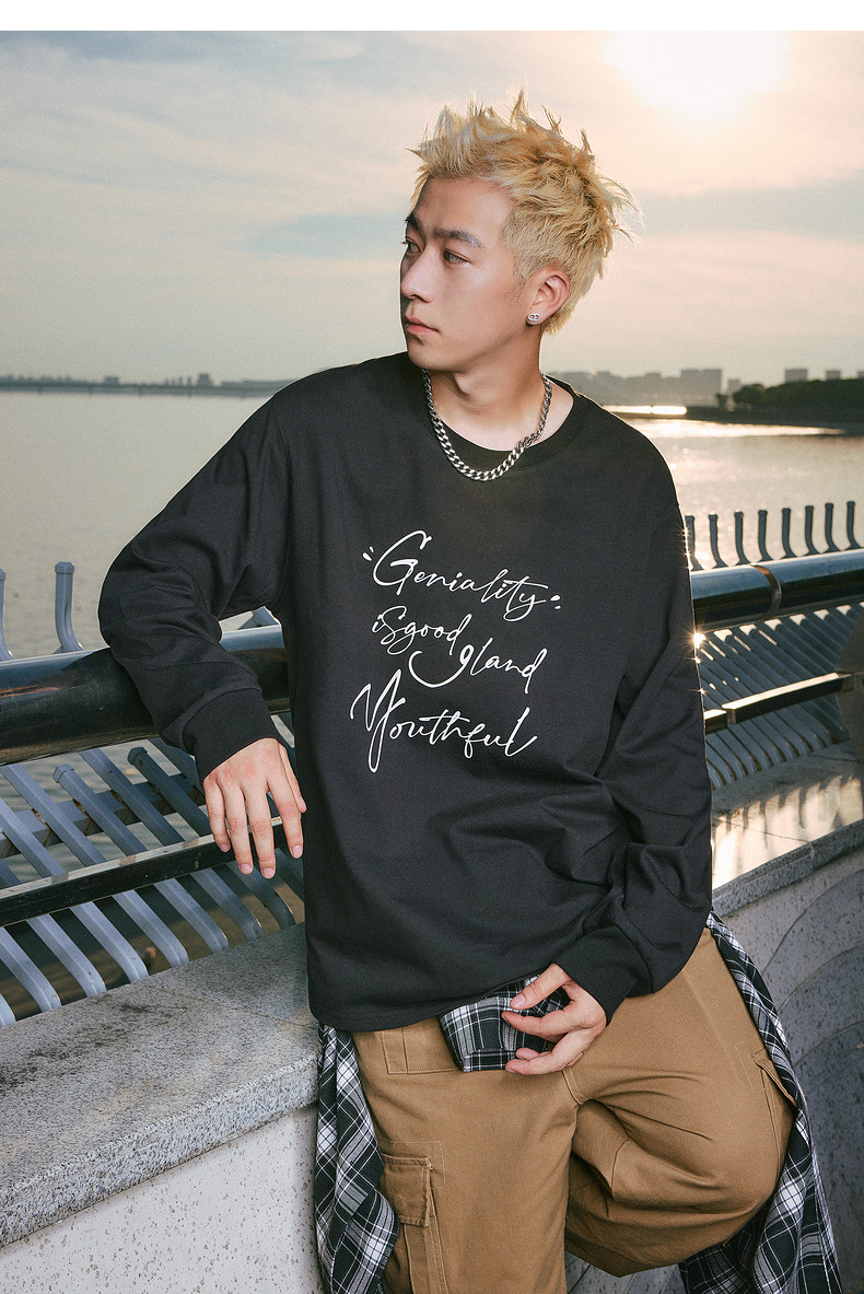 唐狮2024秋季新款长袖T恤男美式印花宽松上衣圆领内搭打底衫潮酷
