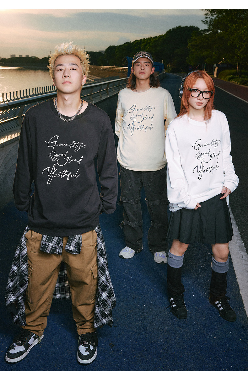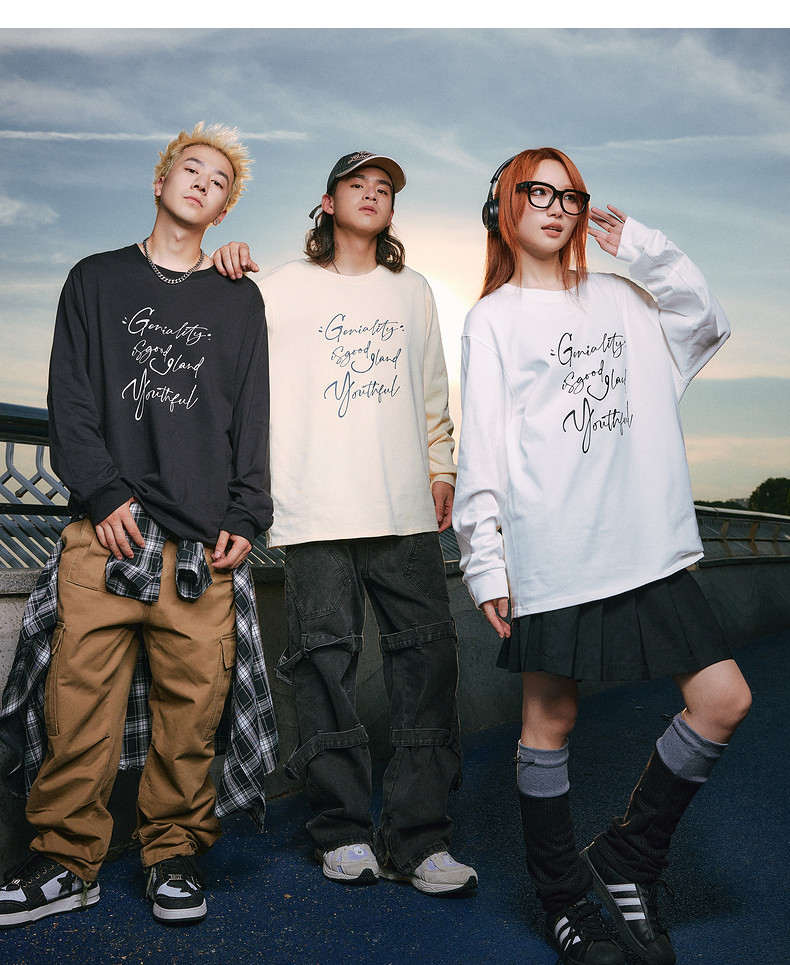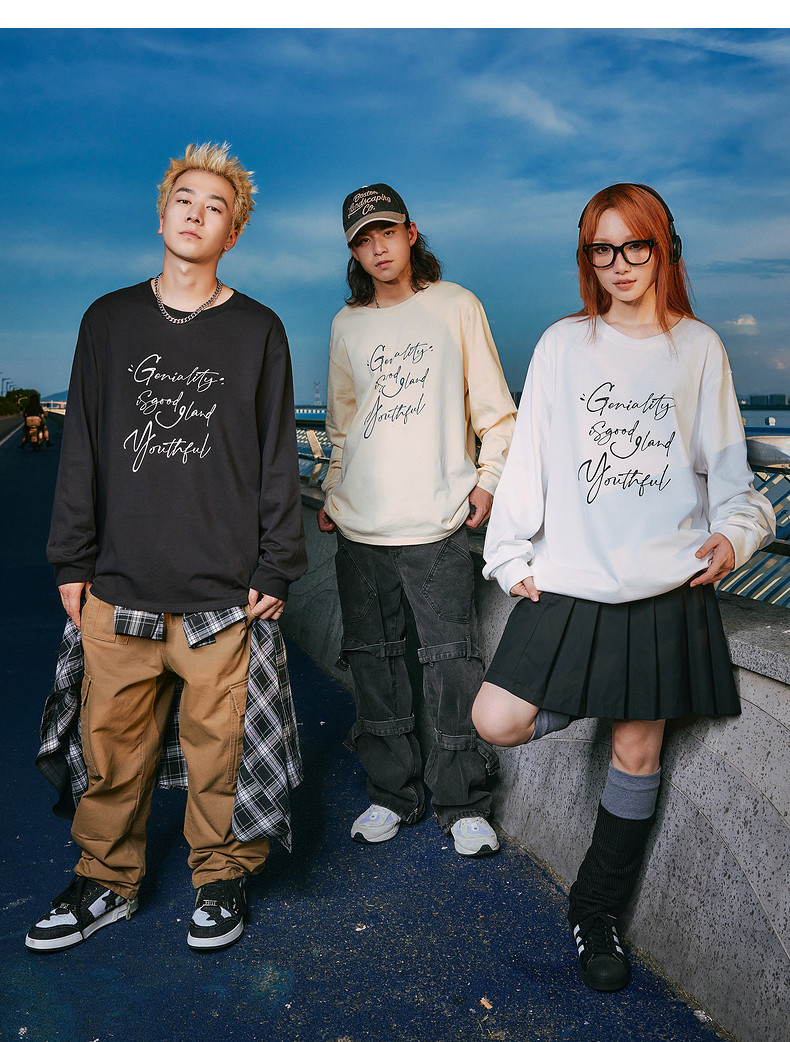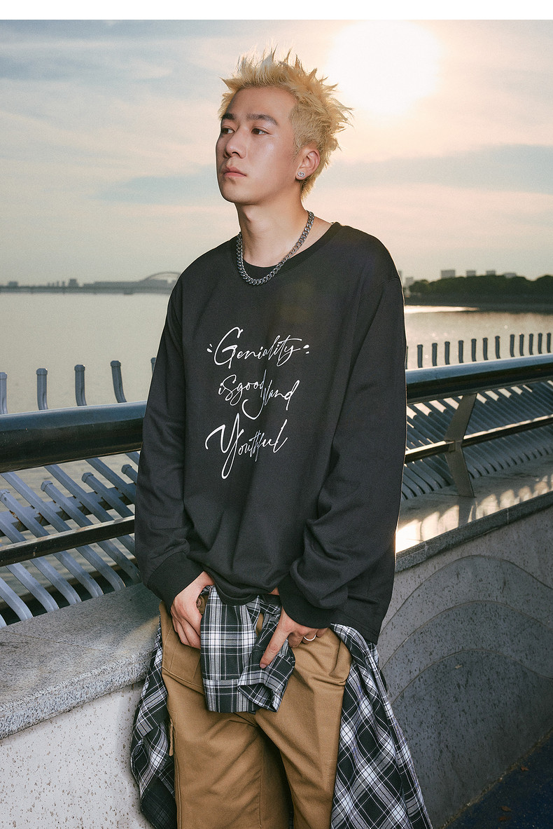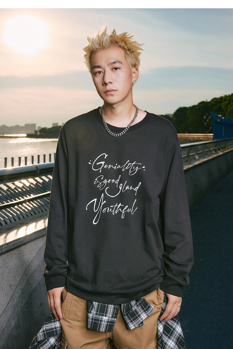 唐狮2024秋季新款长袖T恤男美式印花宽松上衣圆领内搭打底衫潮酷