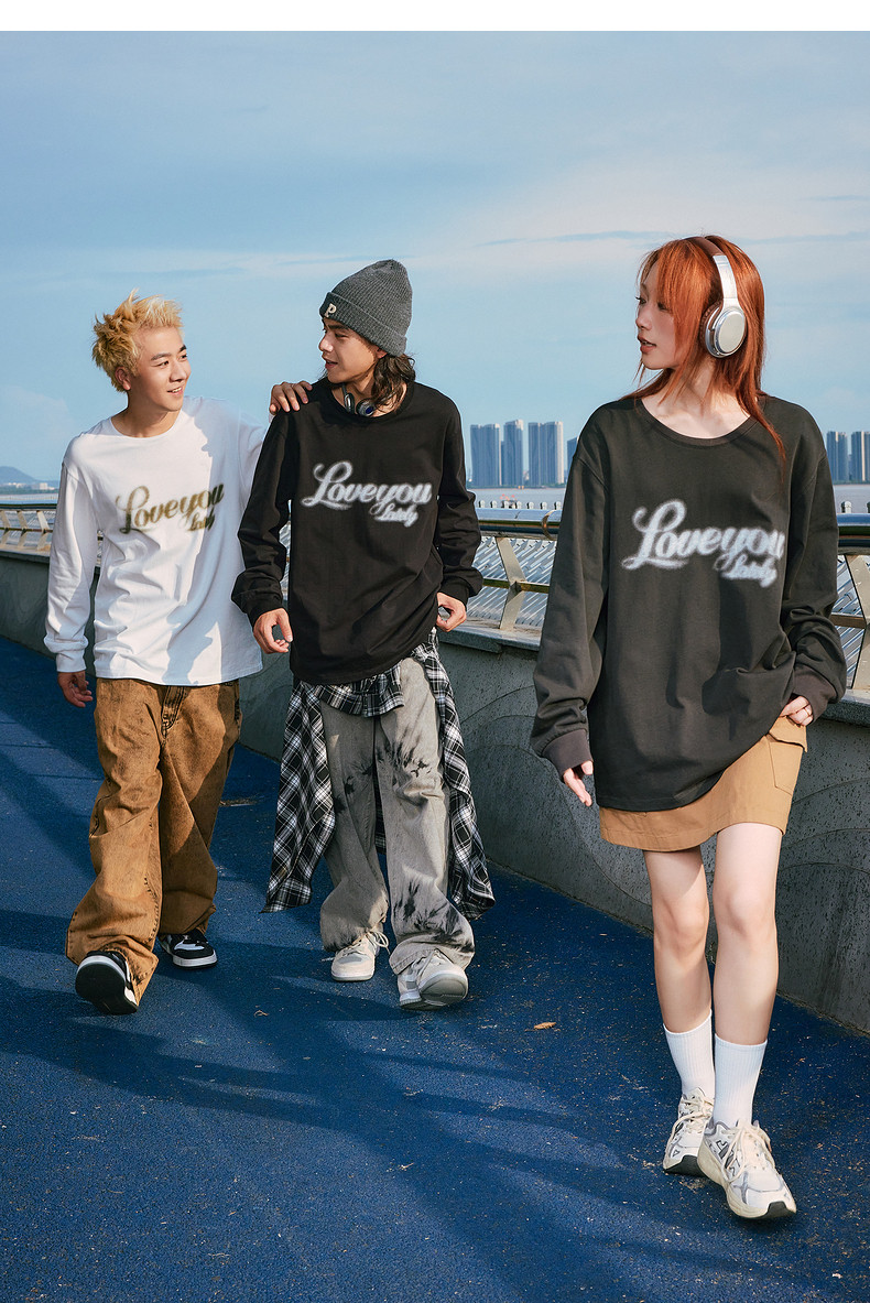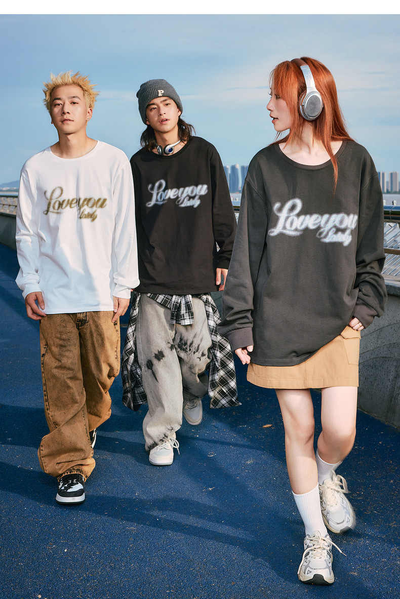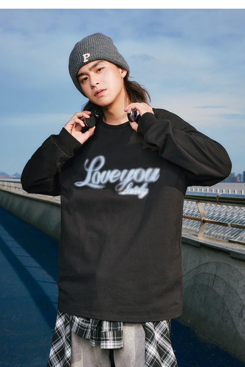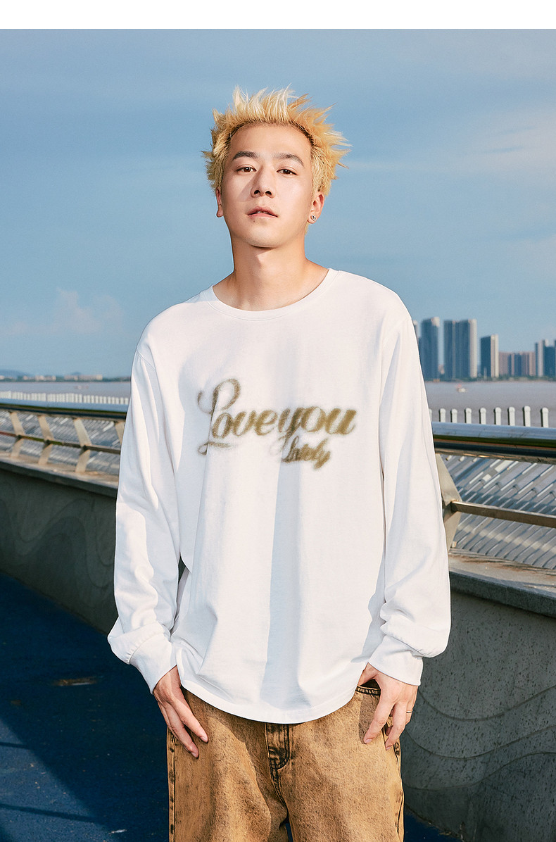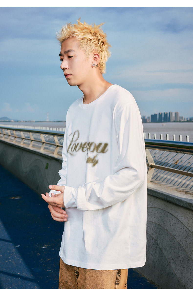 唐狮2024秋季新款长袖T恤男美式印花上衣宽松潮上衣圆领内搭打底