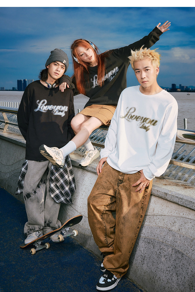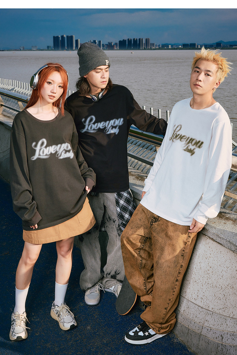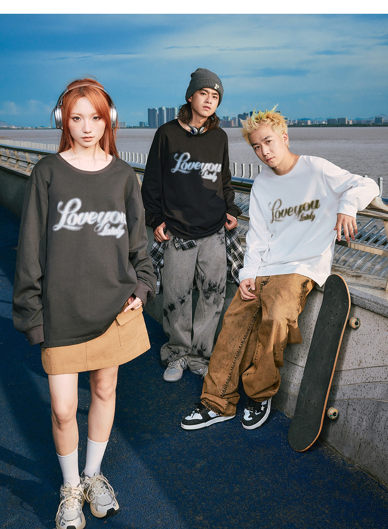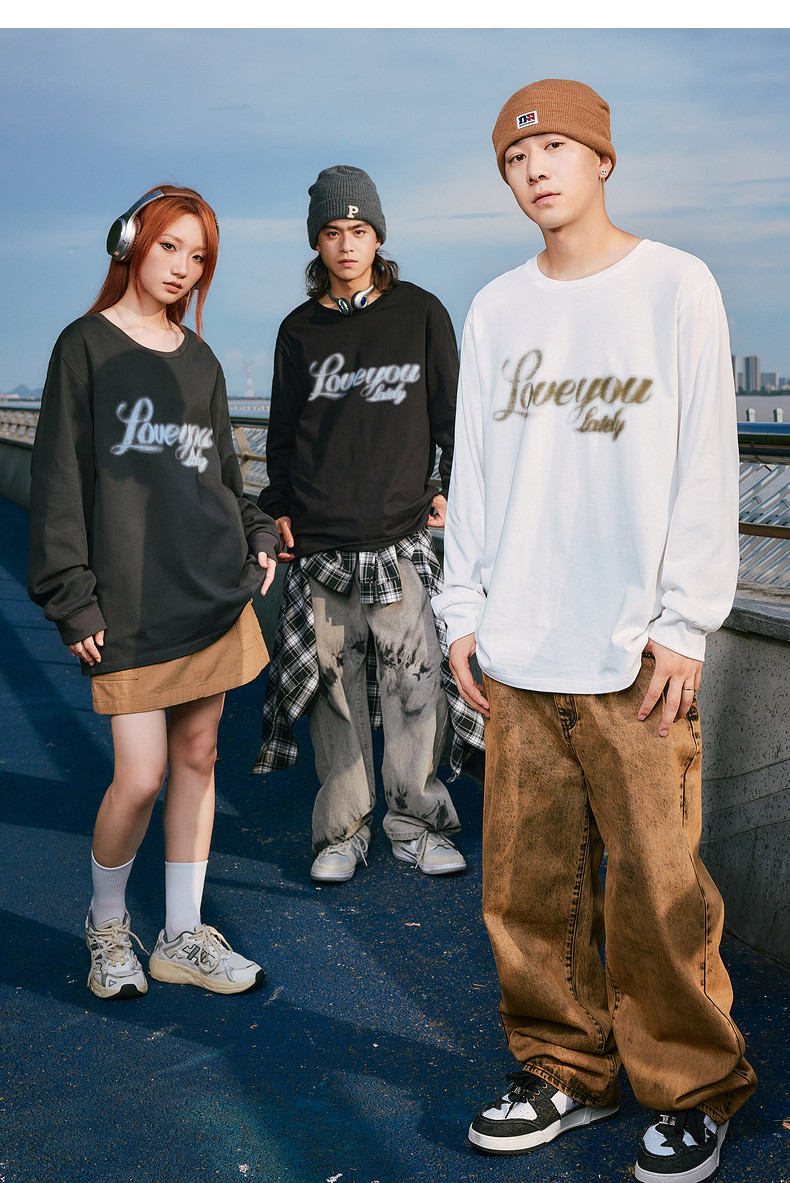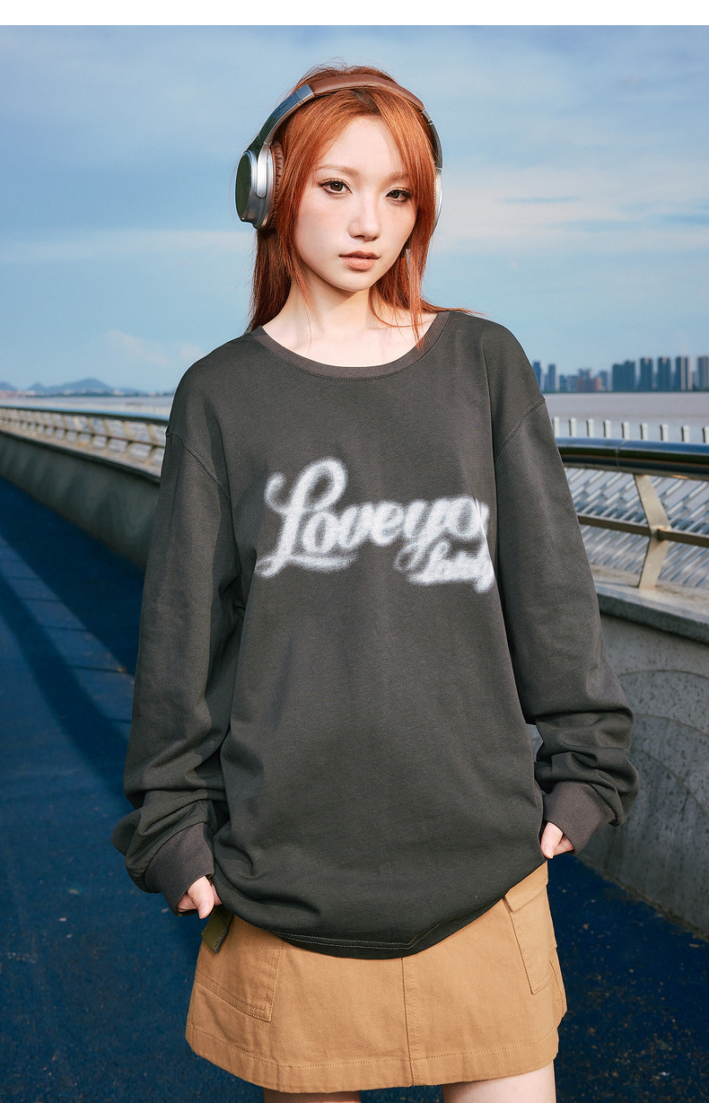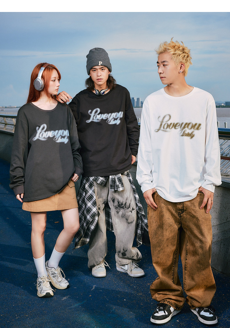 唐狮2024秋季新款长袖T恤男美式印花上衣宽松潮上衣圆领内搭打底
