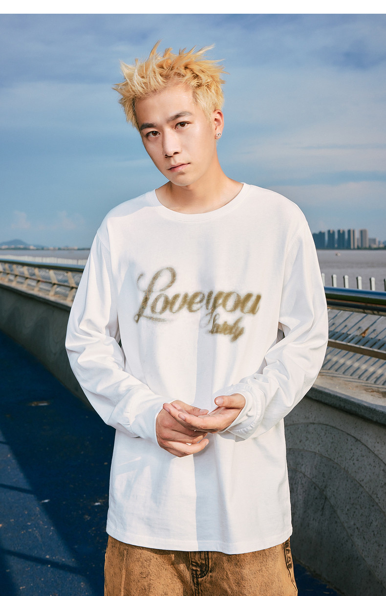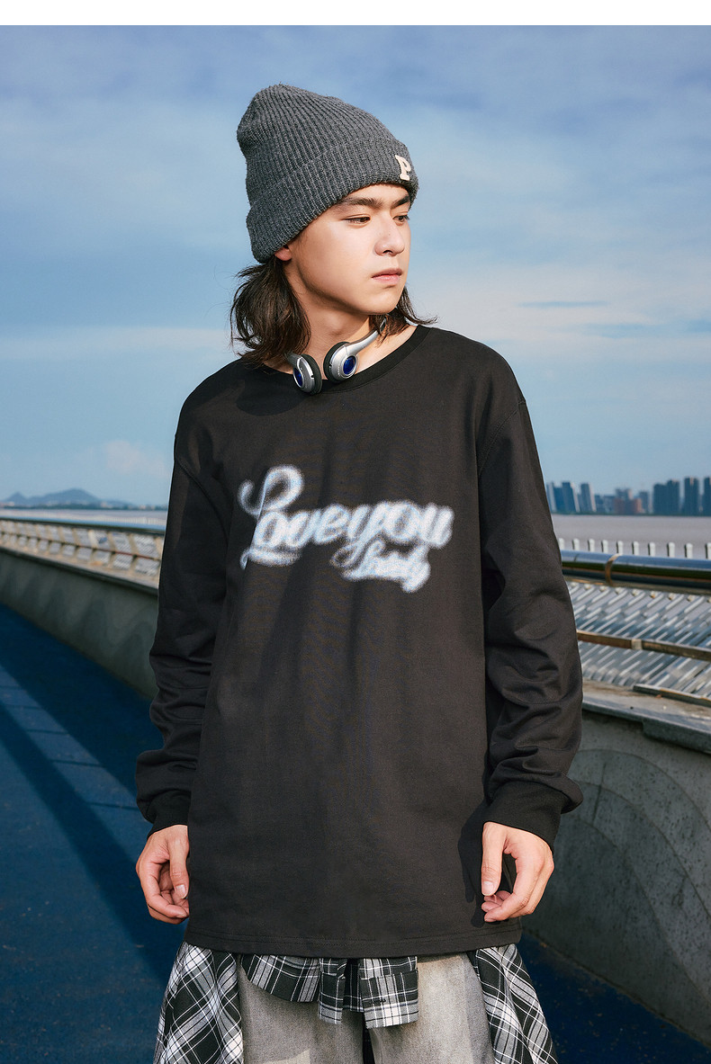 唐狮2024秋季新款长袖T恤男印花简约圆领上衣宽松美式潮内搭打底t