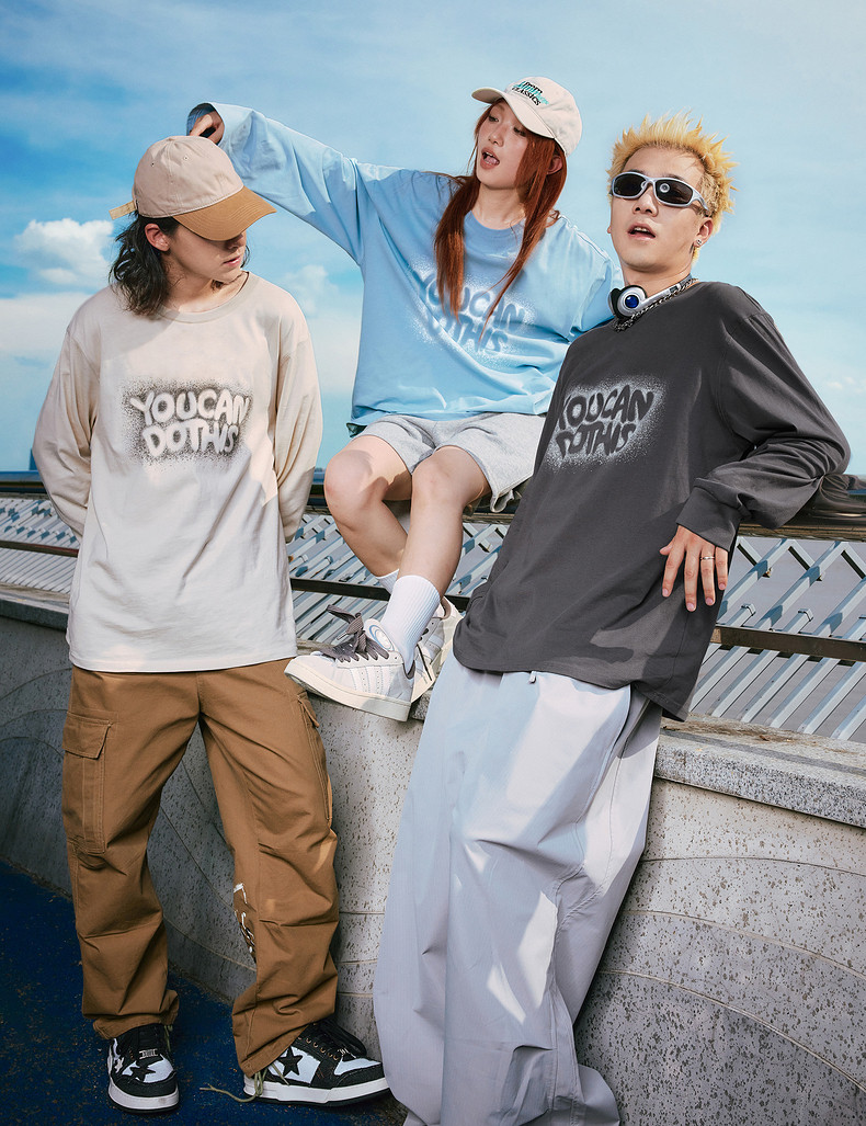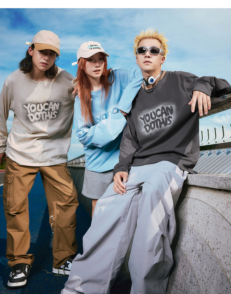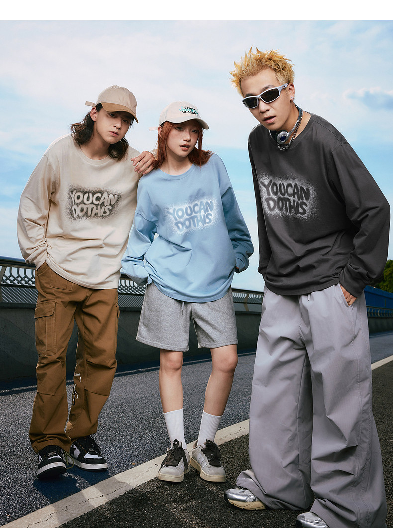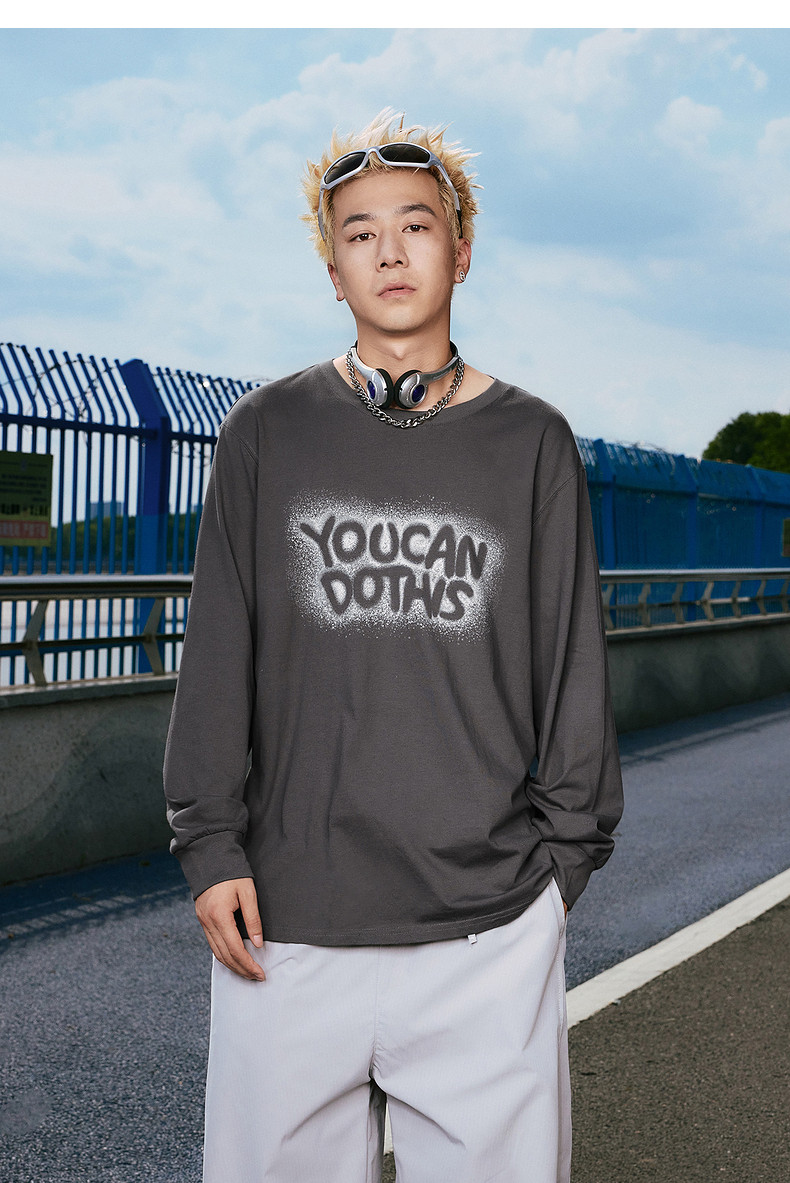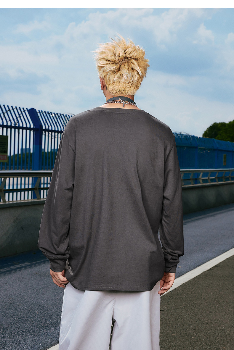 唐狮2024新款男前胸大图案印花圆领男前胸大图案印花圆领长袖T恤