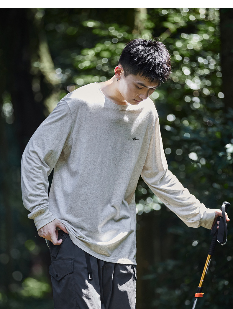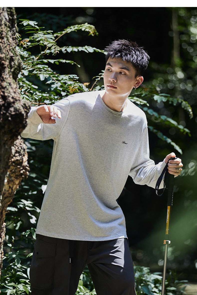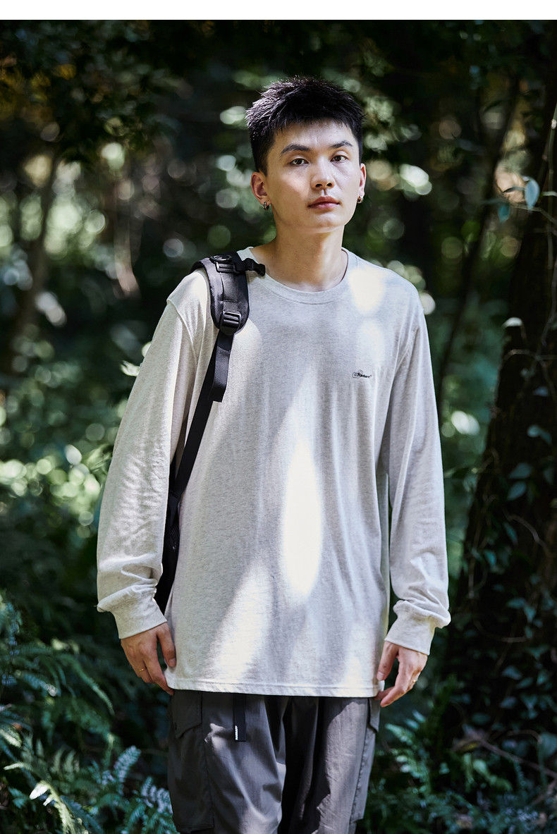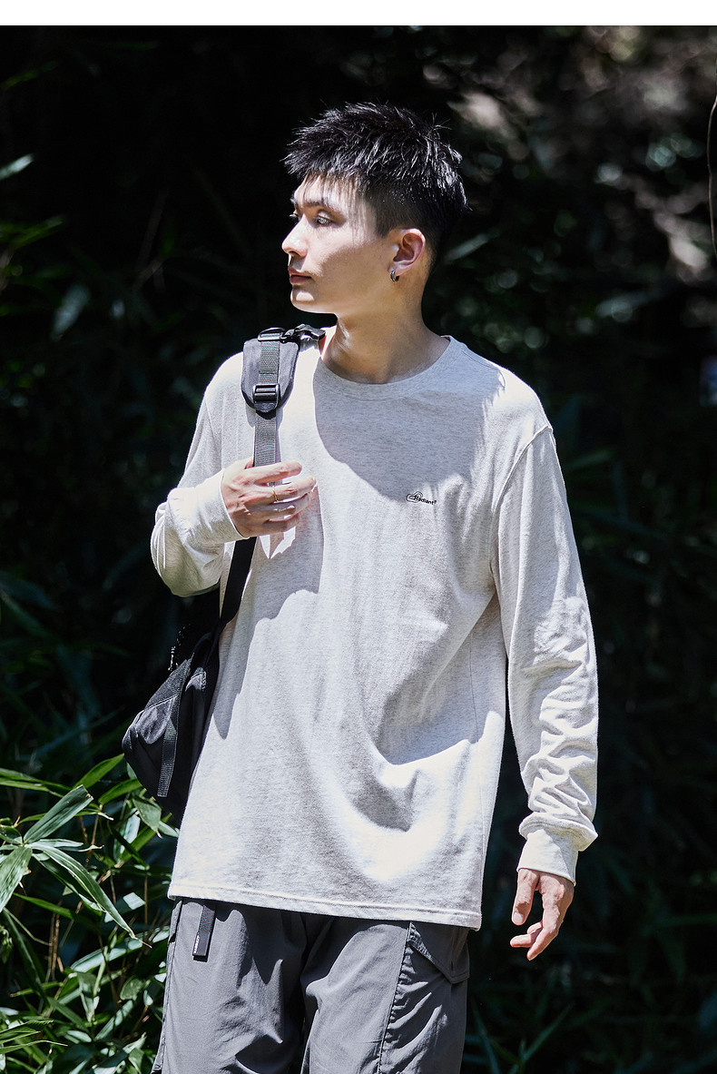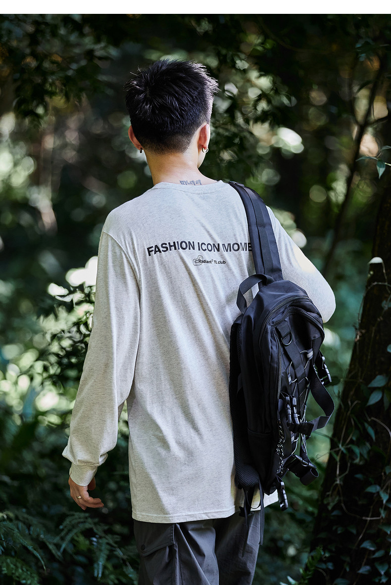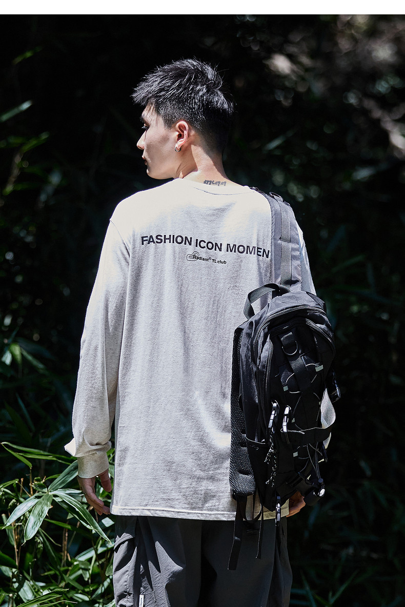 唐狮2024秋季新款男长袖t恤后背字母印花圆领上衣宽松内搭打底潮t