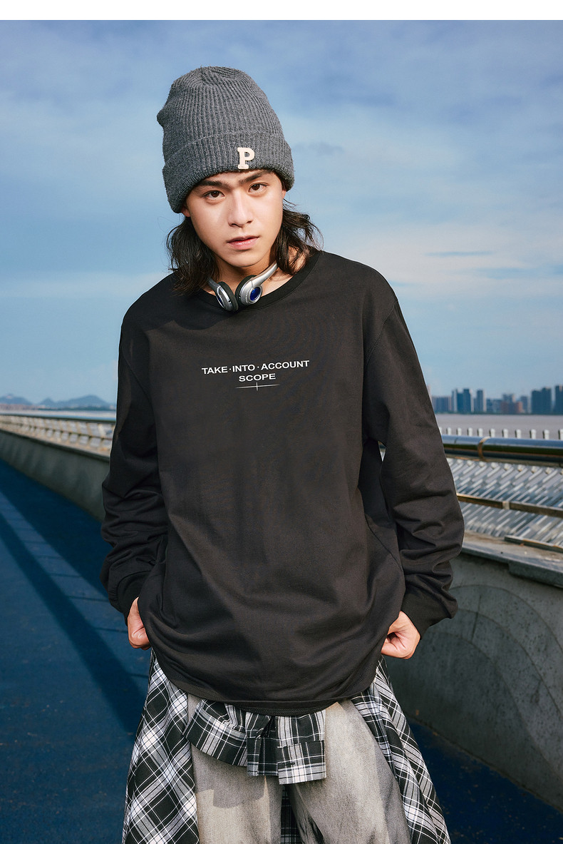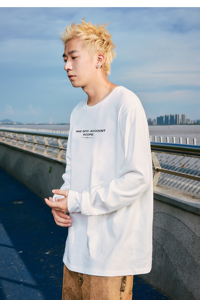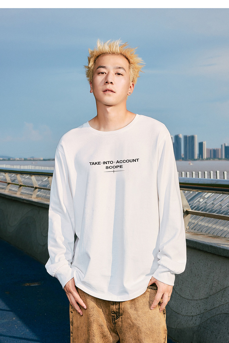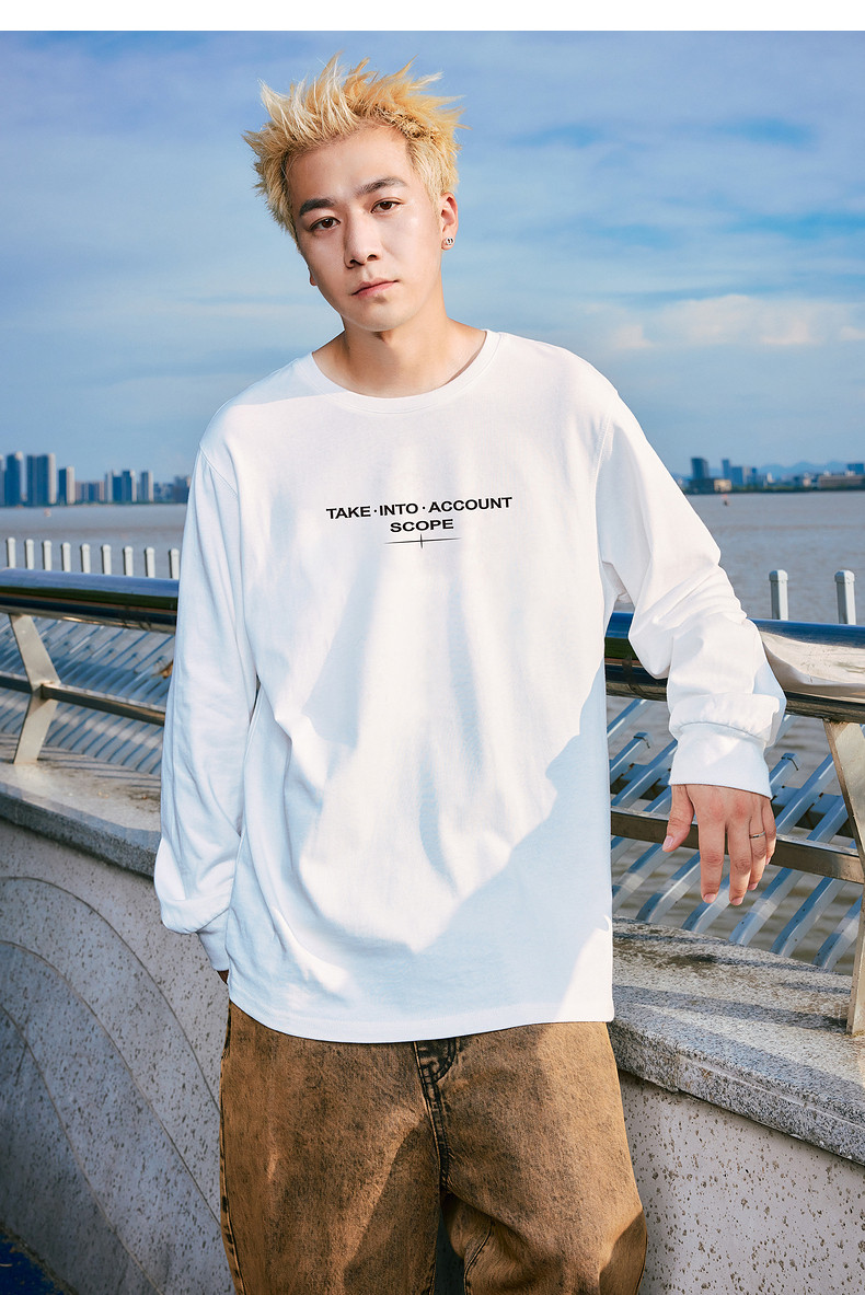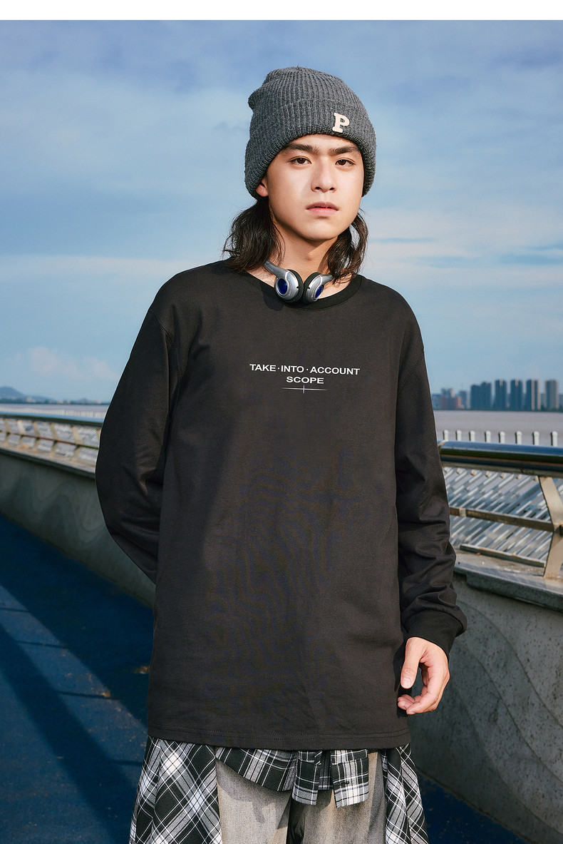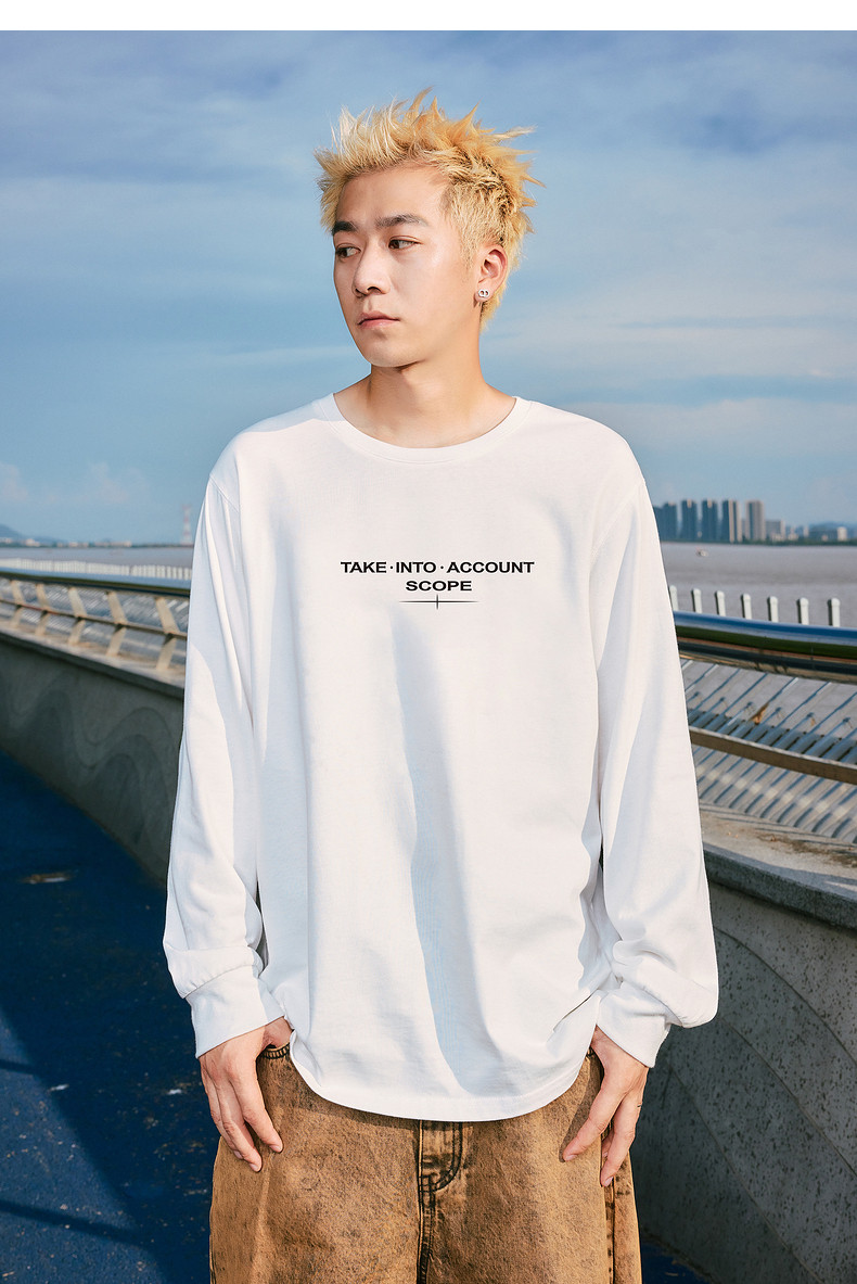 唐狮2024秋季新款长袖T恤男字母印花宽松圆领上衣简约内搭打底潮t