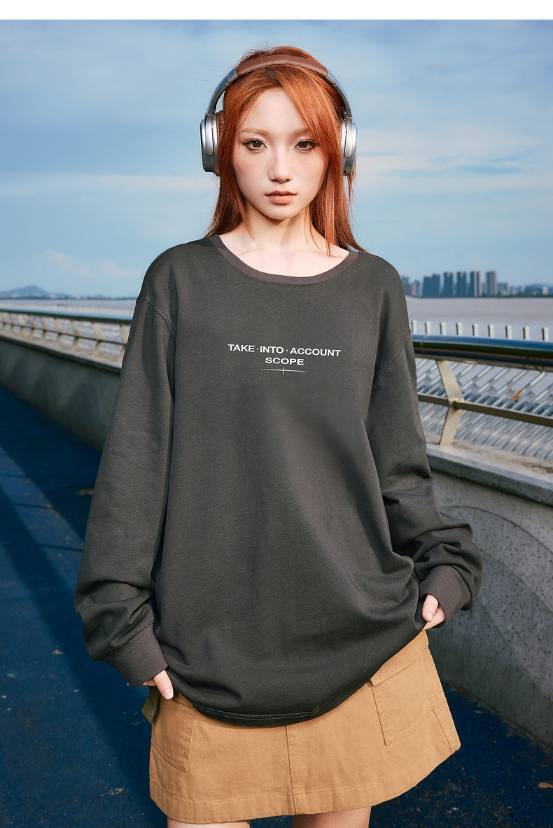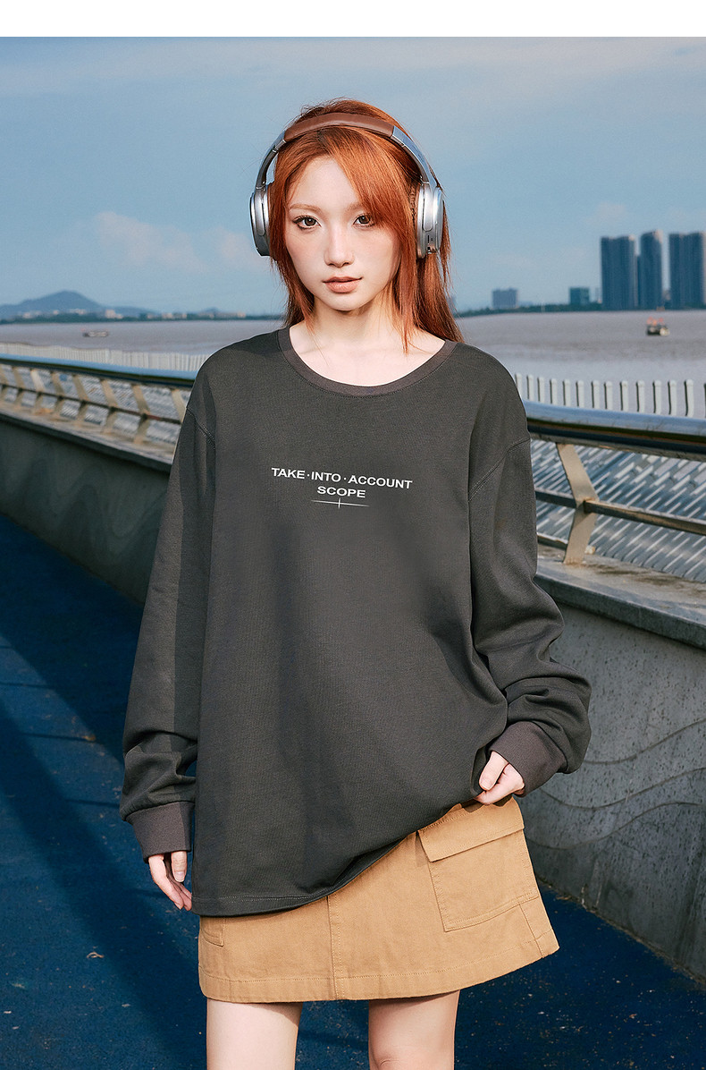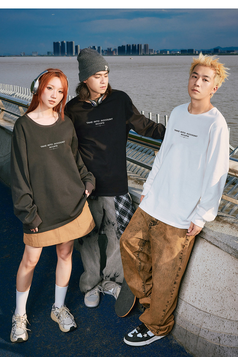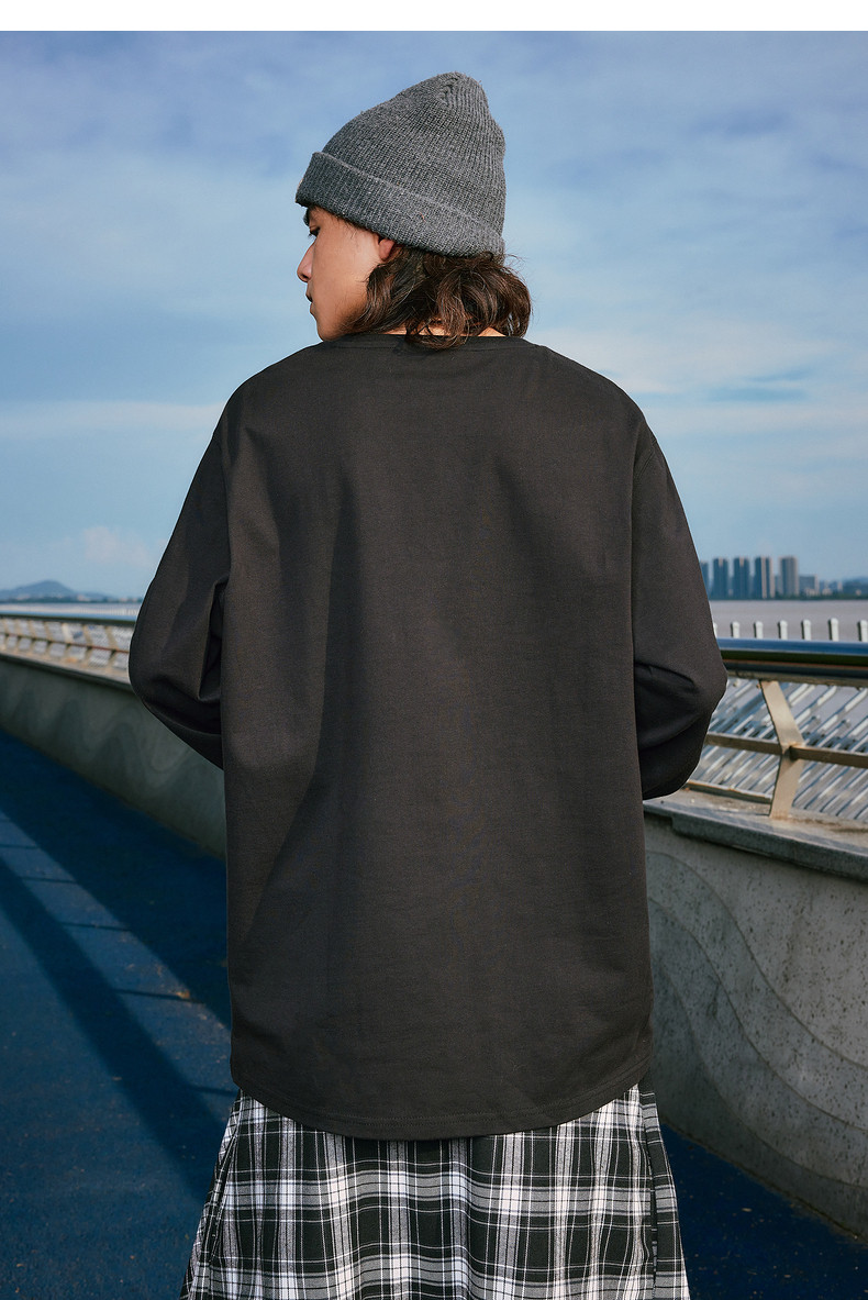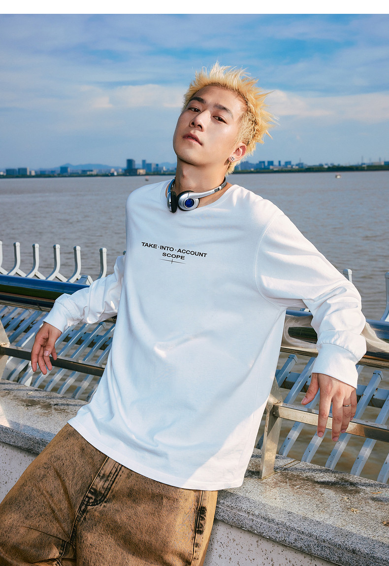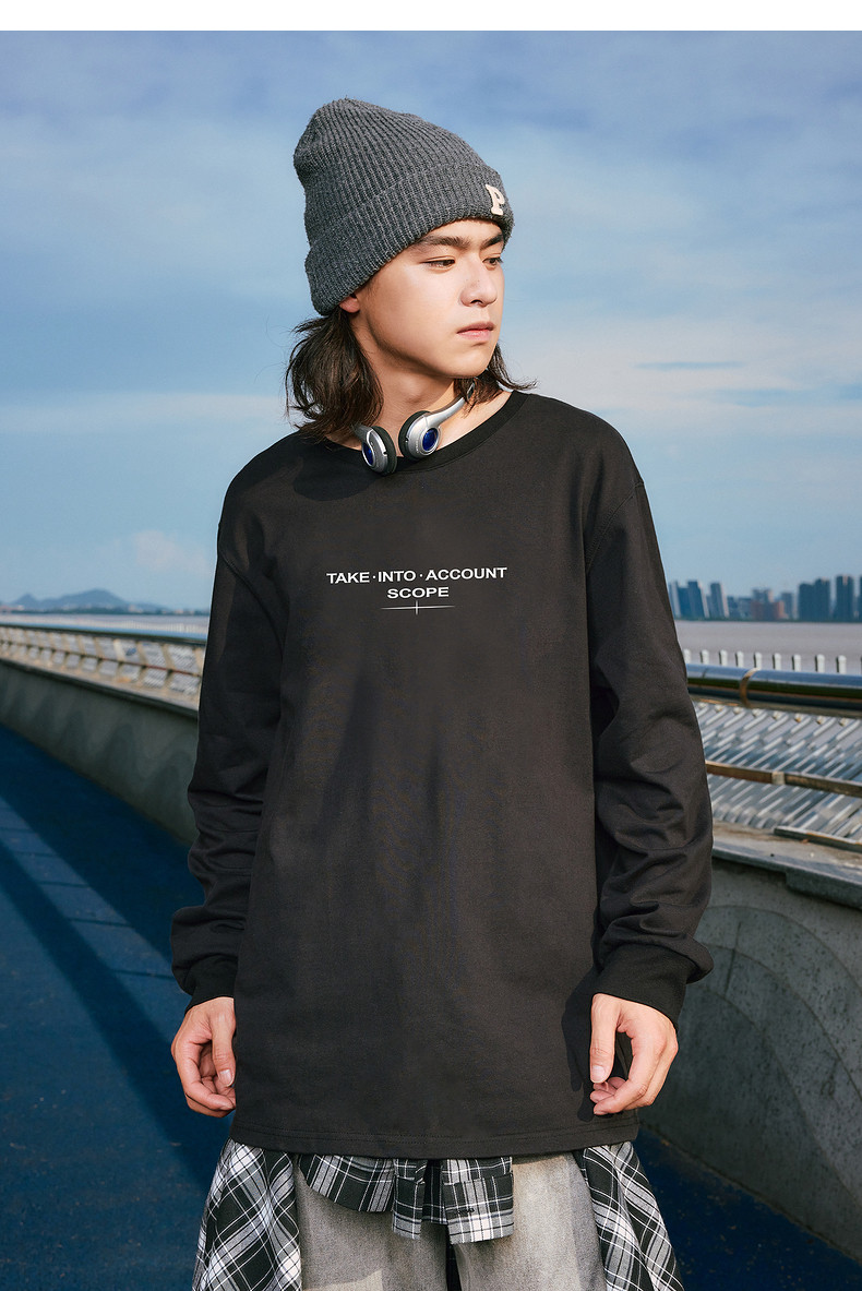 唐狮2024秋季新款长袖T恤男字母印花宽松圆领上衣简约内搭打底潮t