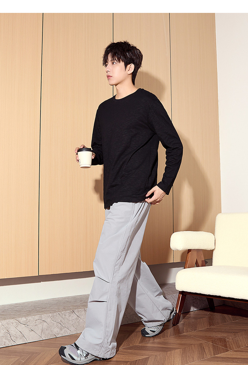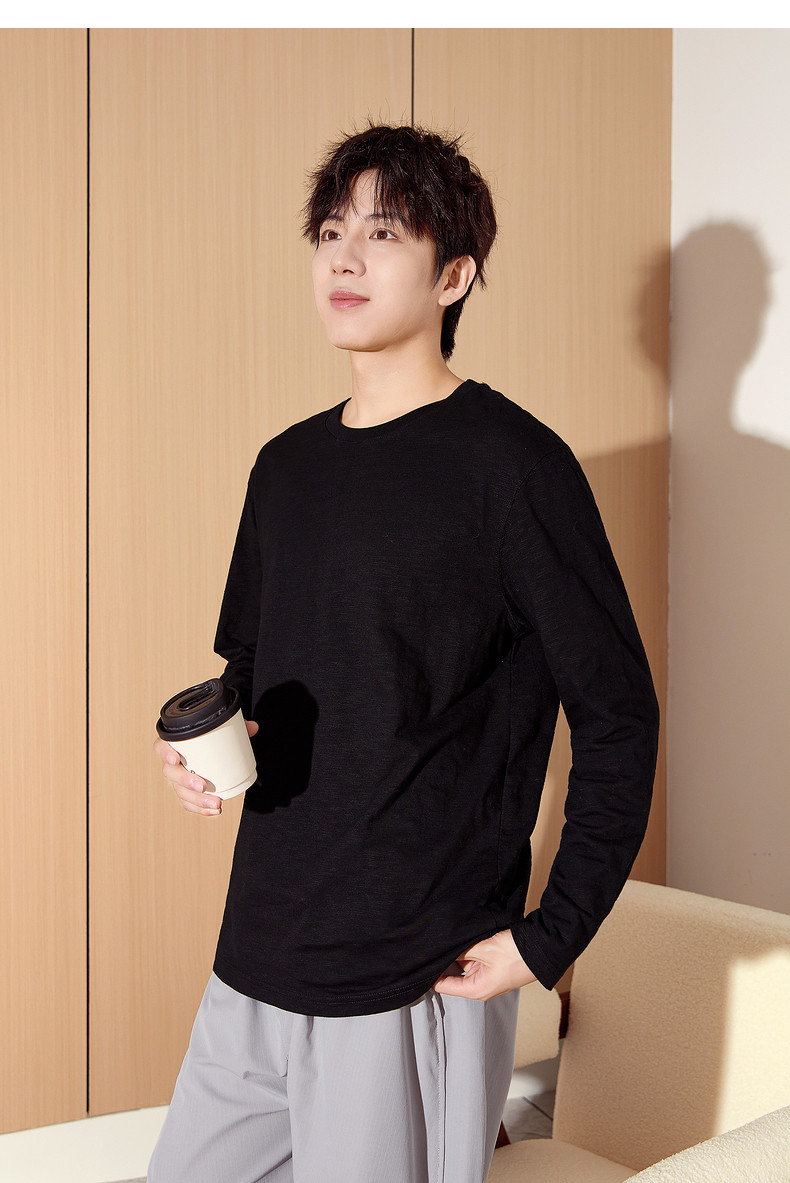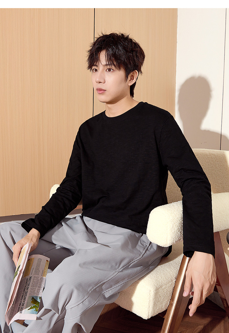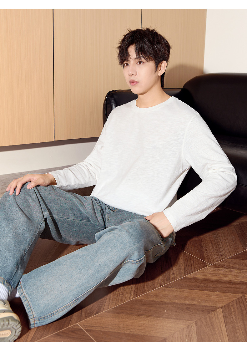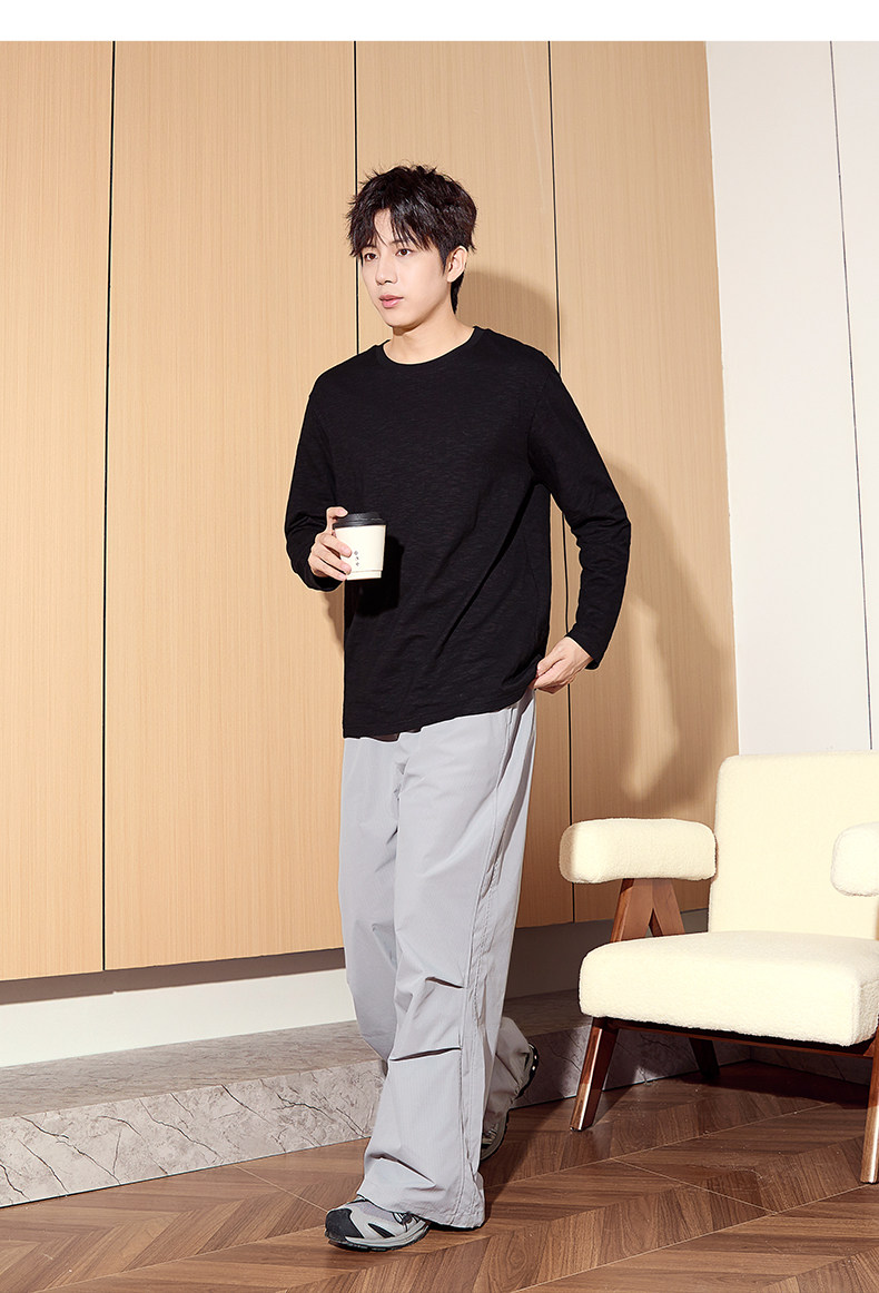 唐狮2024秋季新款长袖T恤男款男肌理感竹节棉纯棉长袖T恤潮流