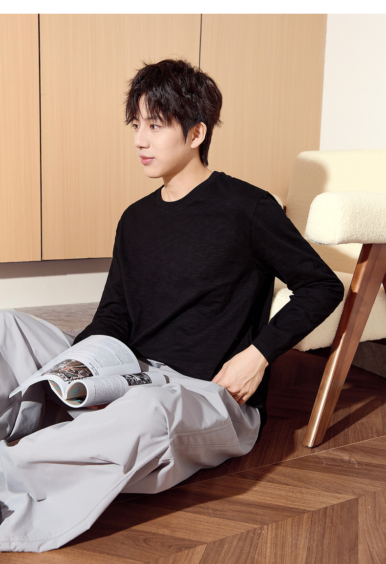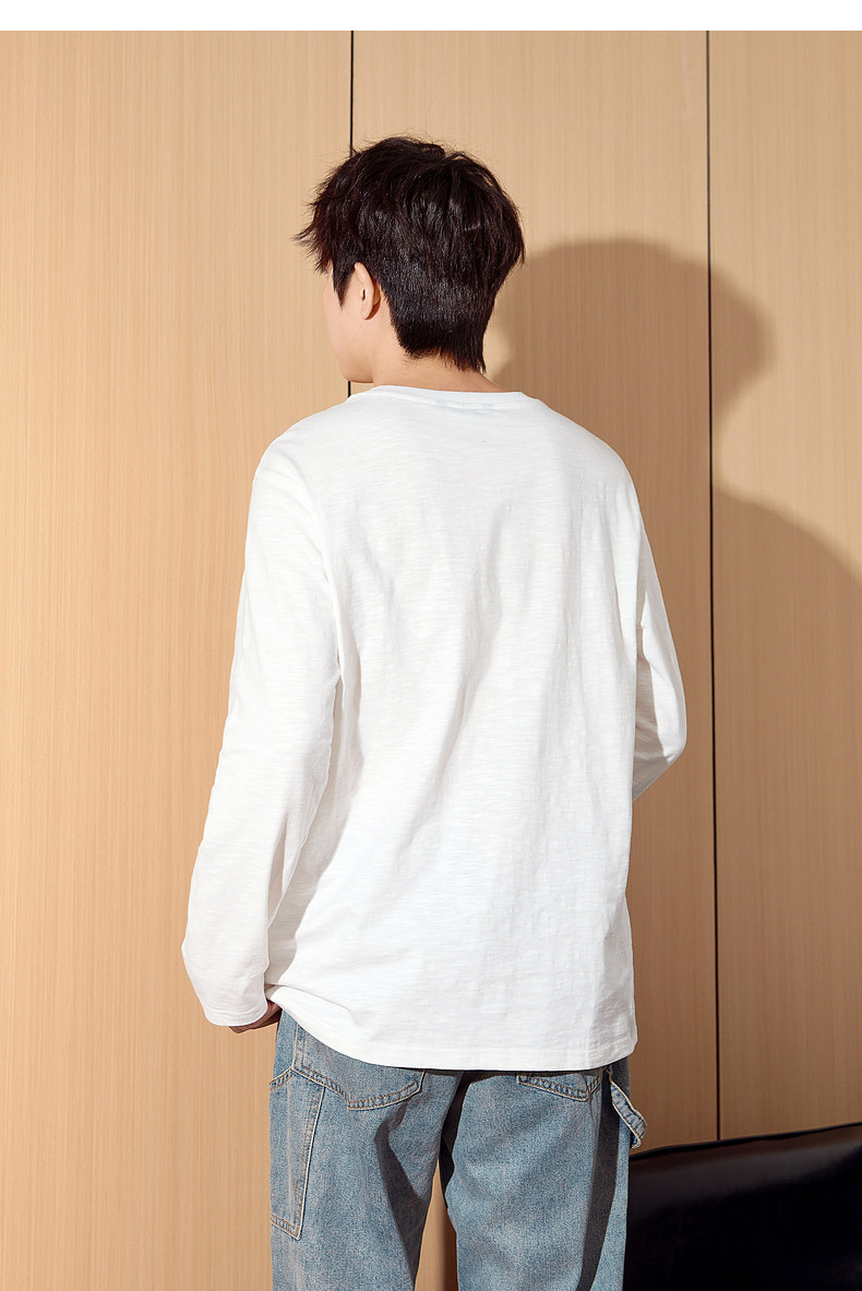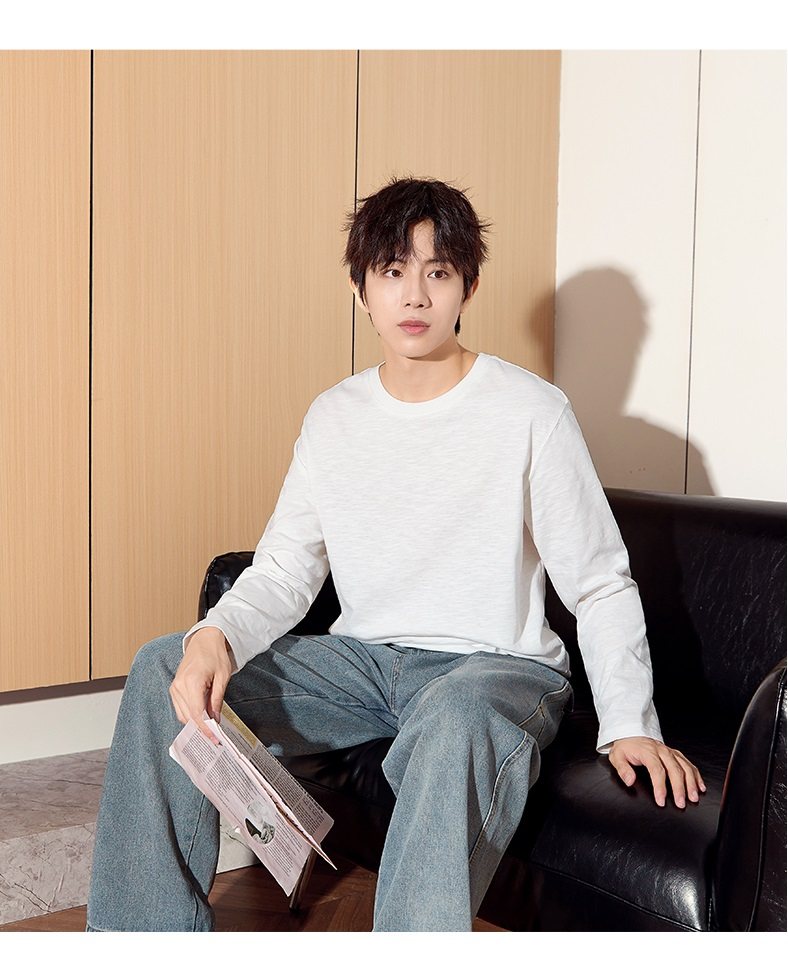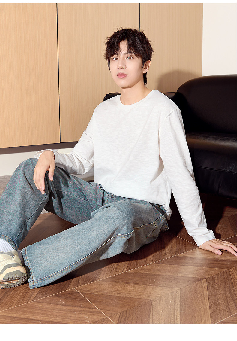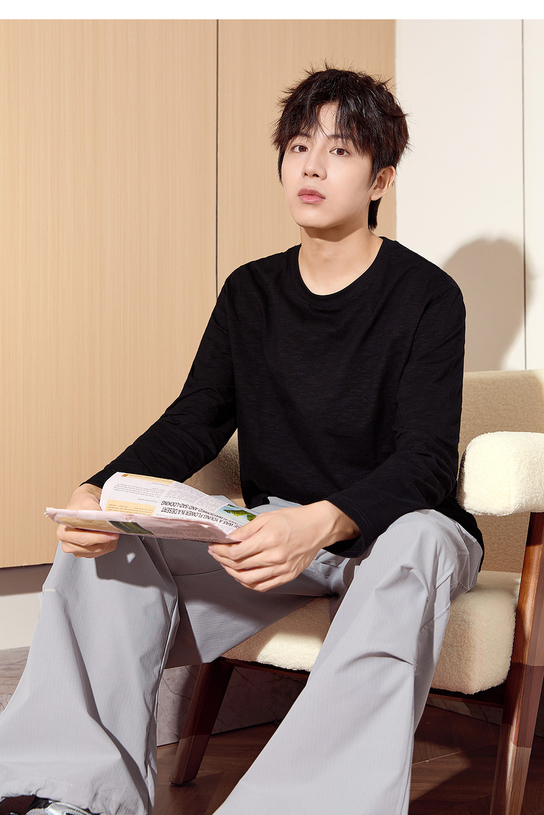 唐狮2024秋季新款长袖T恤男款男肌理感竹节棉纯棉长袖T恤潮流