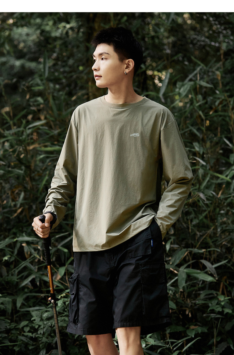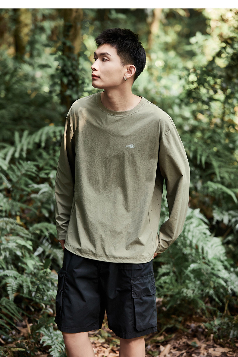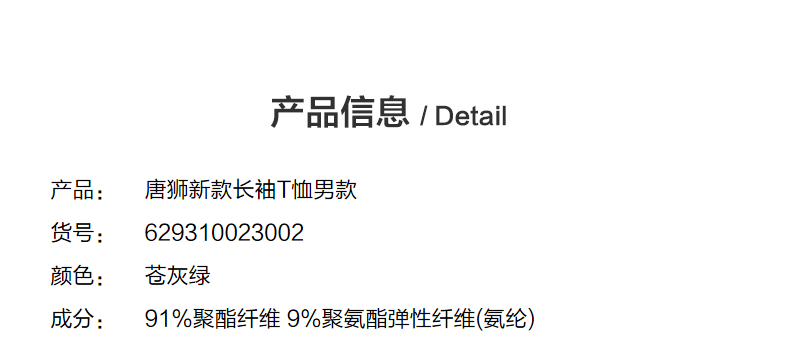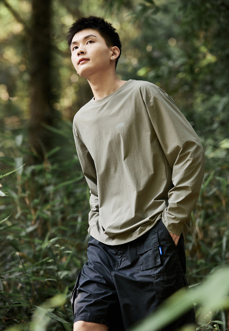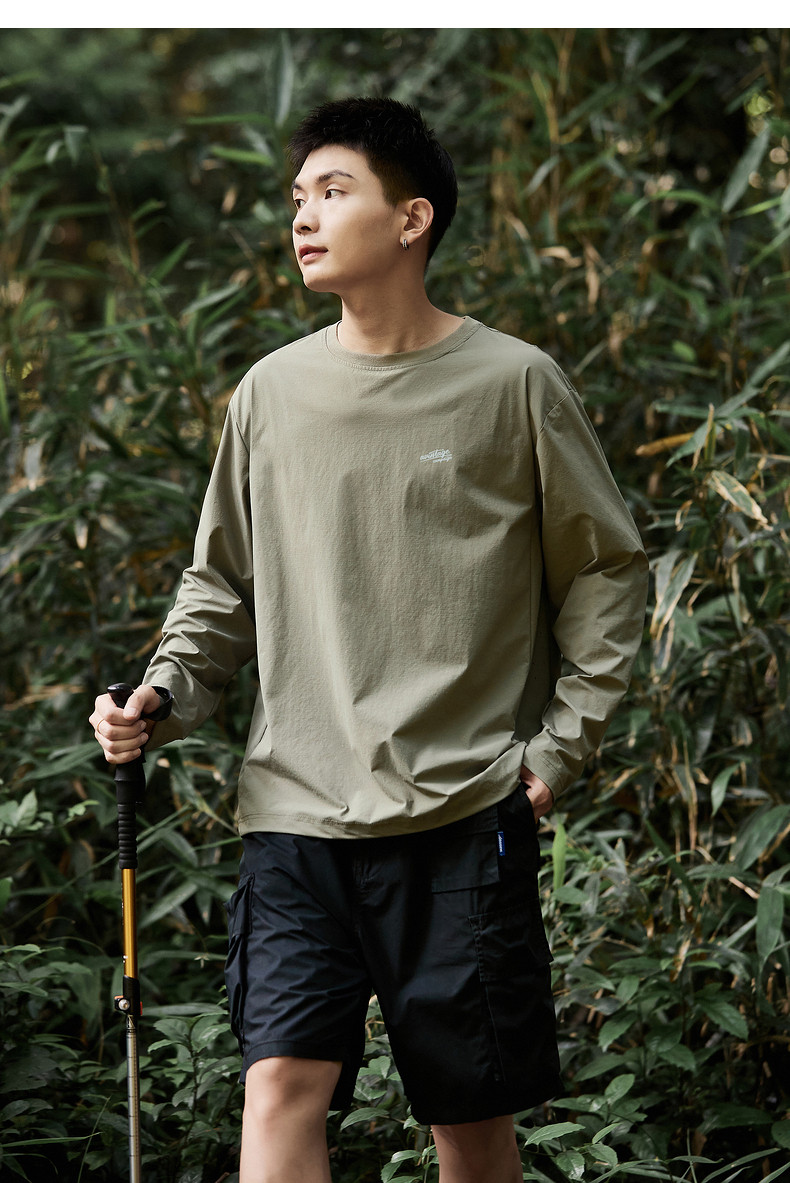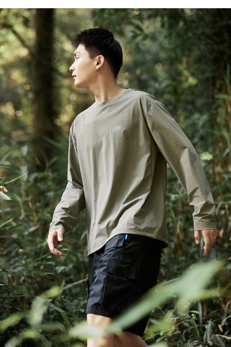唐狮新款长袖T恤男款男左胸小细节速干休闲舒适男生圆领长袖T恤