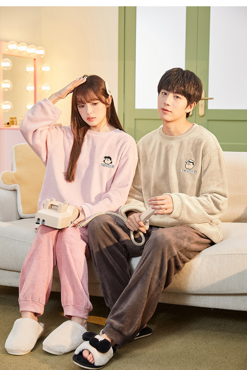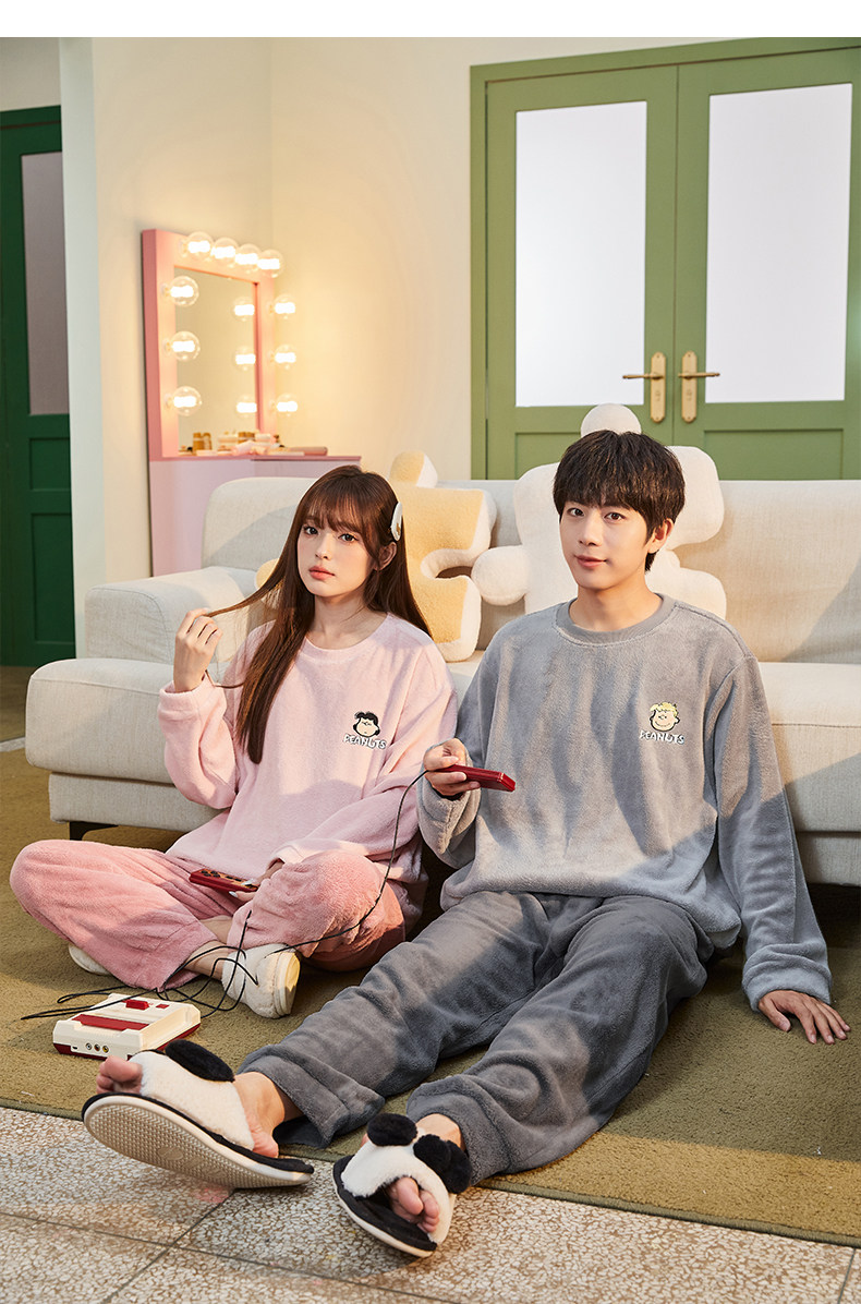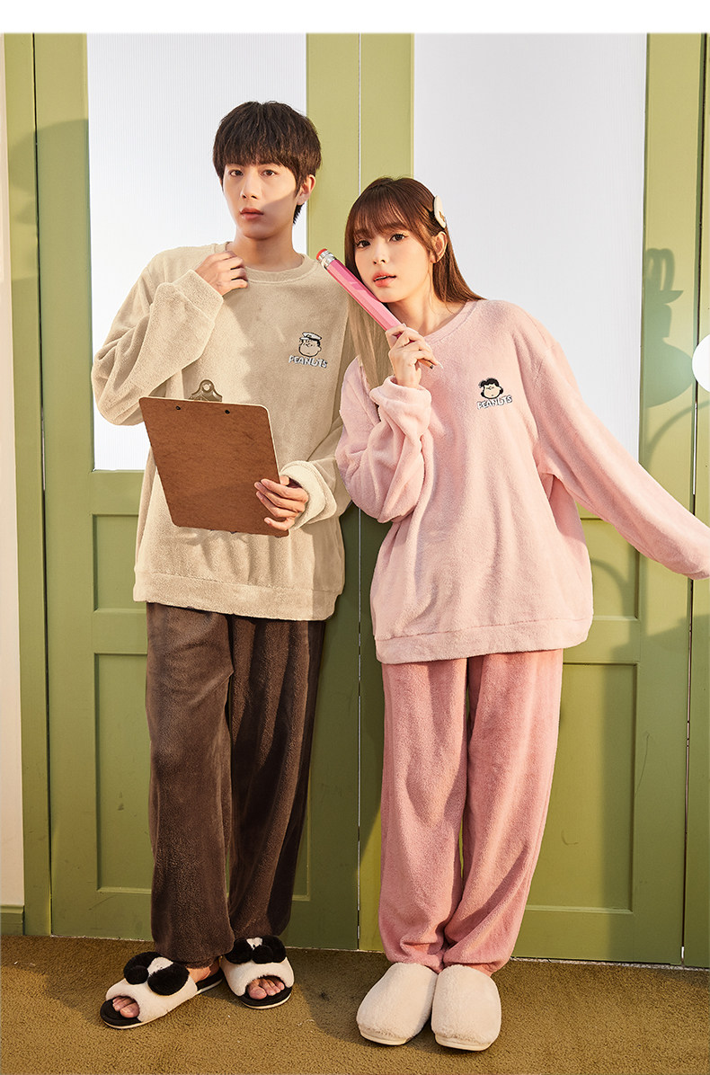 唐狮2024情侣睡衣女史努比联名加厚可外穿珊瑚绒套装家居服秋